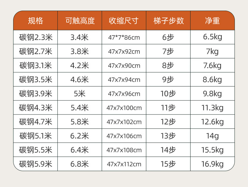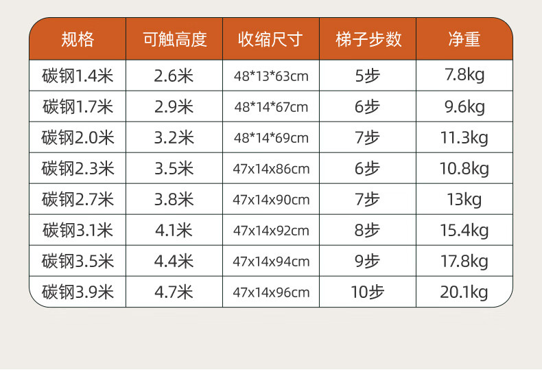 Walking herringbone telescopic ladder folding ladder home attic telescopic ladder engineering lifting ladder home ladder multi-functional dual-use ladder straight ladder black orange walking ladder 1.7 meters thickened and anti-sway