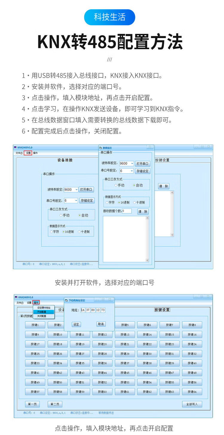 KNX to RS485 module mutual conversion gateway intelligent building control 485 to knx integrated protocol converter KNX human presence sensor
