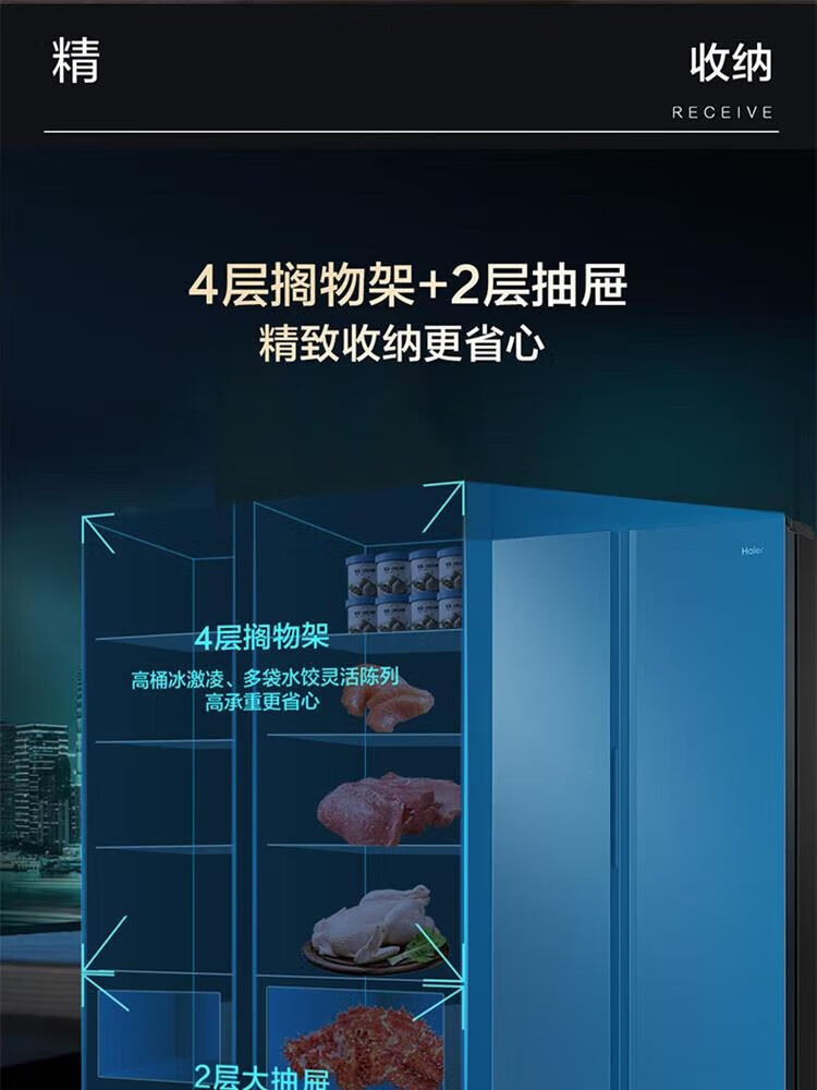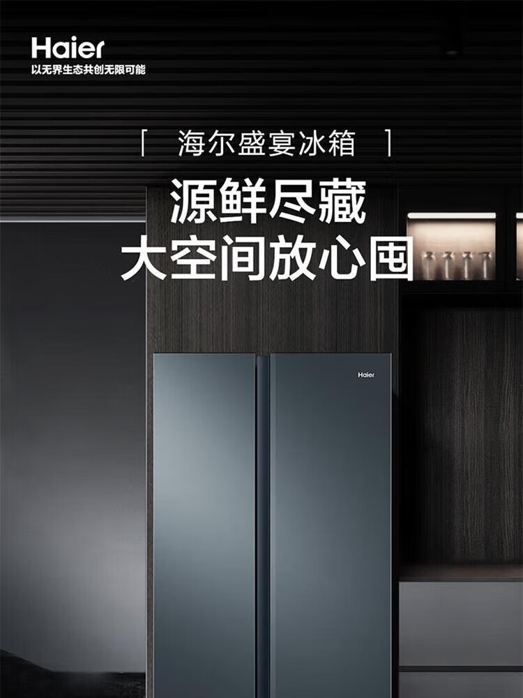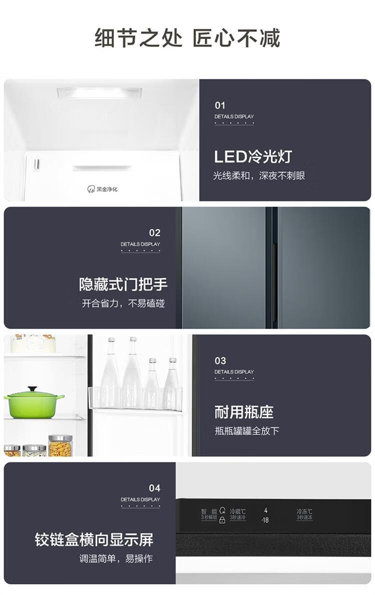 Haier refrigerator 616 liters double-door air-cooled first-level dual-frequency large freezer area energy-saving low-noise surround air supply household large-capacity refrigerator 616WGHSSEDC9 black gold purification