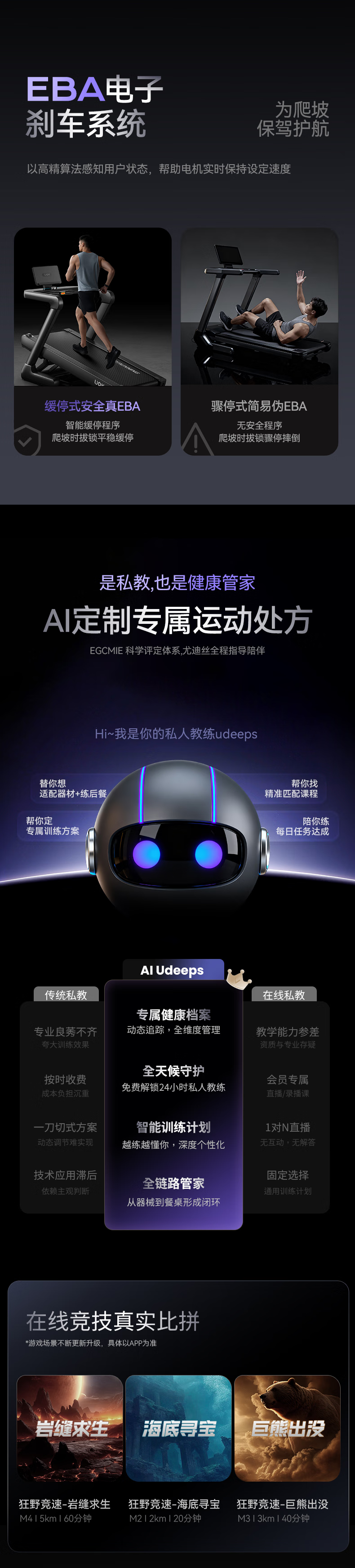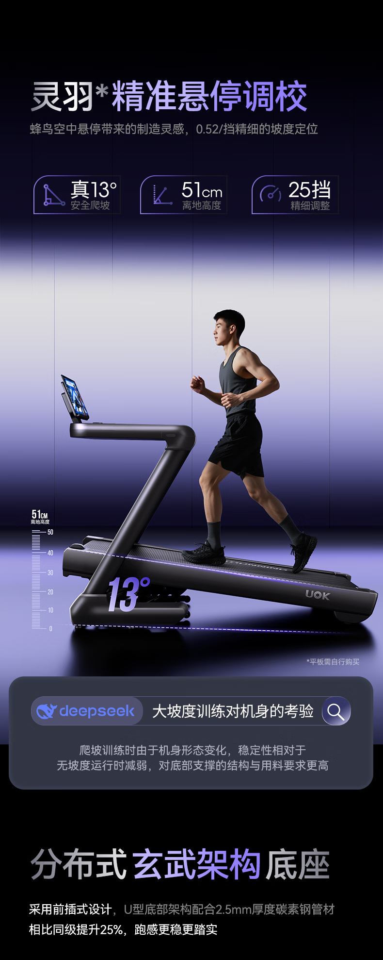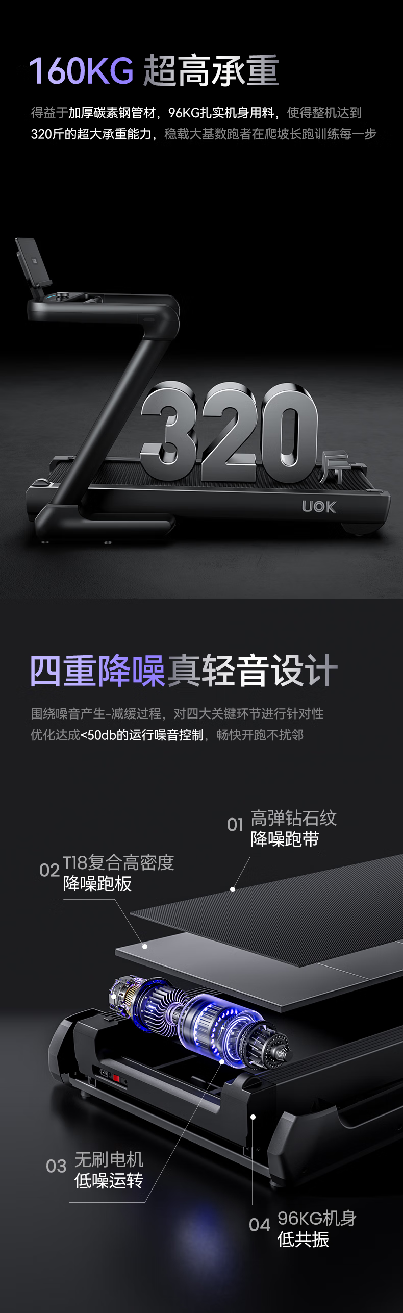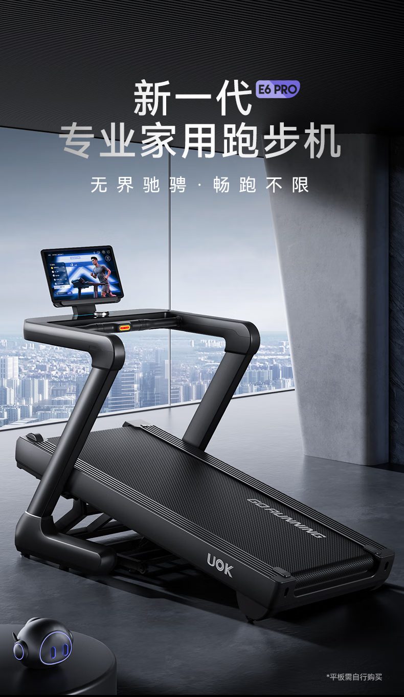 UOK treadmill E6Pro family climbing exercise gym equipment shock-absorbing knee pads for weight loss professional folding silent E6PRO 720mm wide treadmill/5.0HP brushless motor