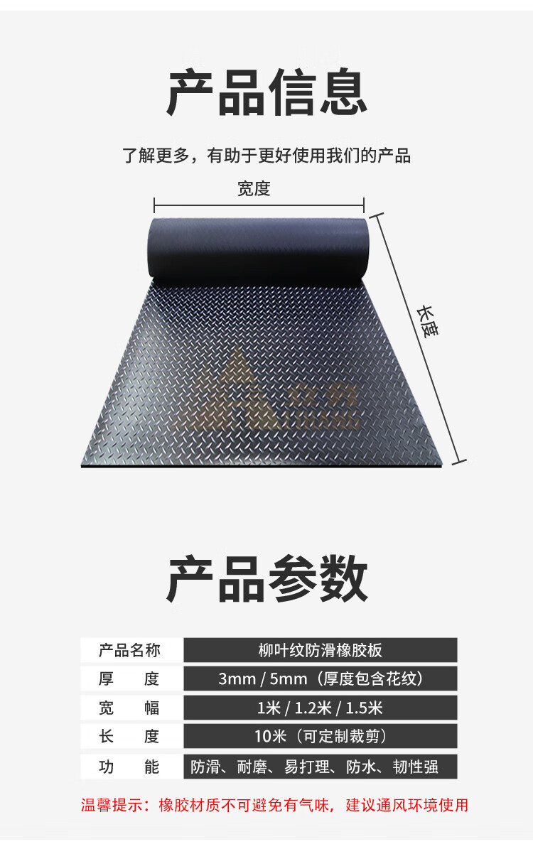 Anti-slip rubber plate willow leaf pattern insulation waterproof wear-resistant buffer shock-absorbing floor mat industrial rubber rubber foot pad willow leaf pattern 1 meter * 1 meter * 5 mm