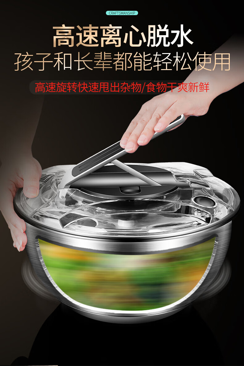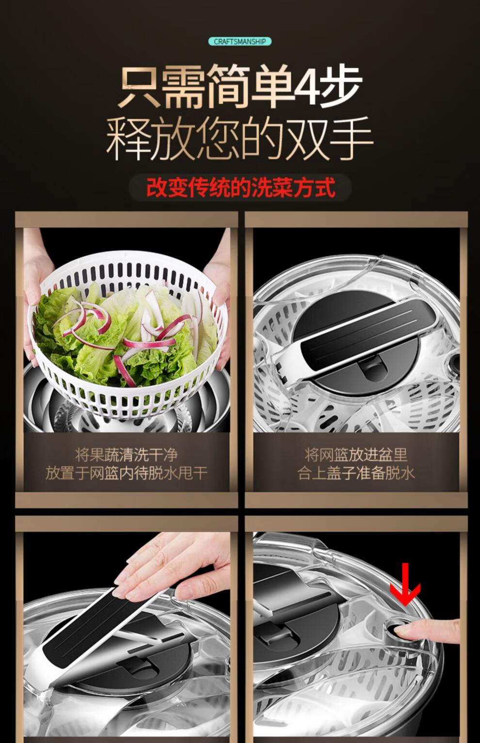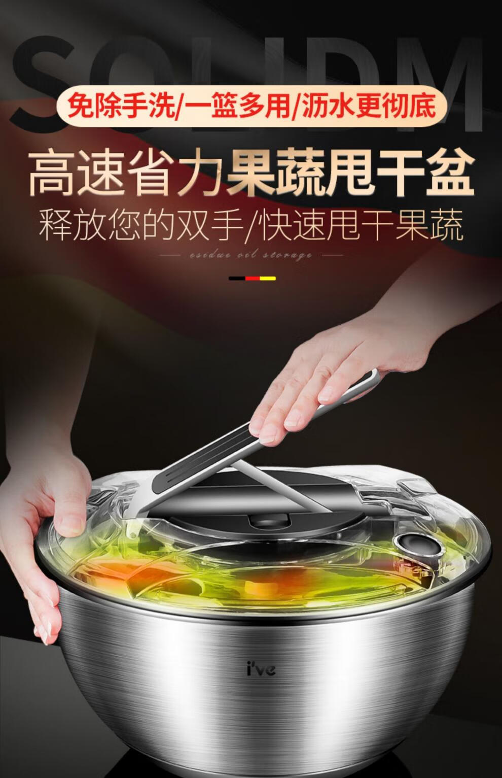 He Jian Gong German ive kitchen salad vegetable dehydrator household vegetable washing and spinning artifact spin dryer water spin dryer transparent 6000ML manual dehydrator