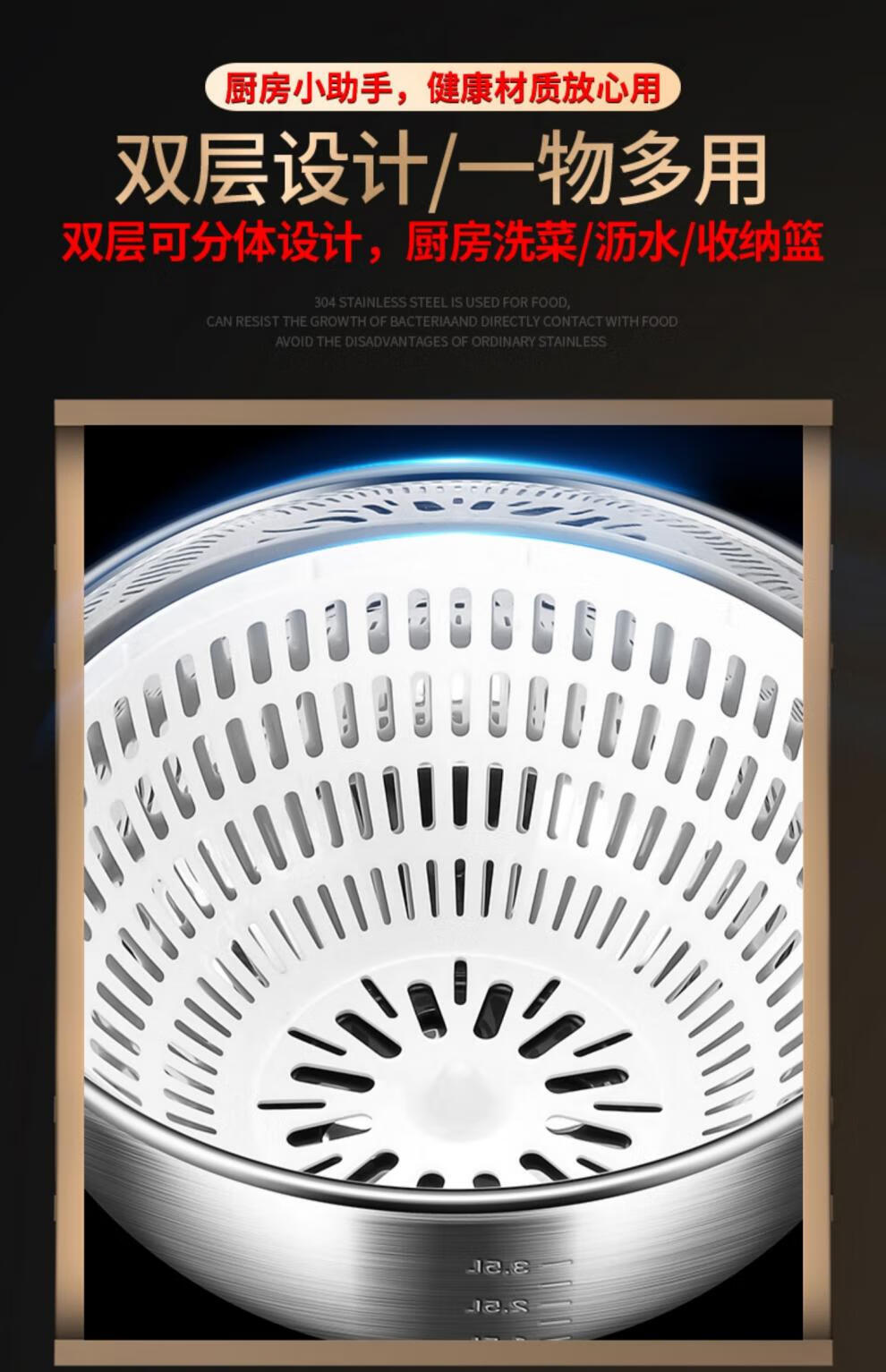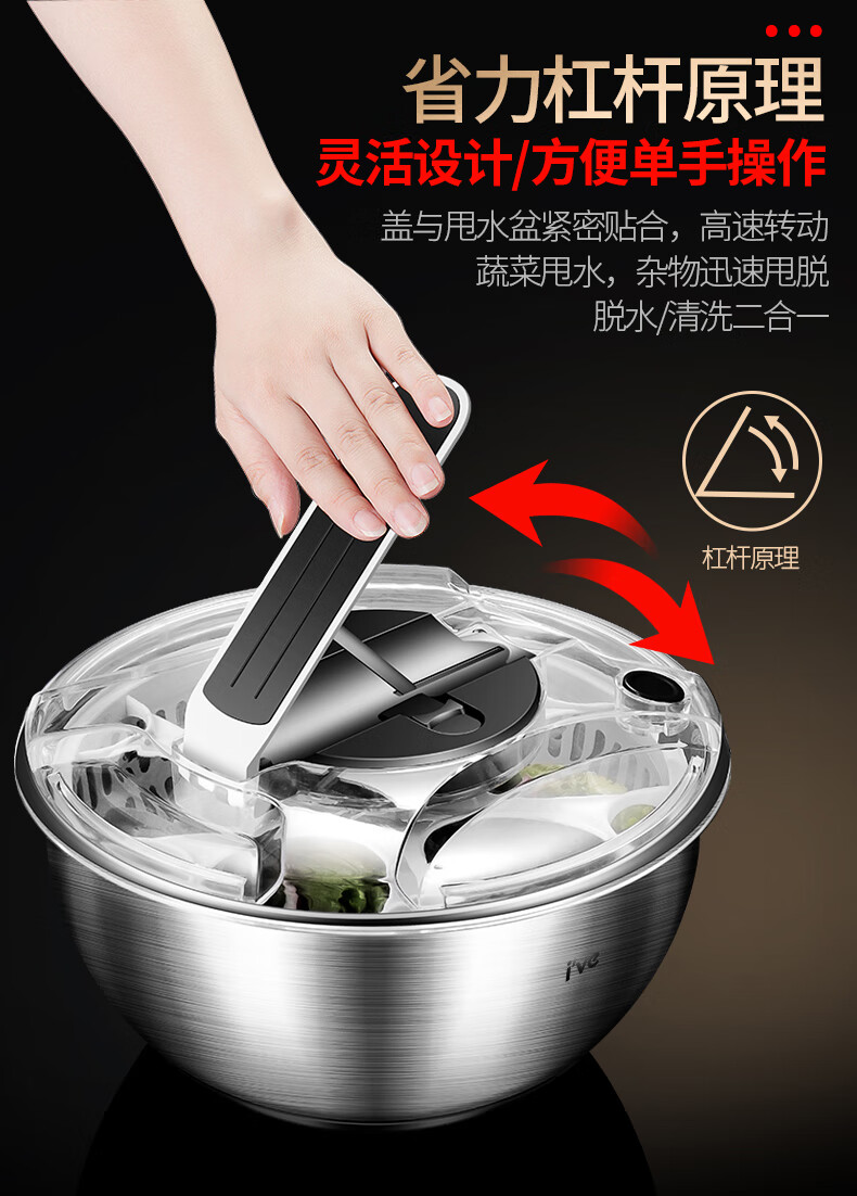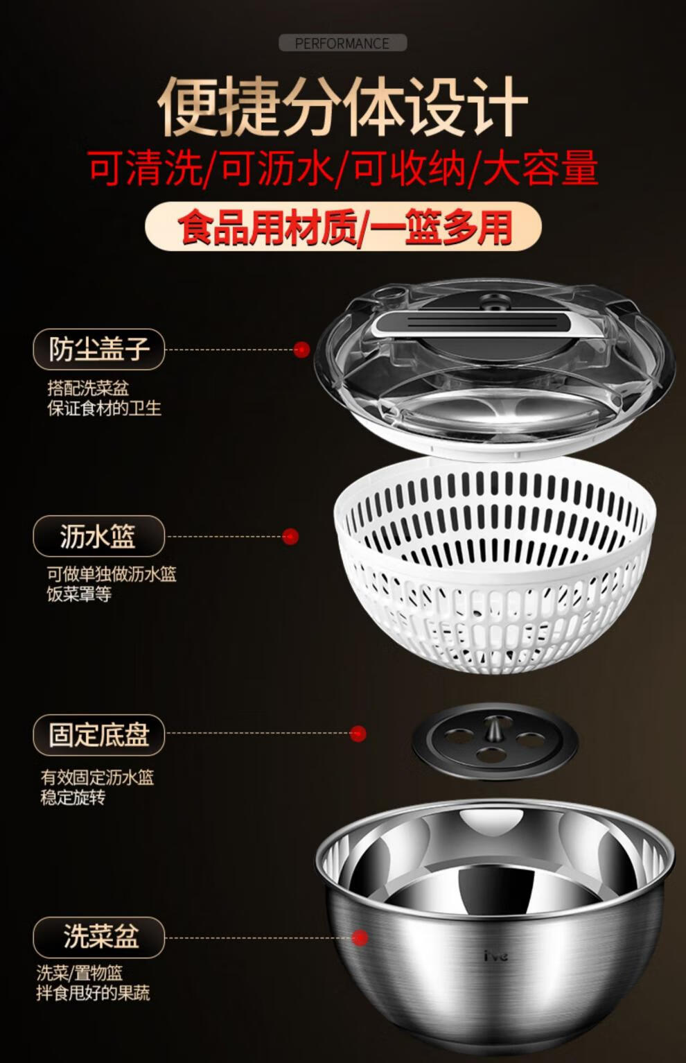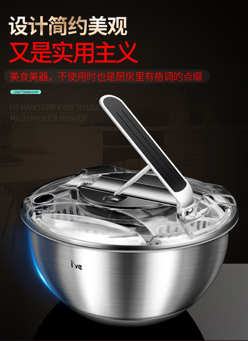 He Jian Gong German ive kitchen salad vegetable dehydrator household vegetable washing and spinning artifact spin dryer water spin dryer transparent 6000ML manual dehydrator