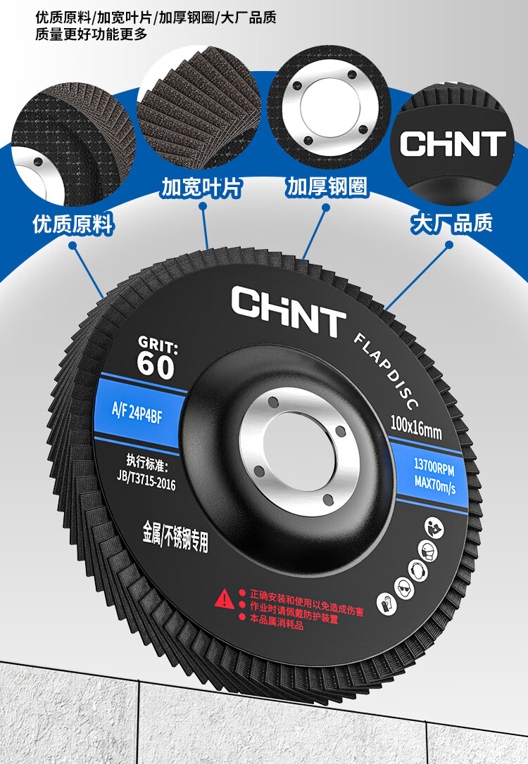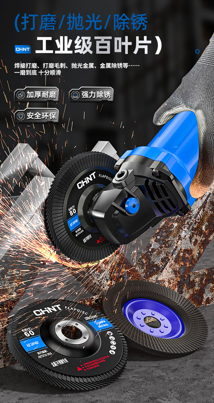 Chint louver blade polishing disc abrasive cloth wheel angle 100 grinder grinding disc woodworking impeller stainless steel metal grinding louver wheel 75 iron cover blue sand 60 mesh 21 pieces
