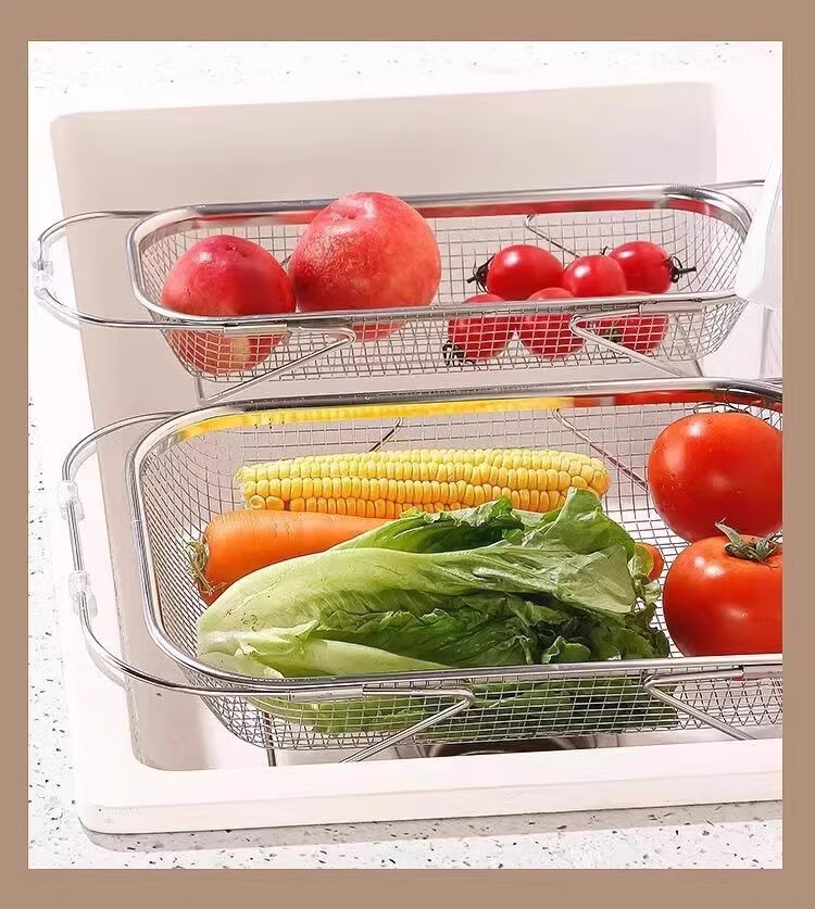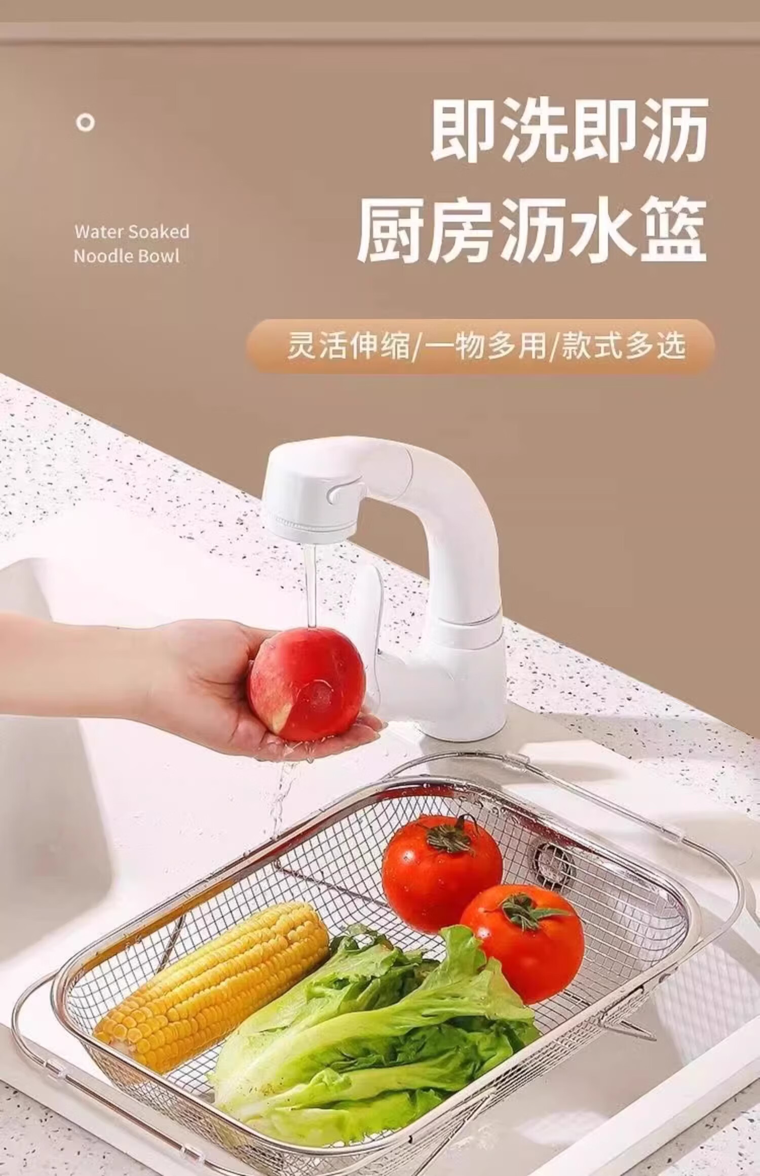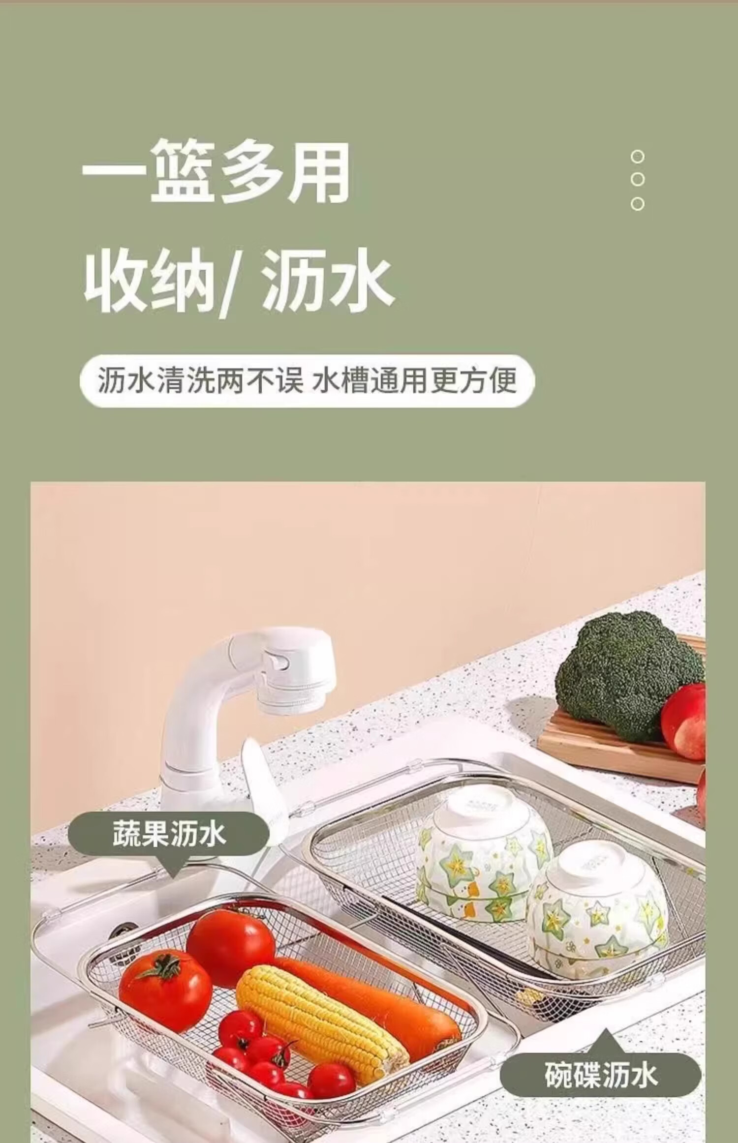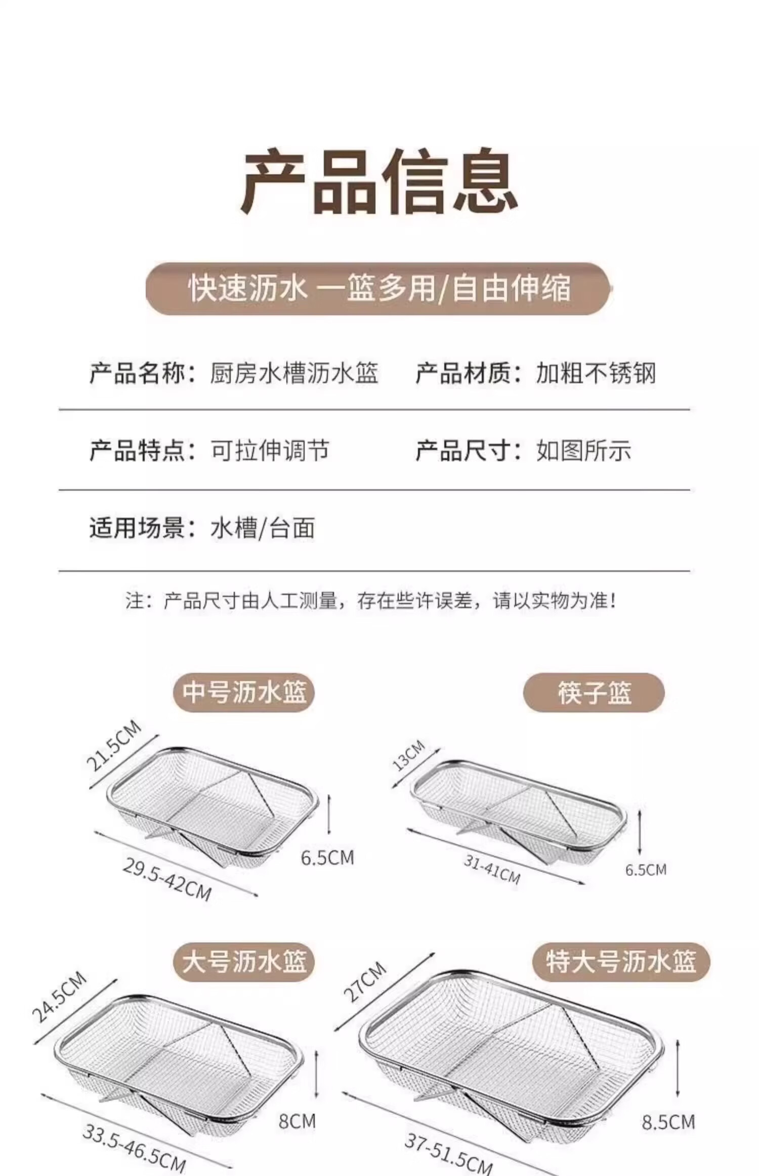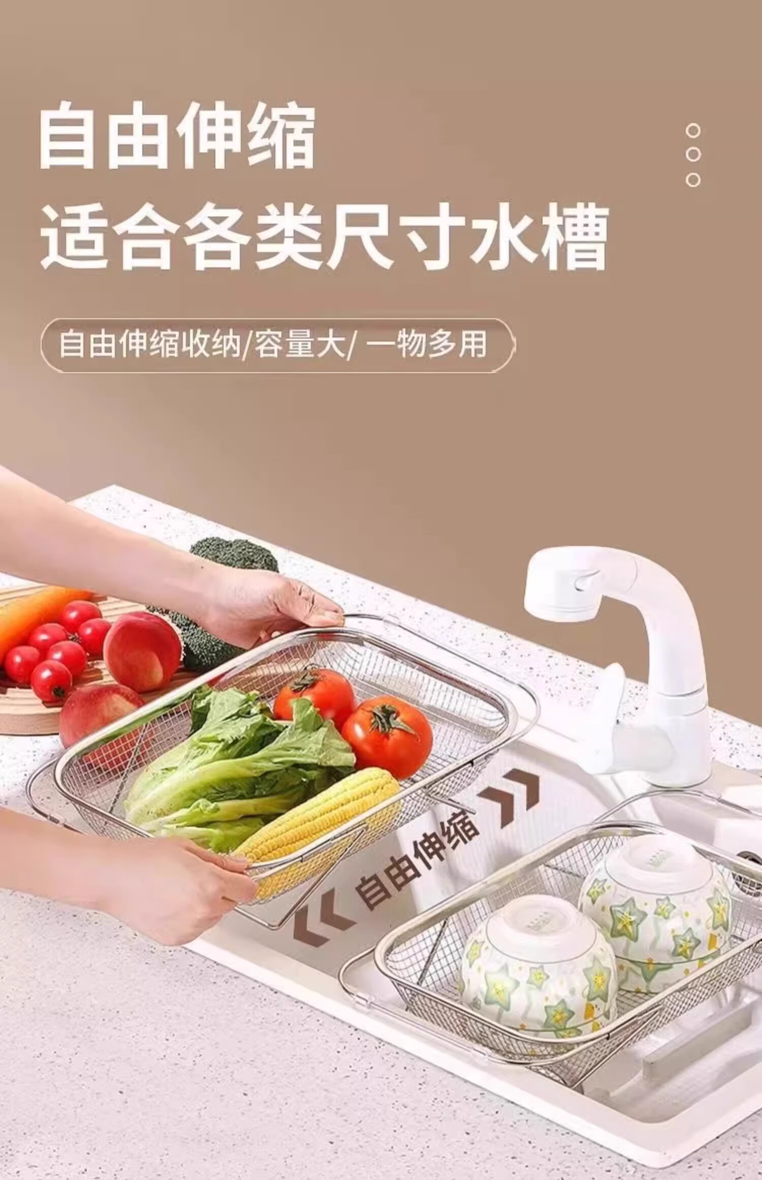Xincong stainless steel sink drain basket multi-functional tableware and chopsticks drain rack kitchen sink retractable washbasin drain rack 1 medium size retractable
