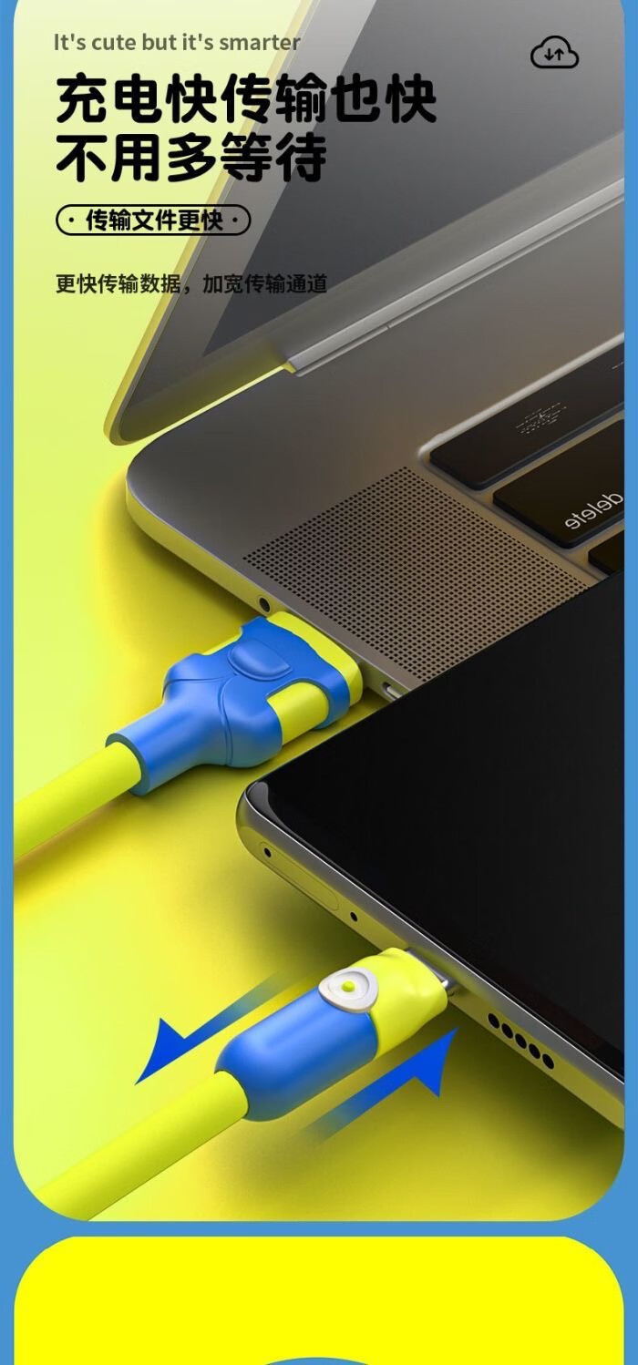 Suitable for Huawei fast charging typec data cable cartoon cute overalls Huawei p70/mate60/nova11 glory mobile phone tablet notebook fast charging cable car durable yellow 2 meters