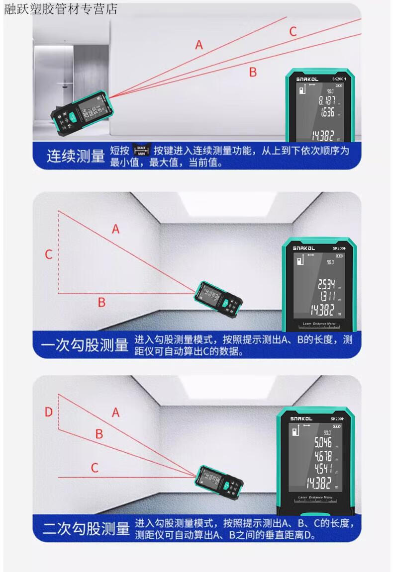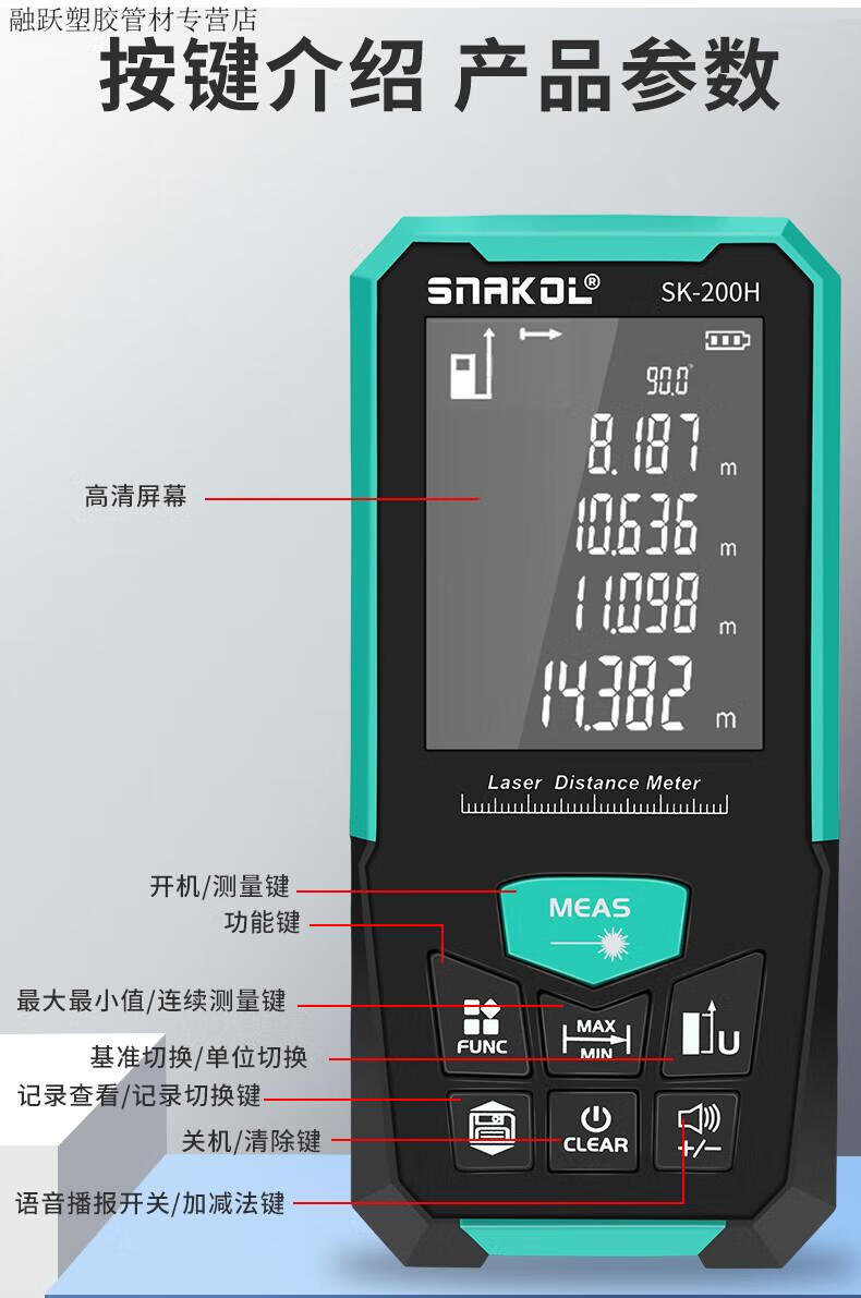 Qiaobolai laser range finder 200 meters large range high-precision measuring ruler electronic ruler measuring room instrument -150H standard configuration SK150H standard configuration