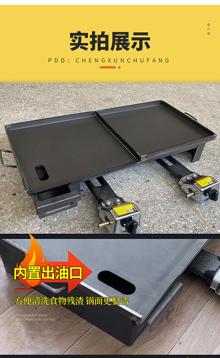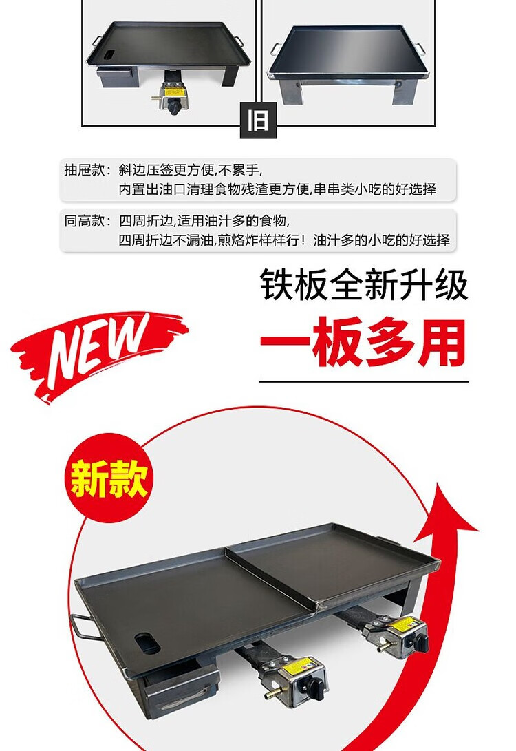 Tereside Iron Plate Partition Commercial Teppanyaki Pan Teppanyaki Fryer Integrated Street Stall Thickened Gas Stove Street Stall Length 120cm * Width 50cm * 8mm (Drawer + Same Height) + Protective Furnace Double Oven