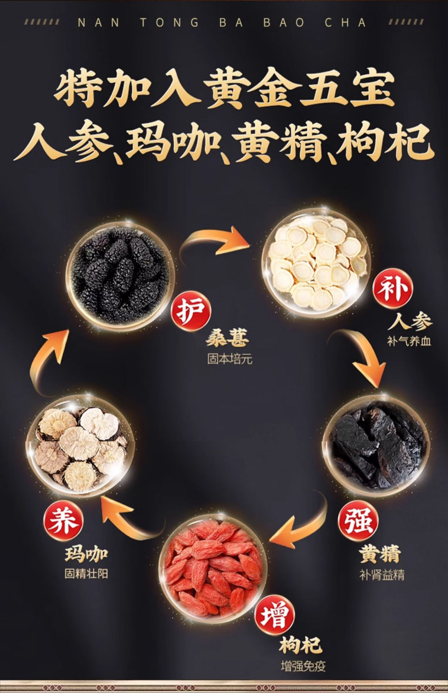 Tongrentang Babao Tea Healthy Tea Men's Tonifying Kidney, Strengthening Yang, Nourishing Liver Yin and Yang Deficiency Bubble Tea Men's Nourishing Tea Nine Five Treasures Tea A box of 40 packs of Babao Tea Tonifying Kidney, Strengthening Yang, Premature Ejaculation, Excessive Use of Hands, Kidney Deficiency, and Producing Sperm. Liubao Tea's Authentic Tonifying Kidney, Strengthening Yang, Liver, Premature Ejaculation, Excessive Use of Hands, Kidney Deficiency, and Premature Ejaculation.