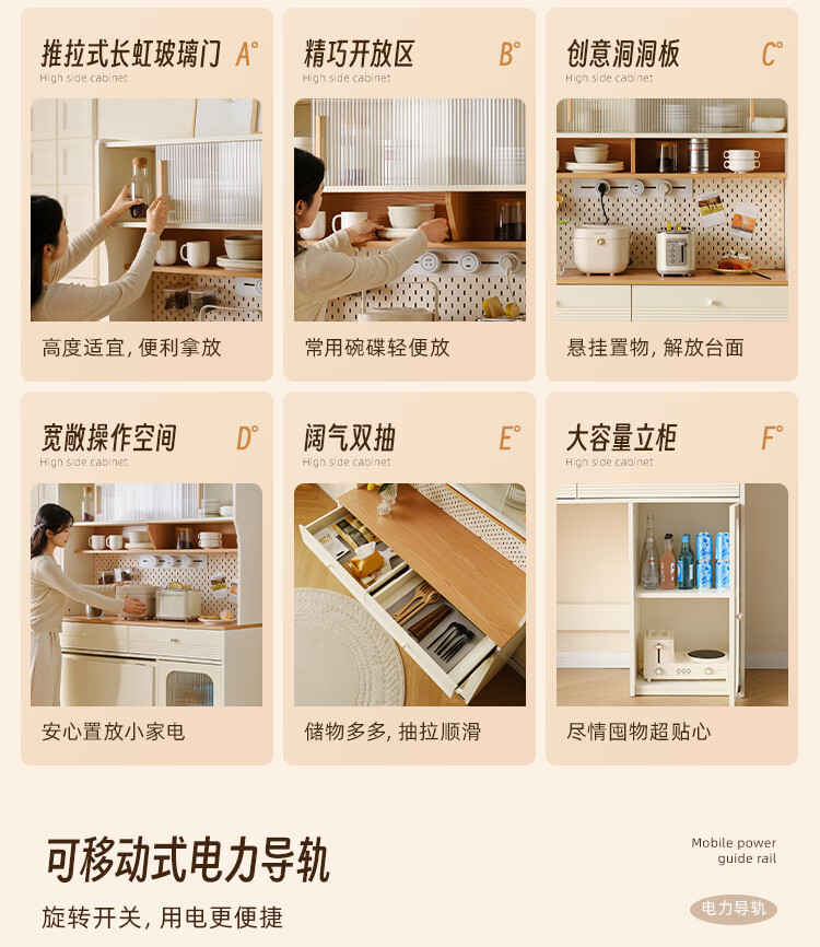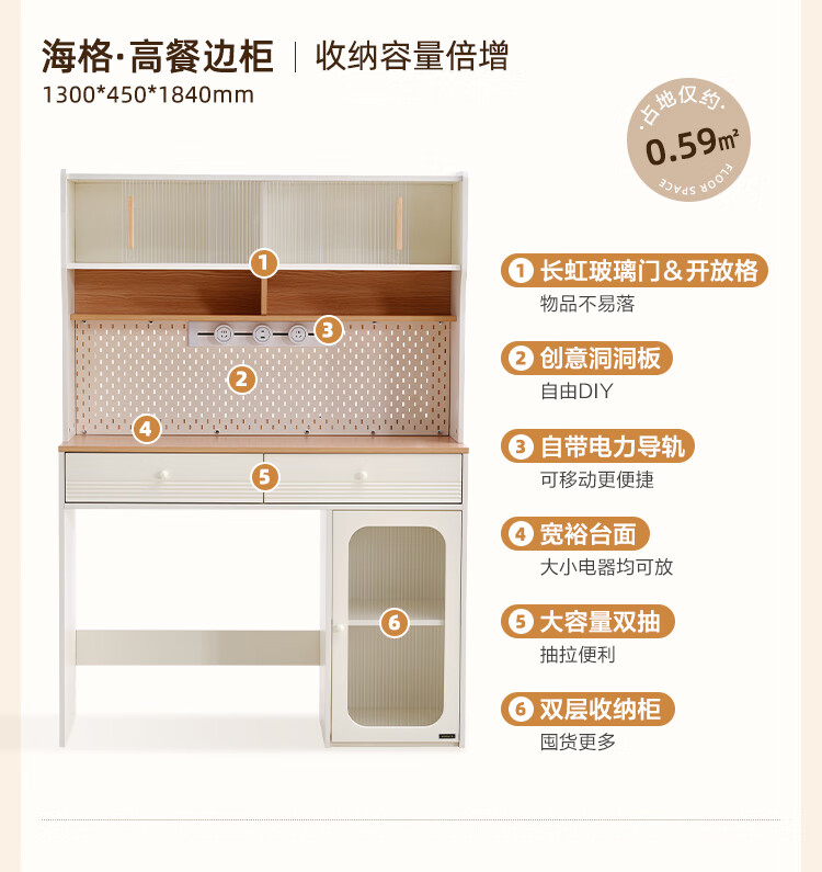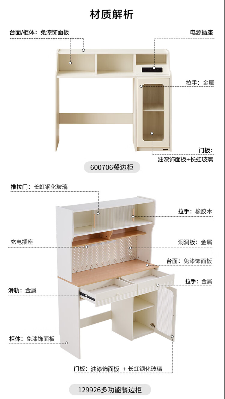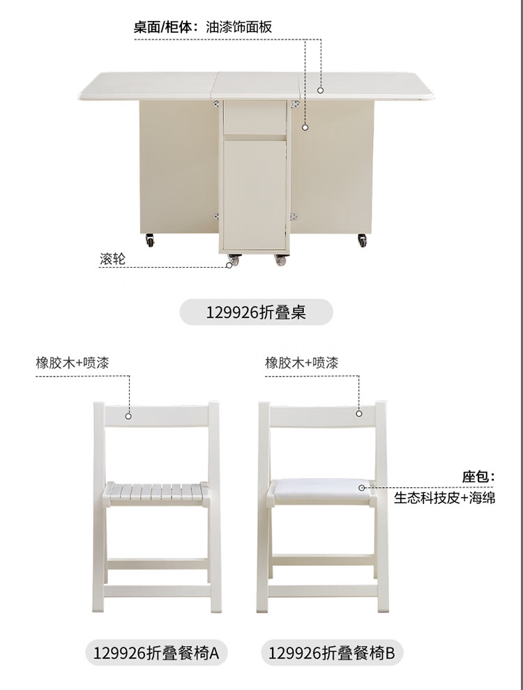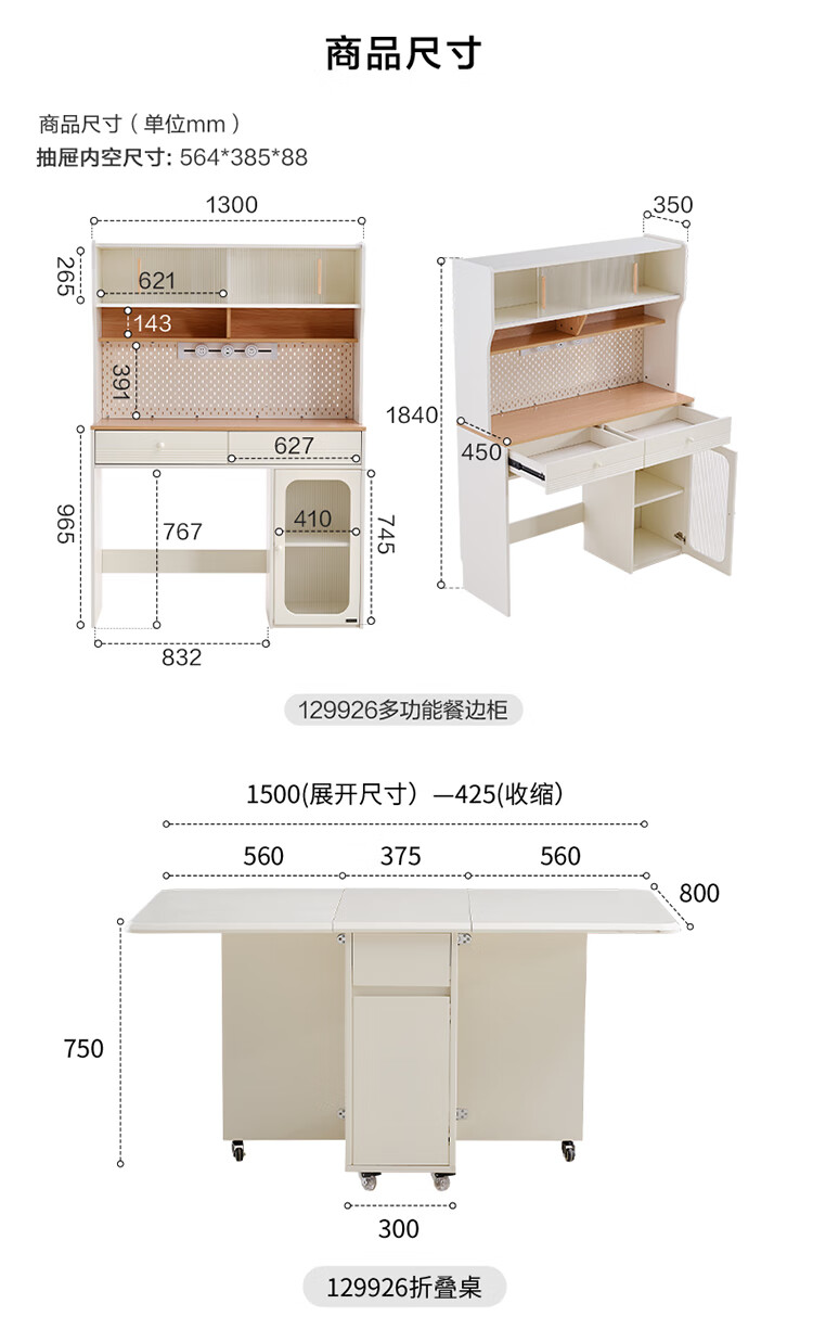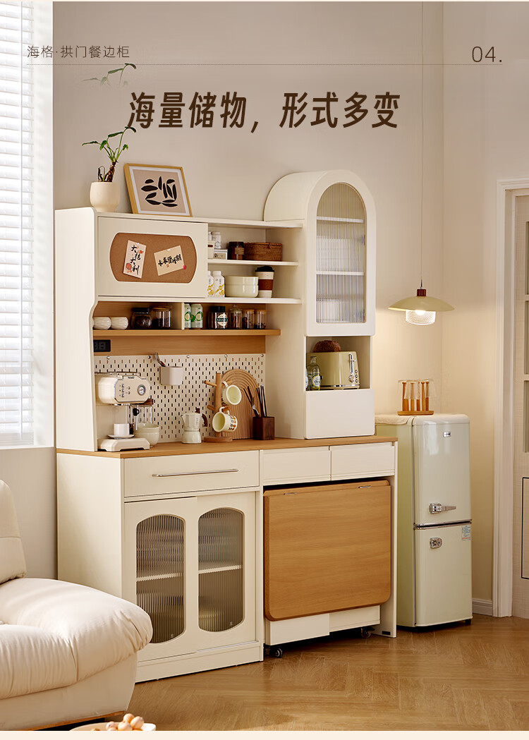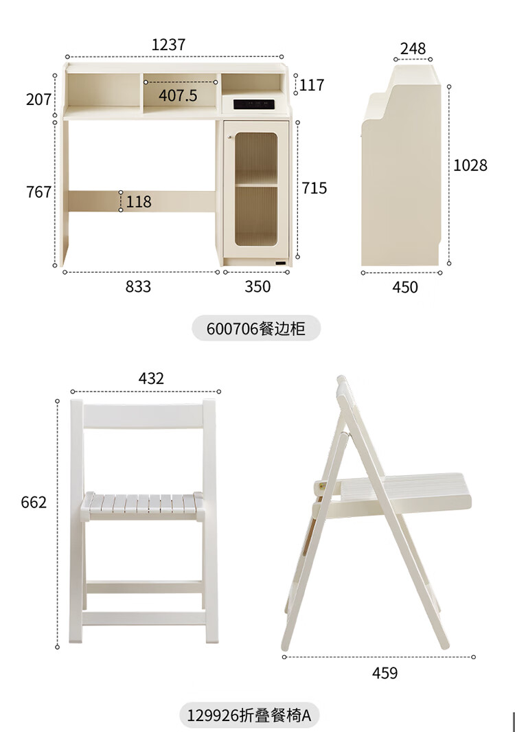 Quanyou (QUANU) home cream style multi-functional sideboard integrated wall-mounted small apartment household folding dining table and chair combination off-white short sideboard