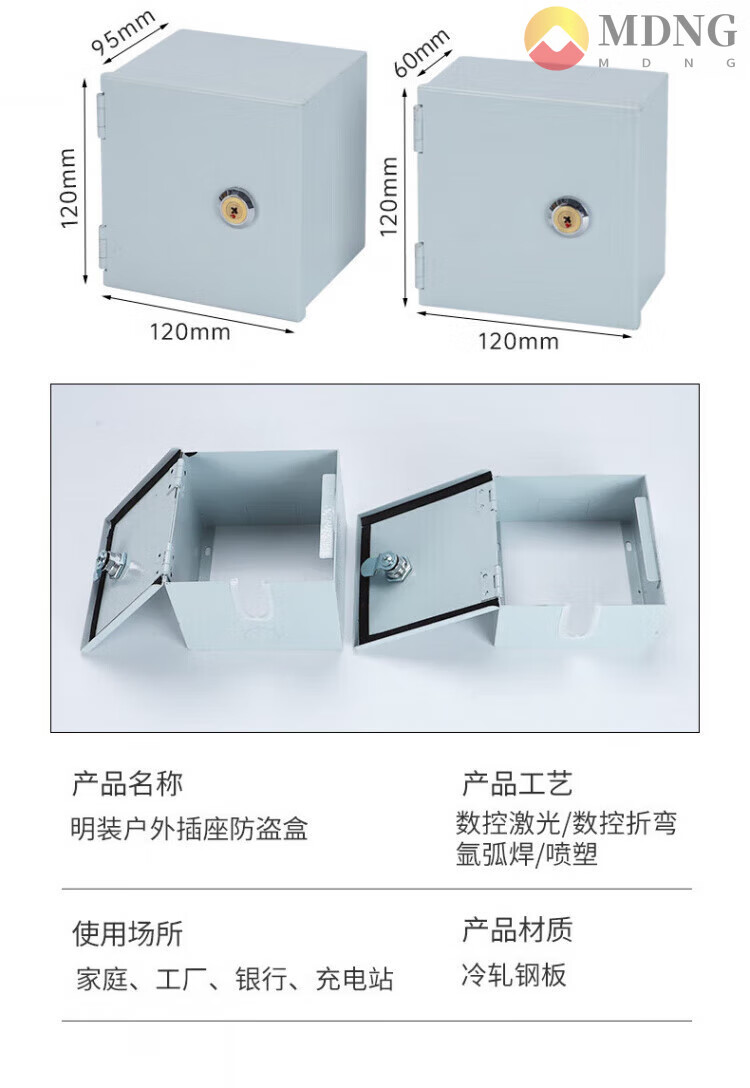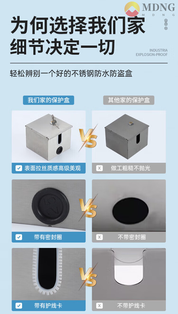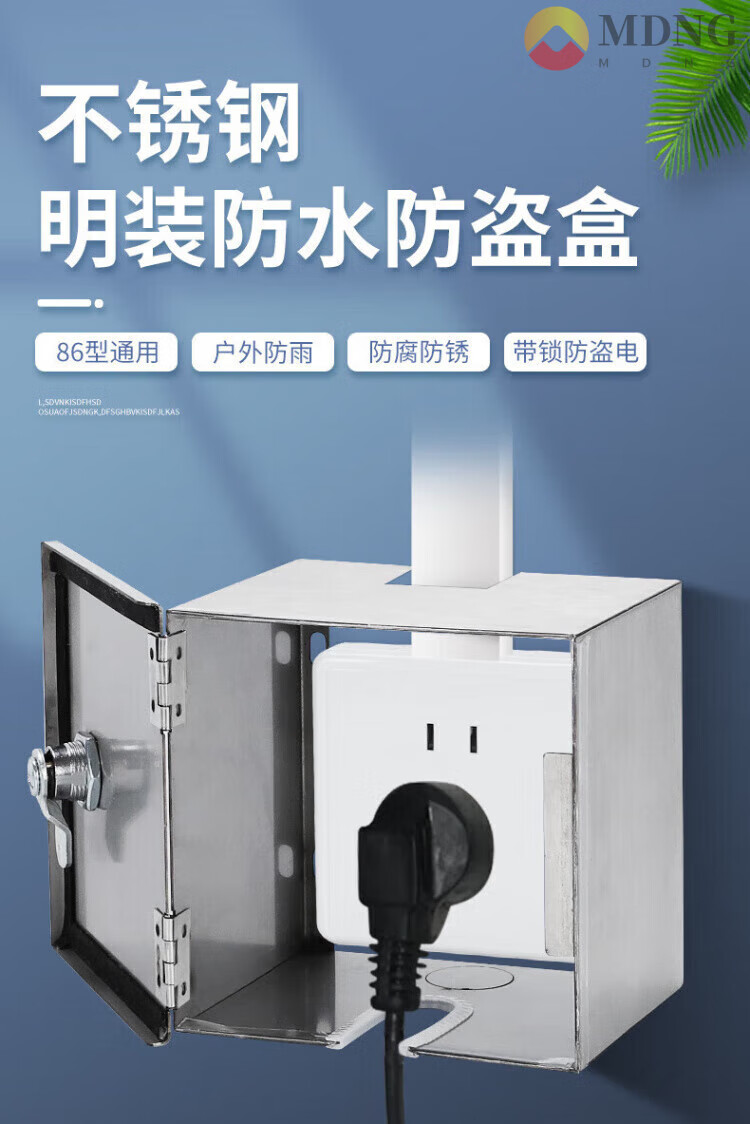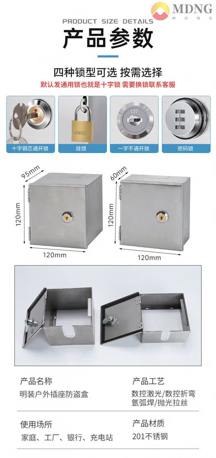 MDNG stainless steel anti-theft box outdoor waterproof protection with lock exposed hidden switch socket electric vehicle charger bottle outdoor one position/iron/cross lock (depth 60mm)
