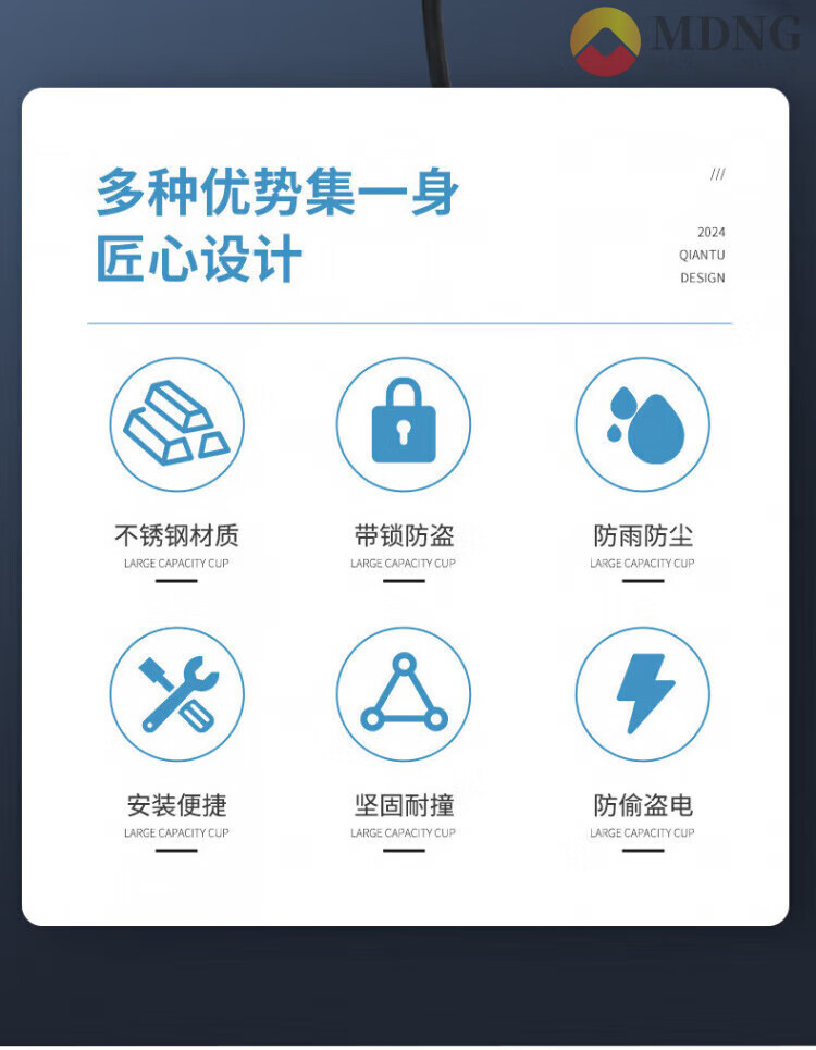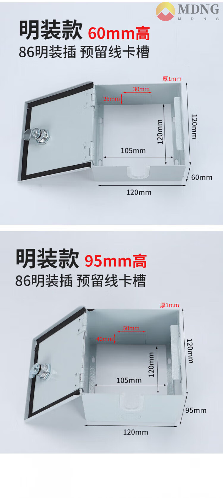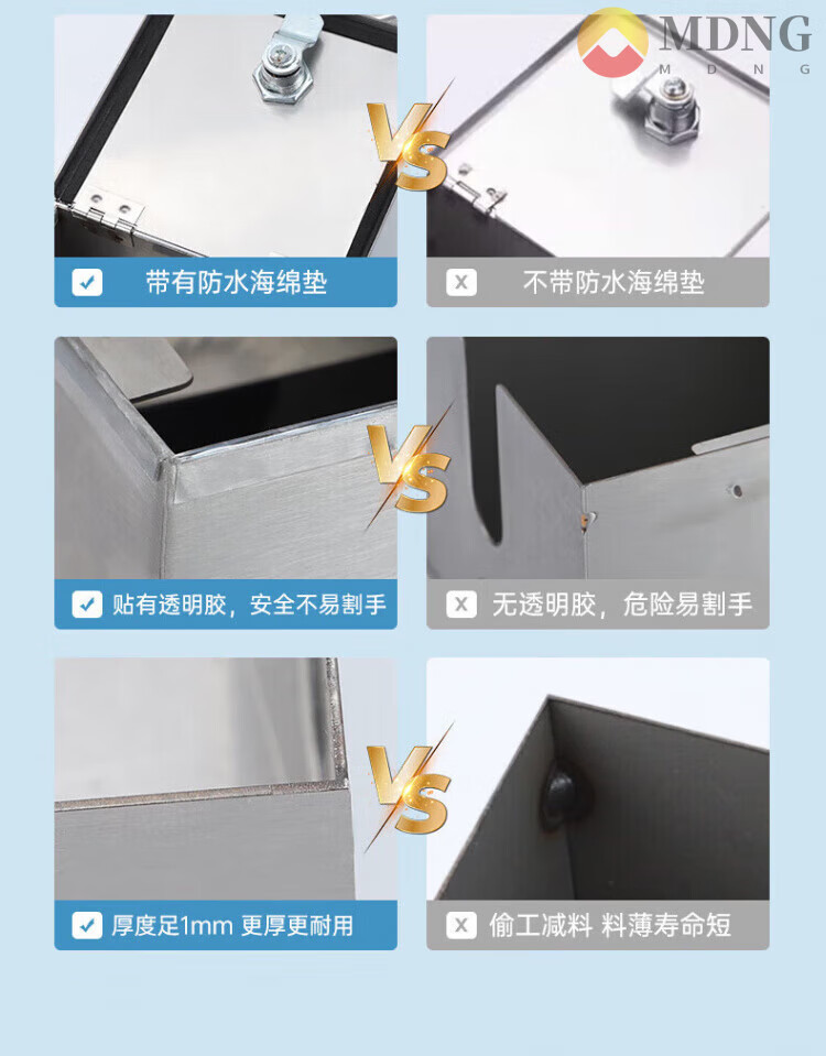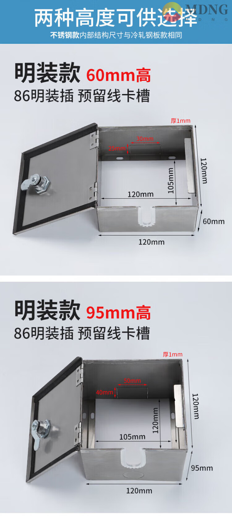 MDNG stainless steel anti-theft box outdoor waterproof protection with lock exposed hidden switch socket electric vehicle charger bottle outdoor one position/iron/cross lock (depth 60mm)