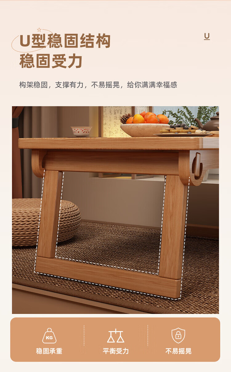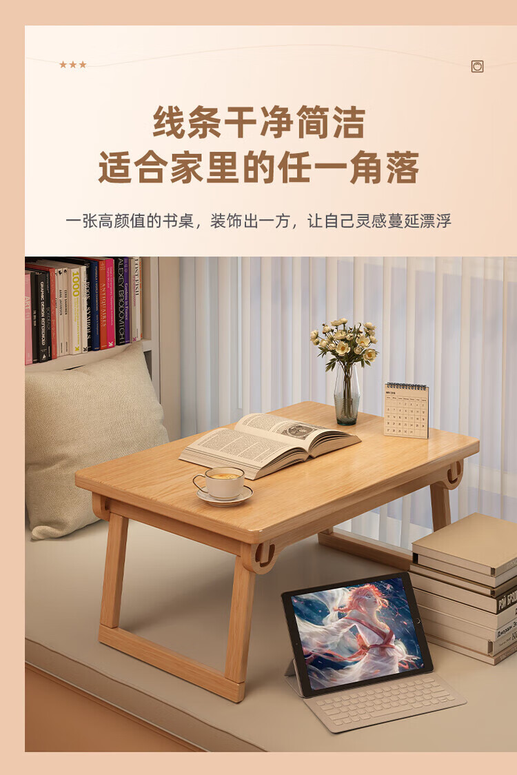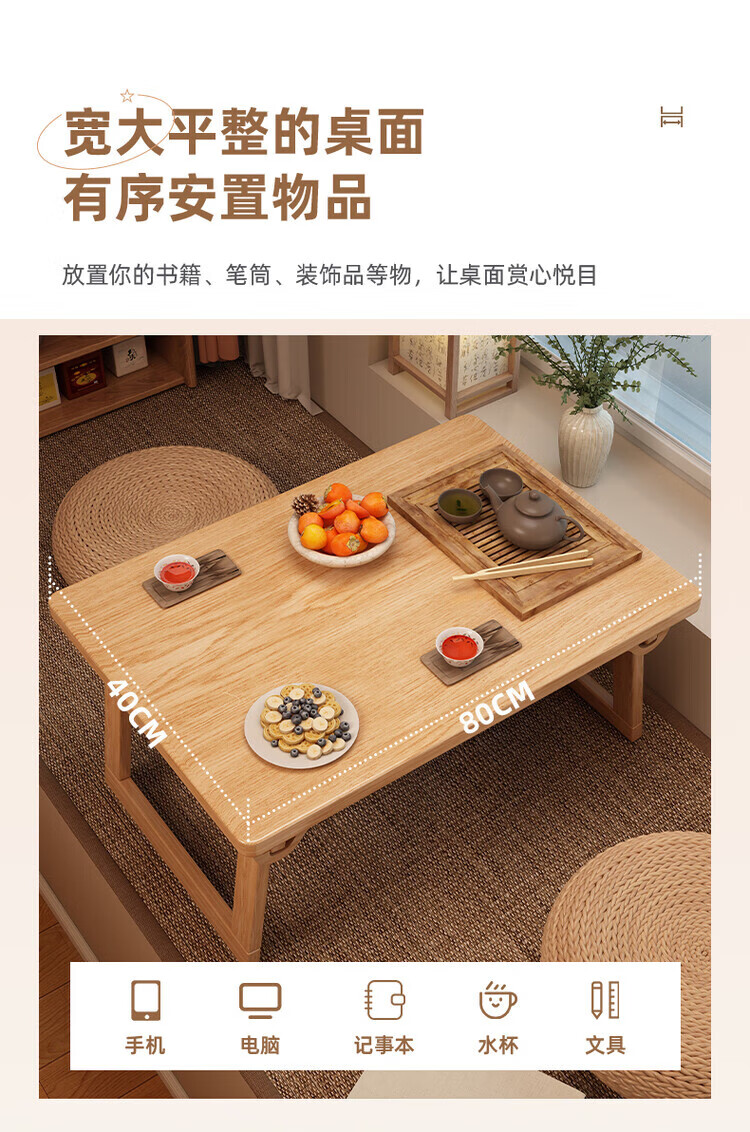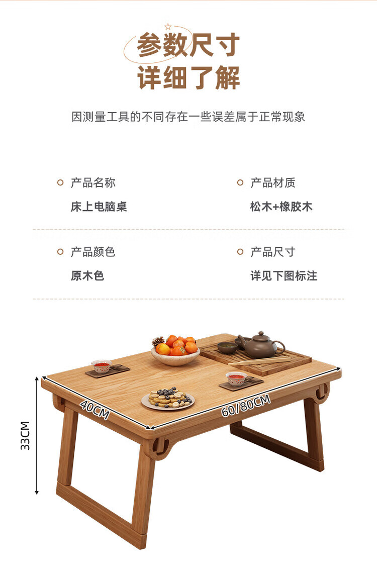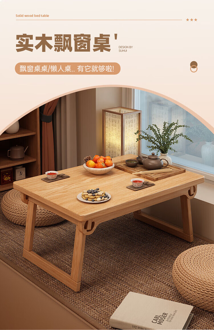 Solid wood small table bay window foldable table kang table household tatami coffee table bed table eating low table computer table pine model folding bay window table log color 60*40