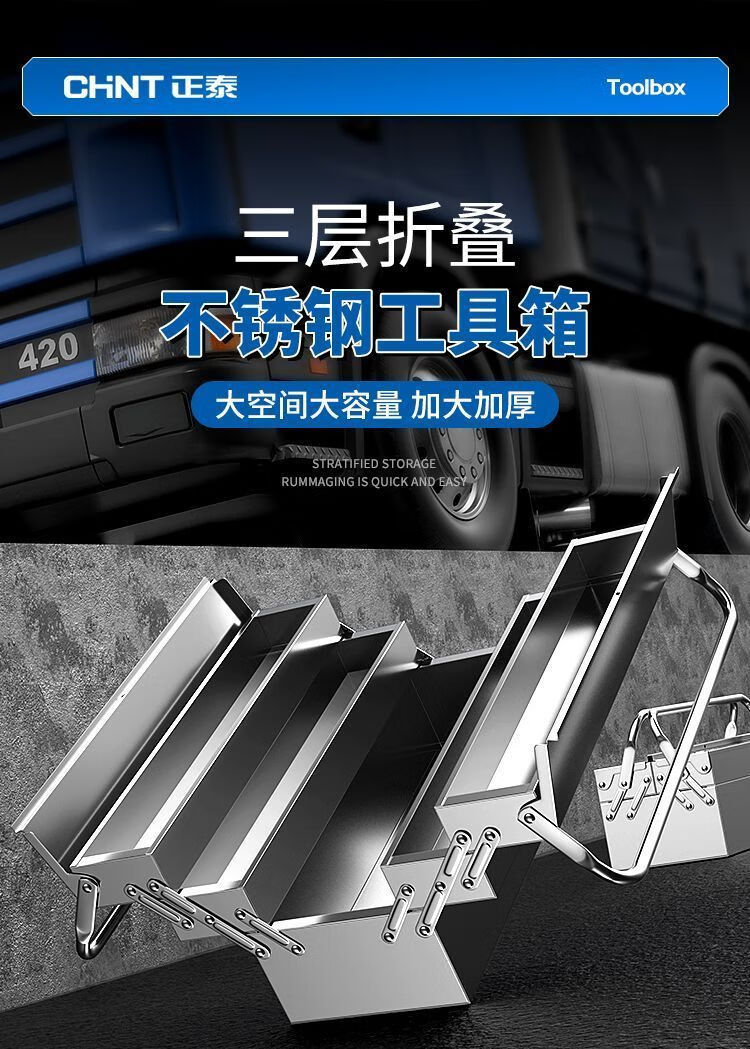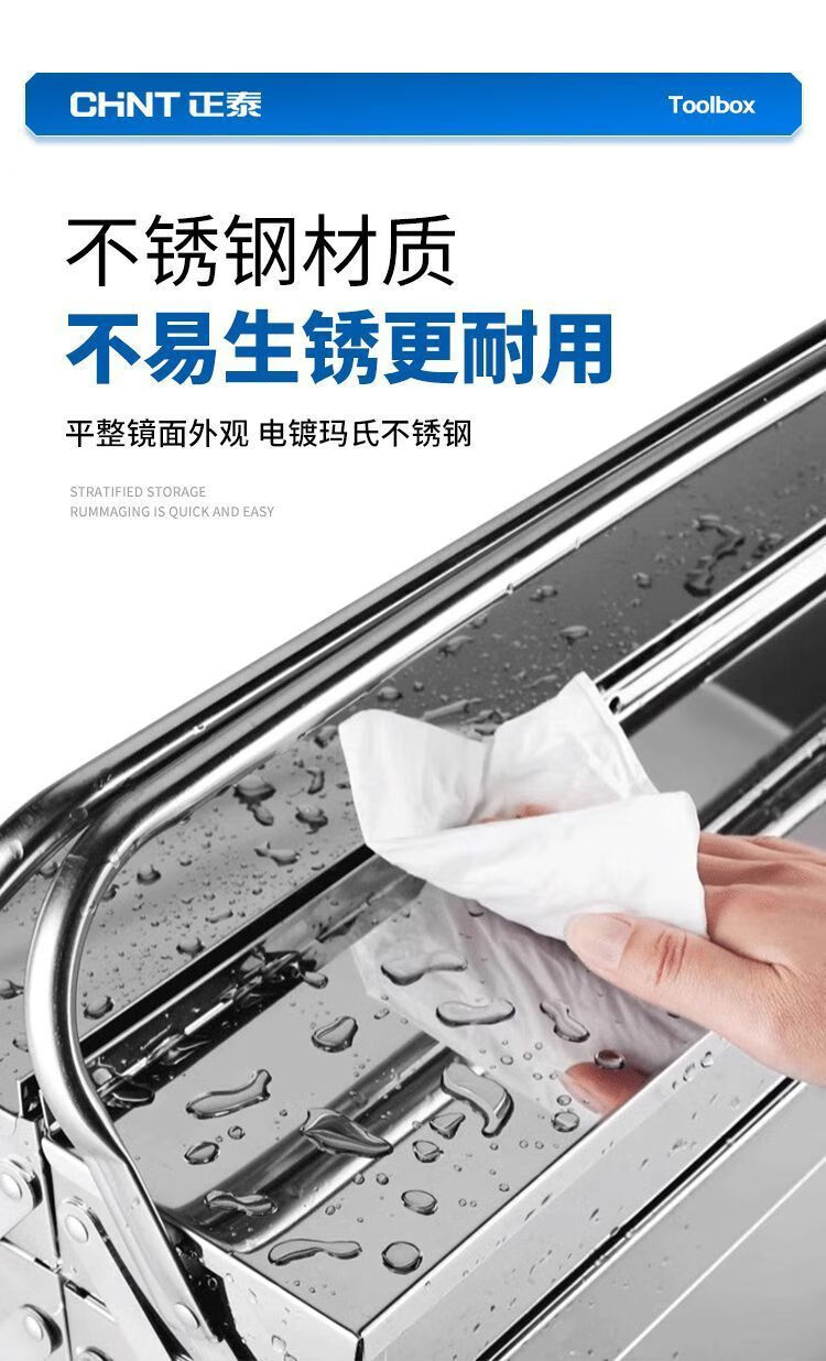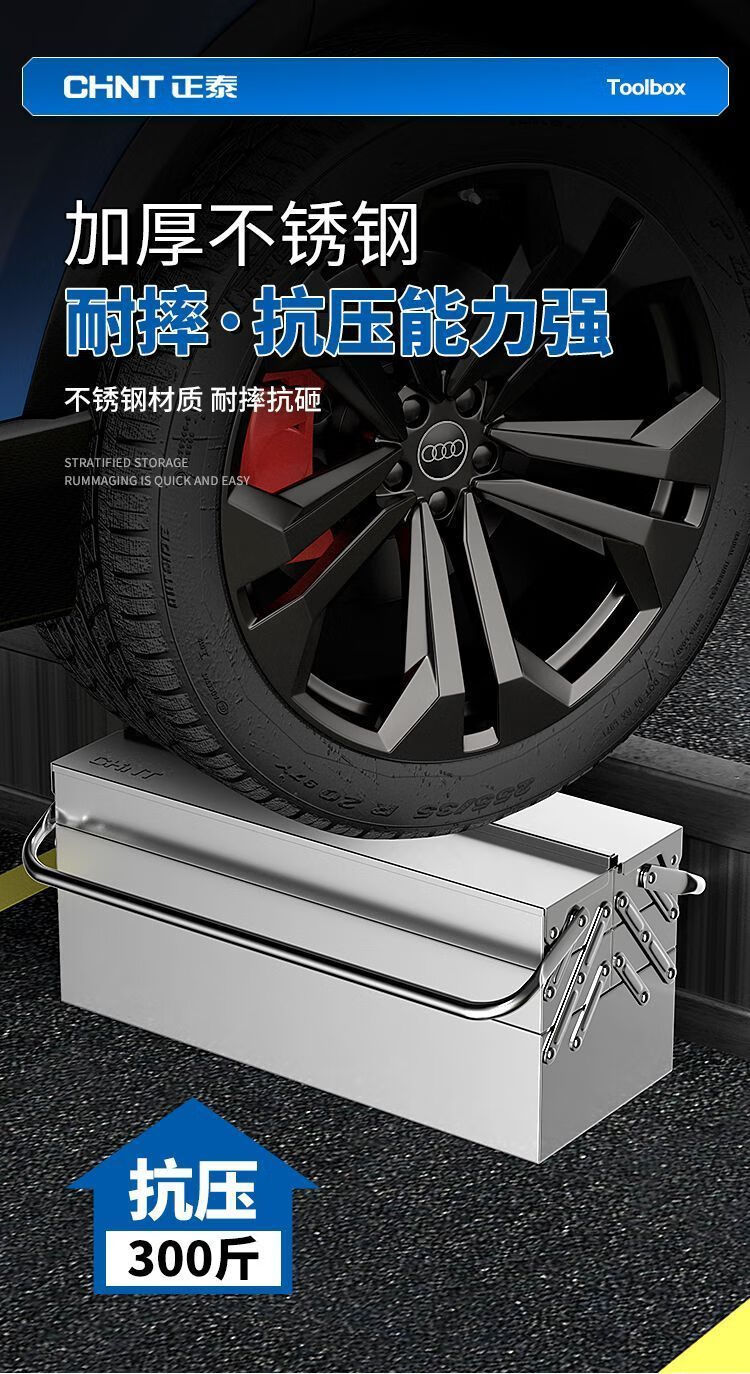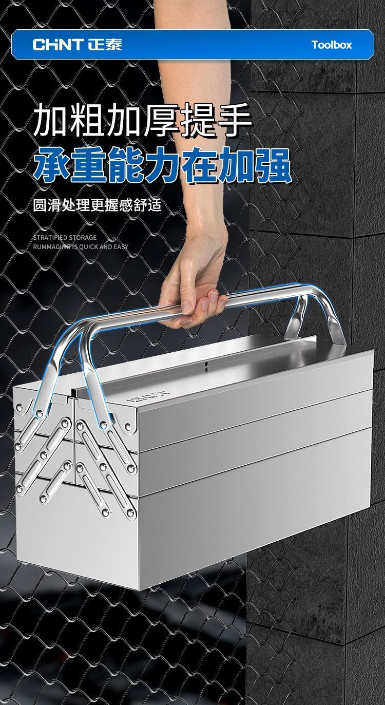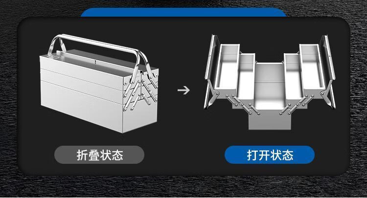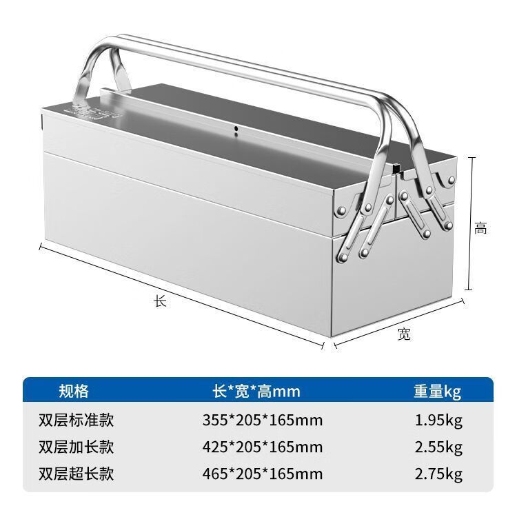 Xiaocai imported ultra-thick stainless steel tool box from Germany, three-layer folding industrial vehicle-mounted portable metal storage box, 17-inch double-layer stainless steel flip-up box
