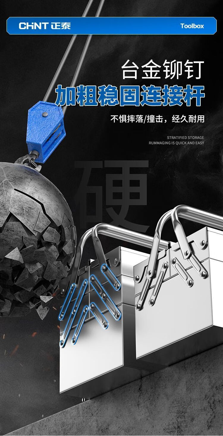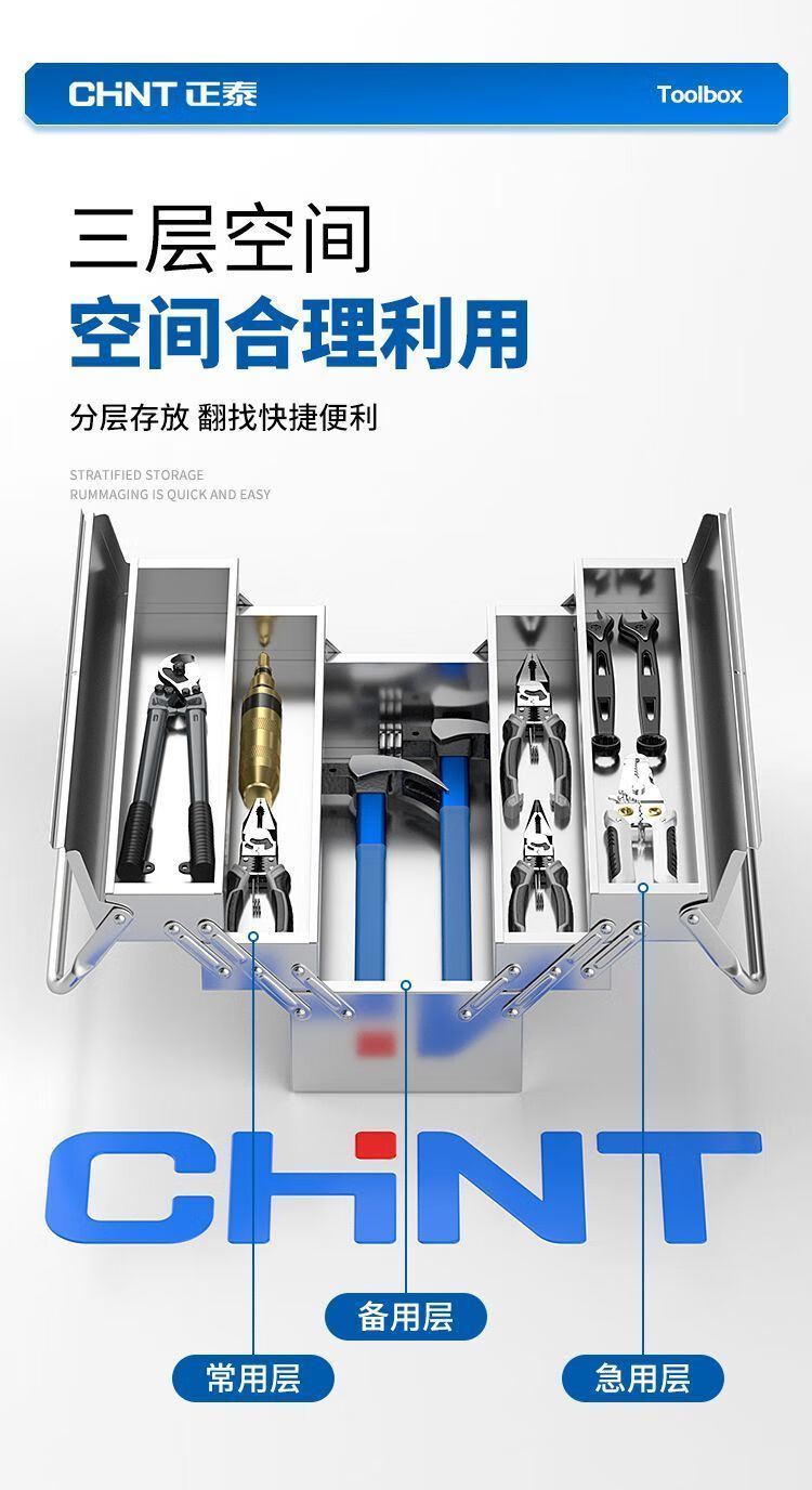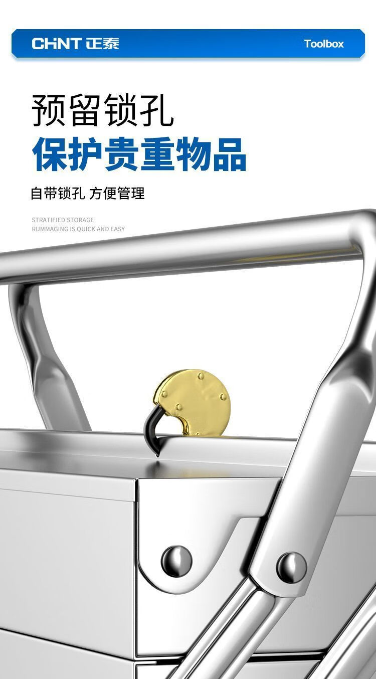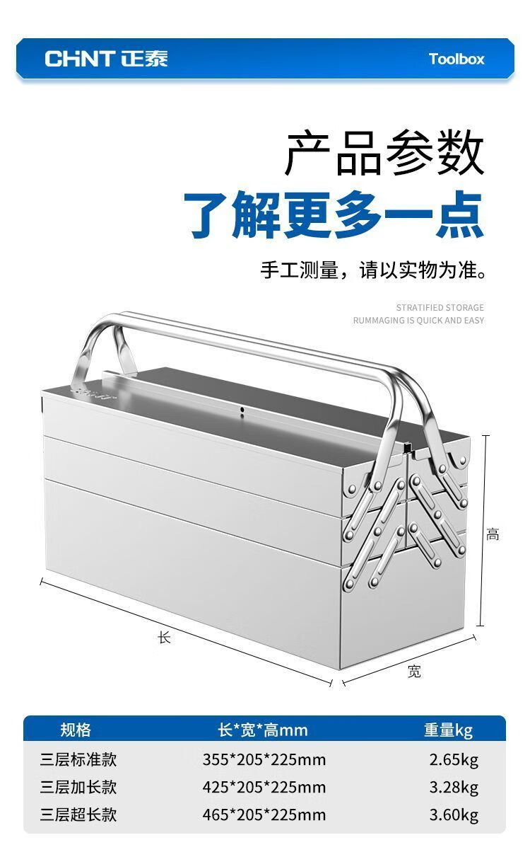 Xiaocai imported ultra-thick stainless steel tool box from Germany, three-layer folding industrial vehicle-mounted portable metal storage box, 17-inch double-layer stainless steel flip-up box