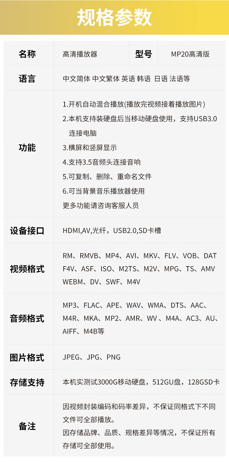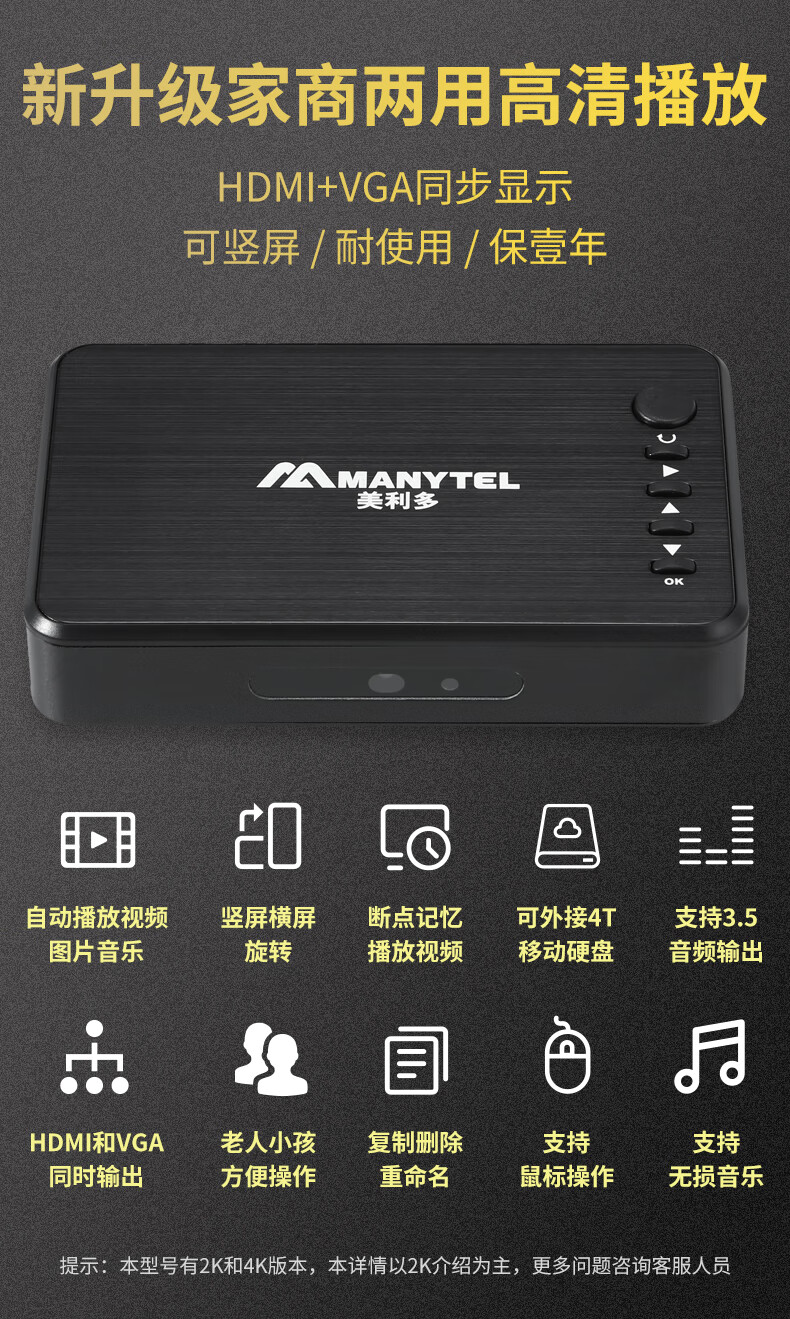 Melido MP20 HD 4K hard disk U disk video horizontal and vertical screen player automatically loops advertising machine playback box when turned on MP20 4K version + 16G U disk