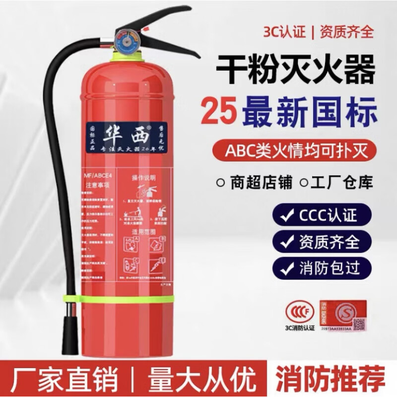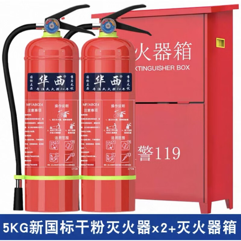 Huaxi fire extinguisher 4kg commercial store portable dry powder 1/2/3/5/8kg fire fighting equipment 4KG set two fire extinguishers + 1 box 2025 new national standard
