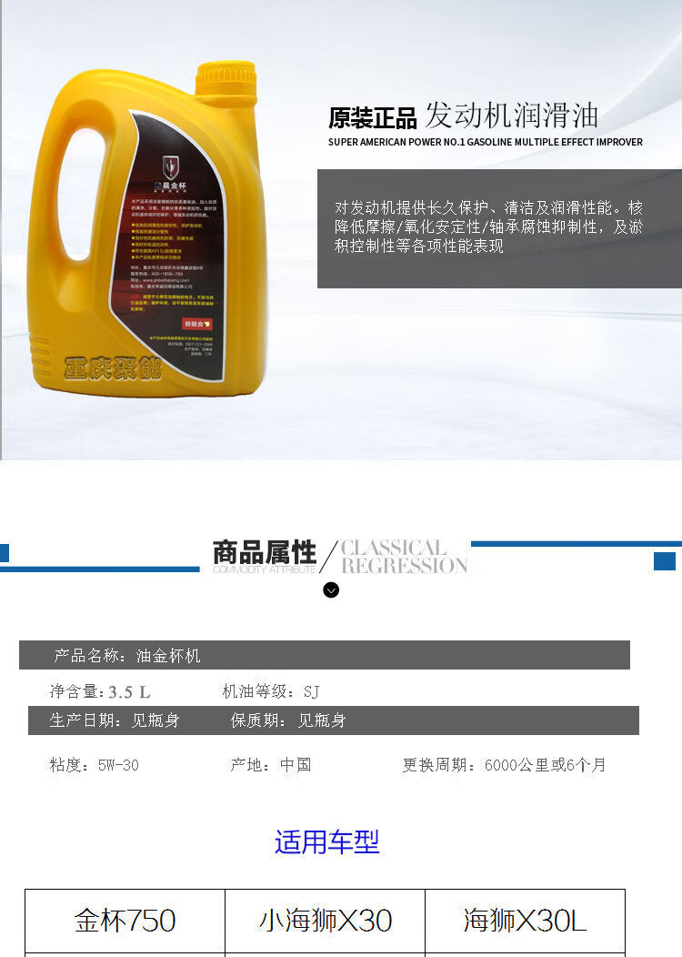 Jinbei Bread A7A9 Little Hiace X30X30LT30T32T50T52 engine oil lubricant 5W30 A7A9X30X30LT30T32T50T525W