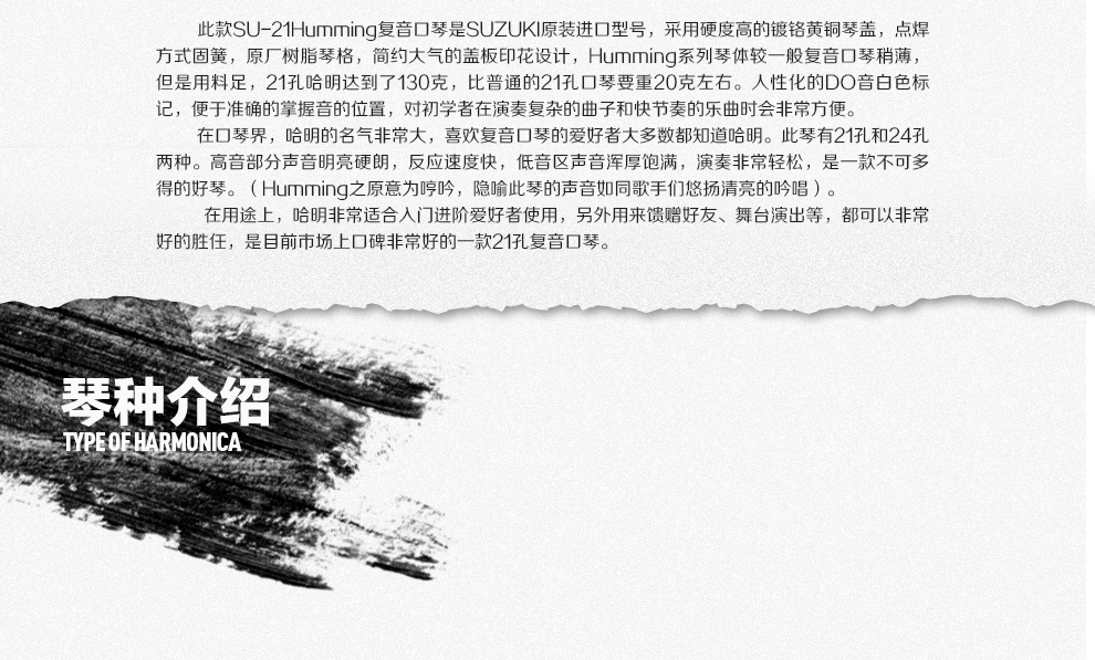 SUZUKI Suzuki Japanese original 21-hole advanced performance polyphonic harmonica SU-21HM Humming G key