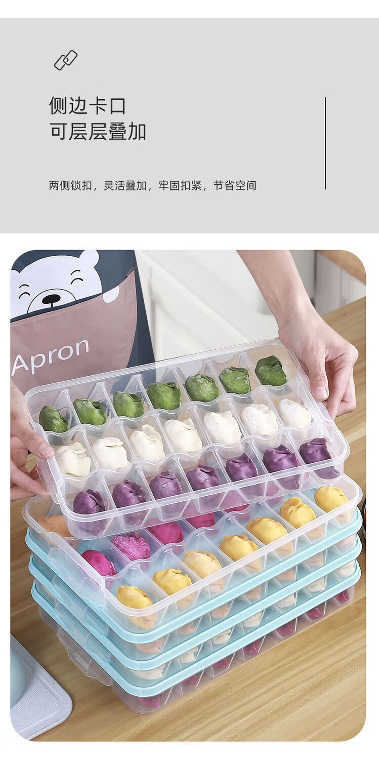 NAOISKEY split-grid dumpling box for home use to keep freshness and prevent odor. Be careful when photographing the mini refrigerator and check the size. One layer and one lid for each package.