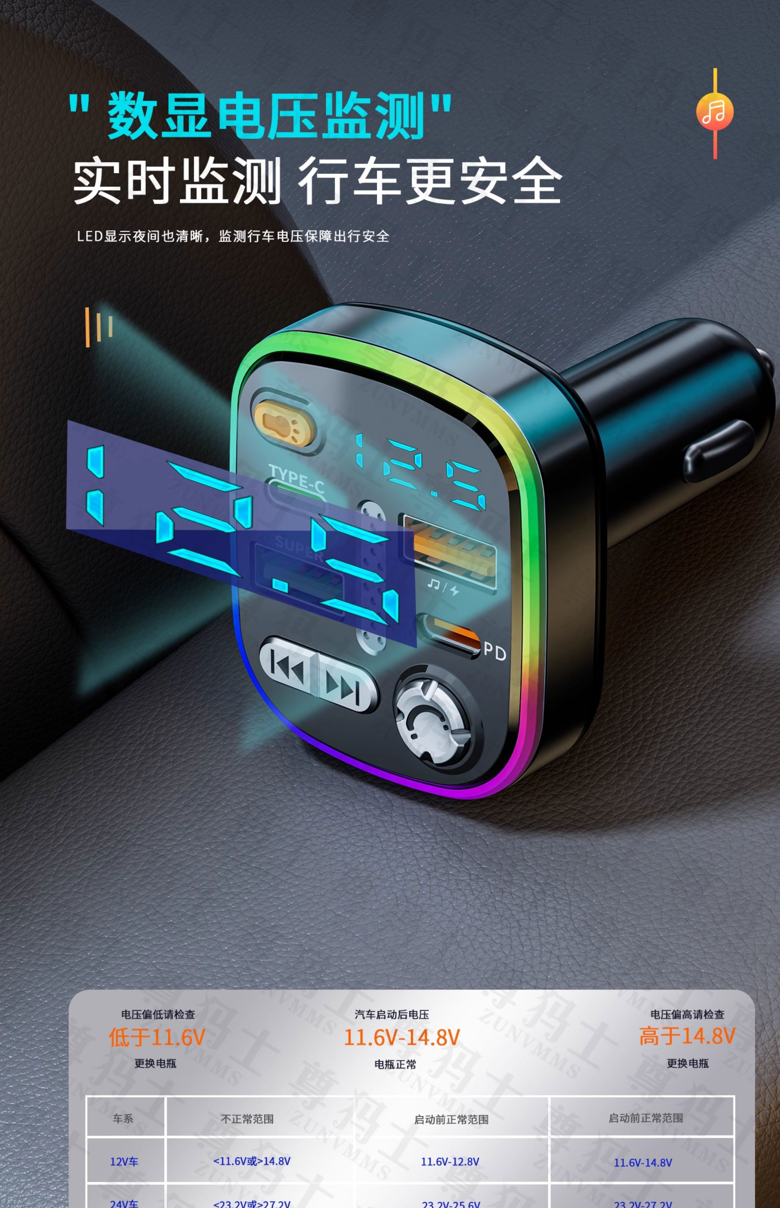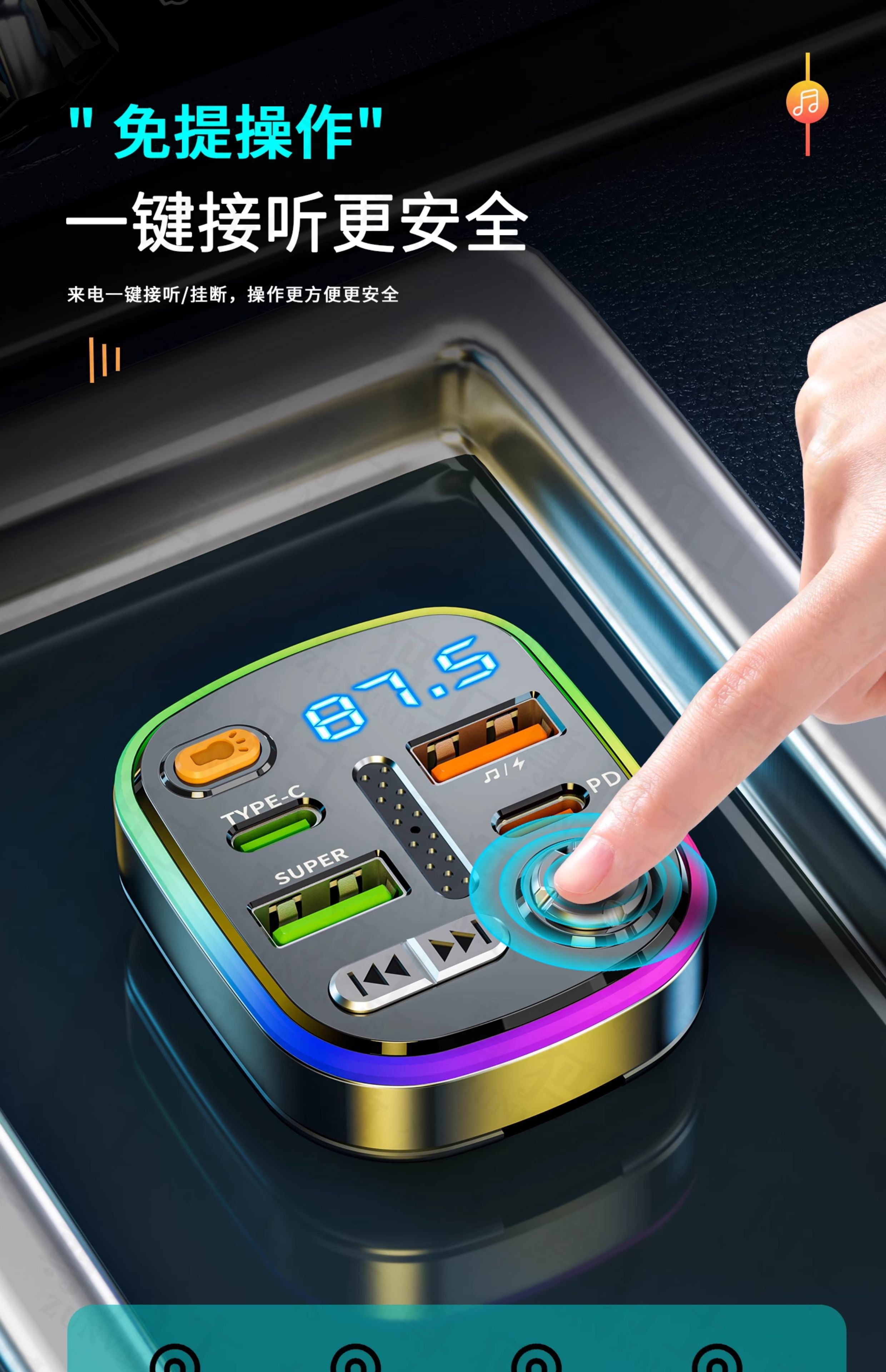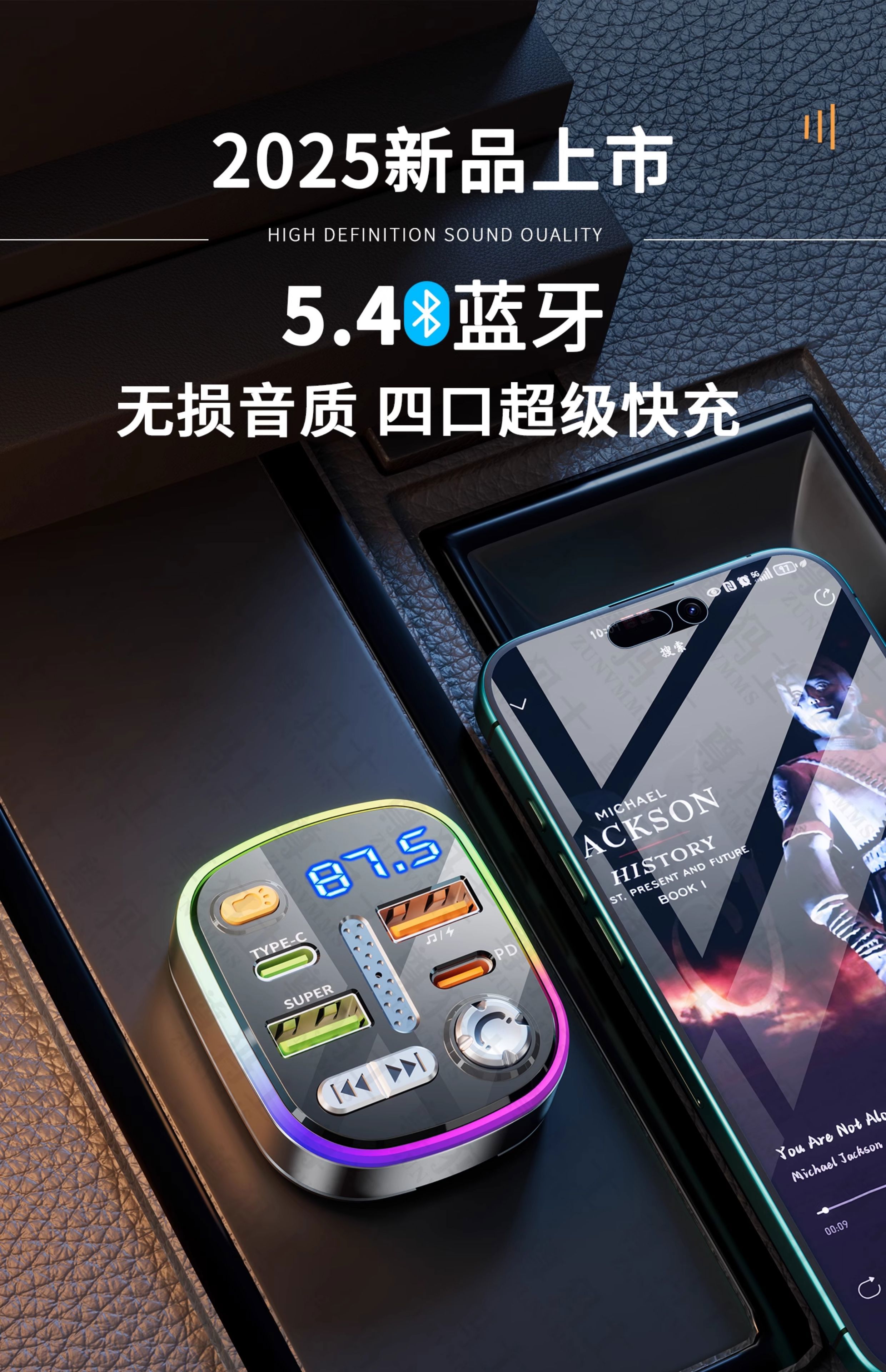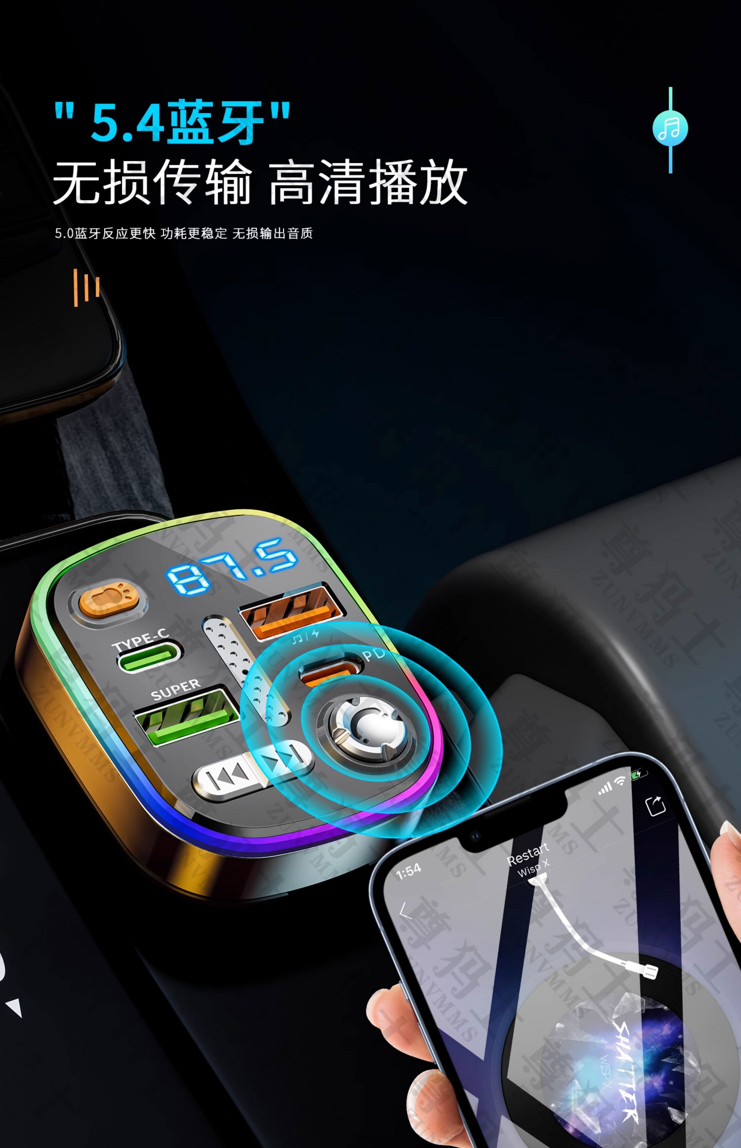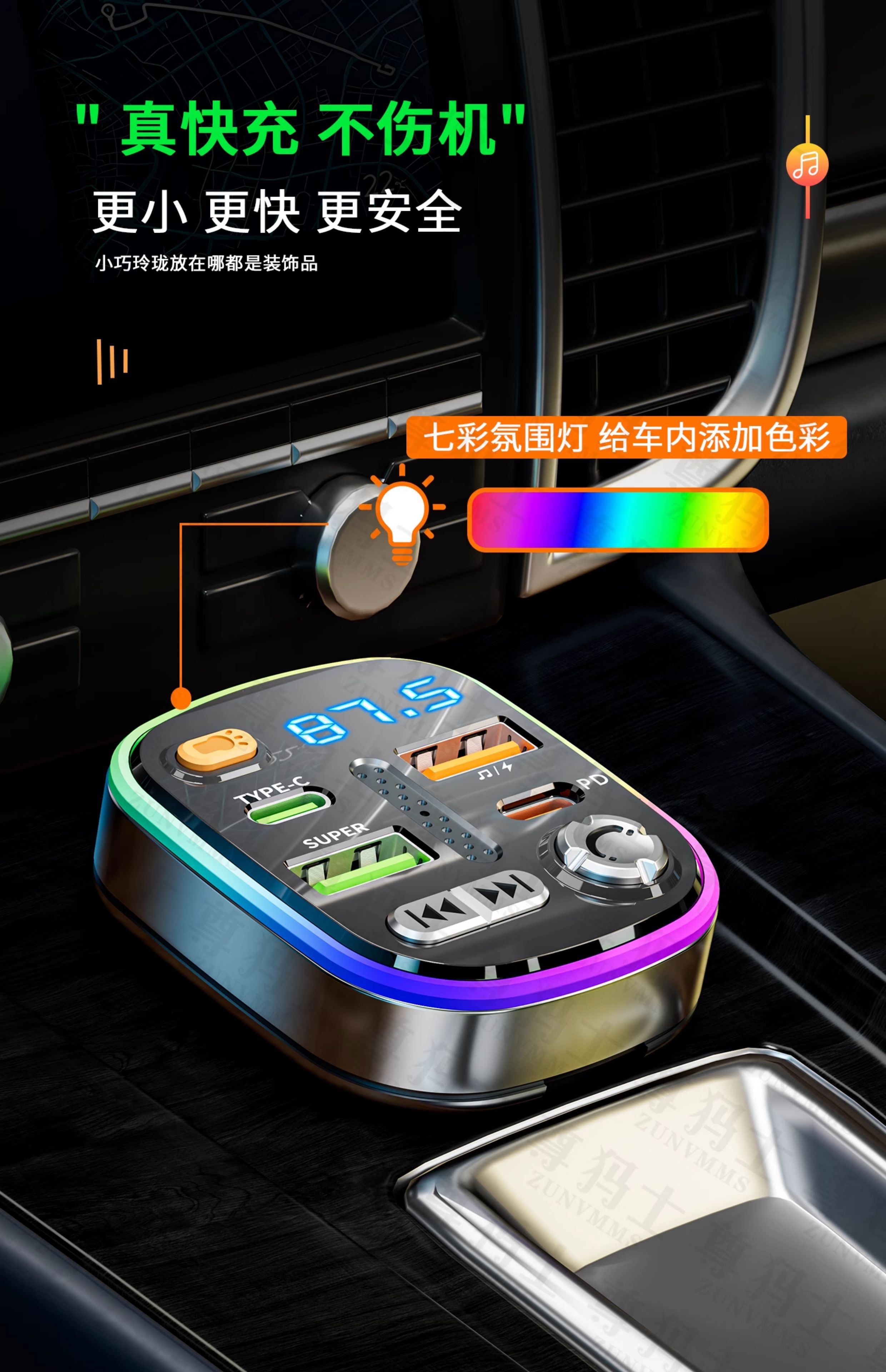 Car Bluetooth receiver lossless sound quality mp3 player conversion cigarette lighter car charger fast charging 120W fast charging version comes with Type-c fast charging cable