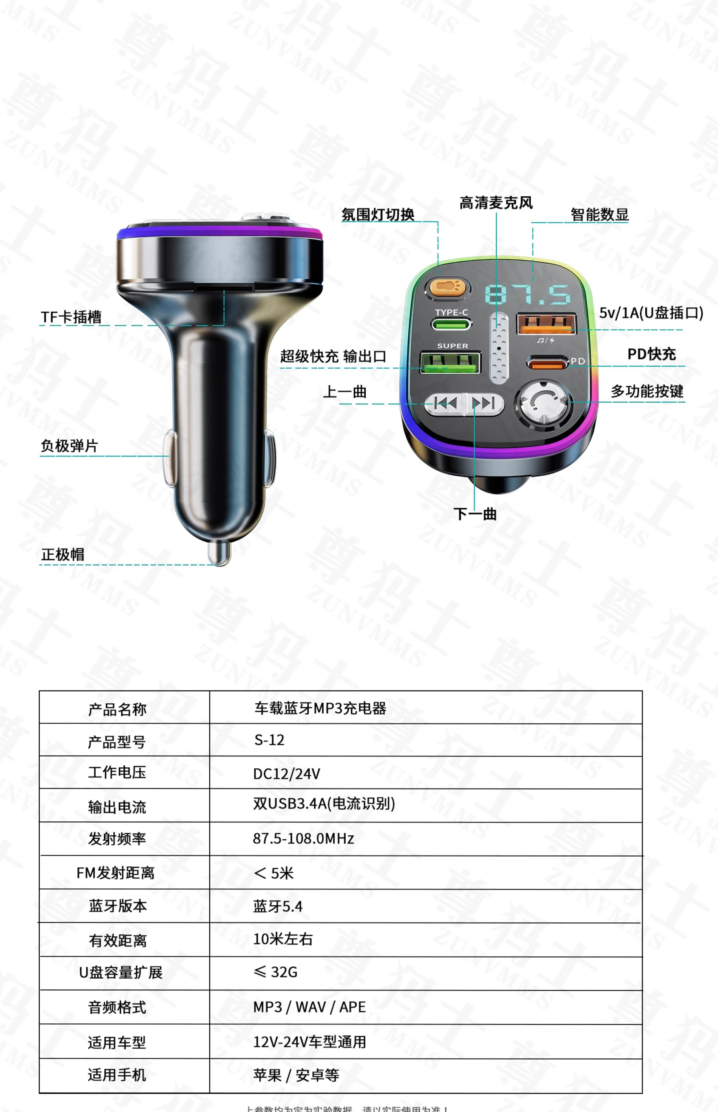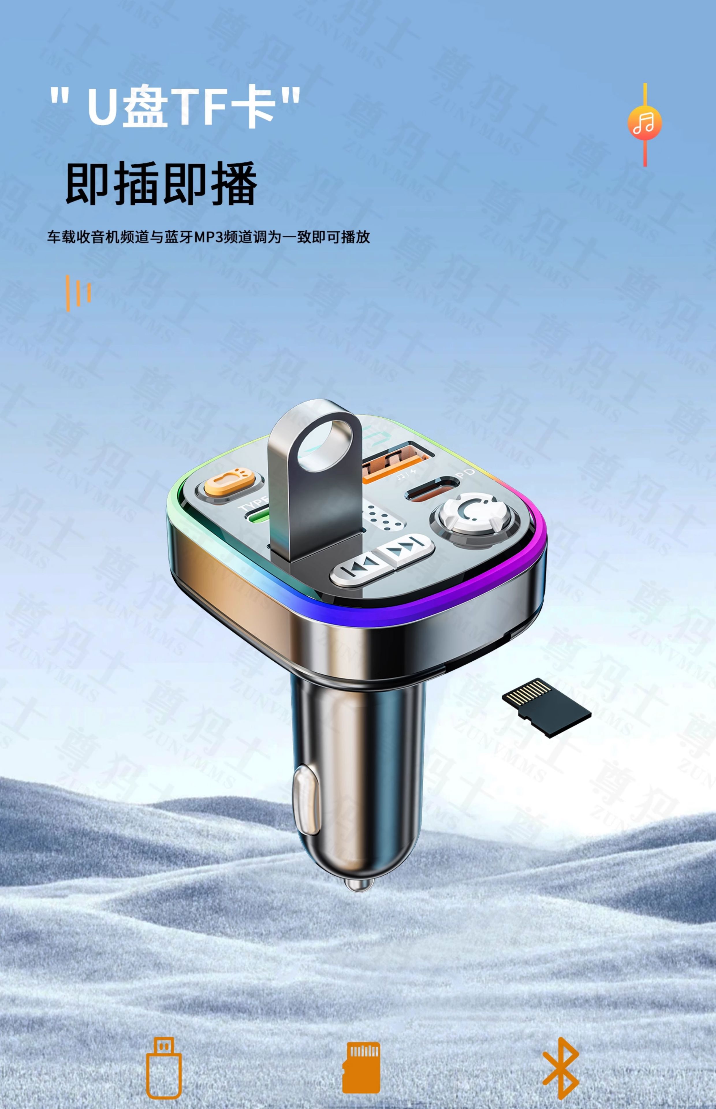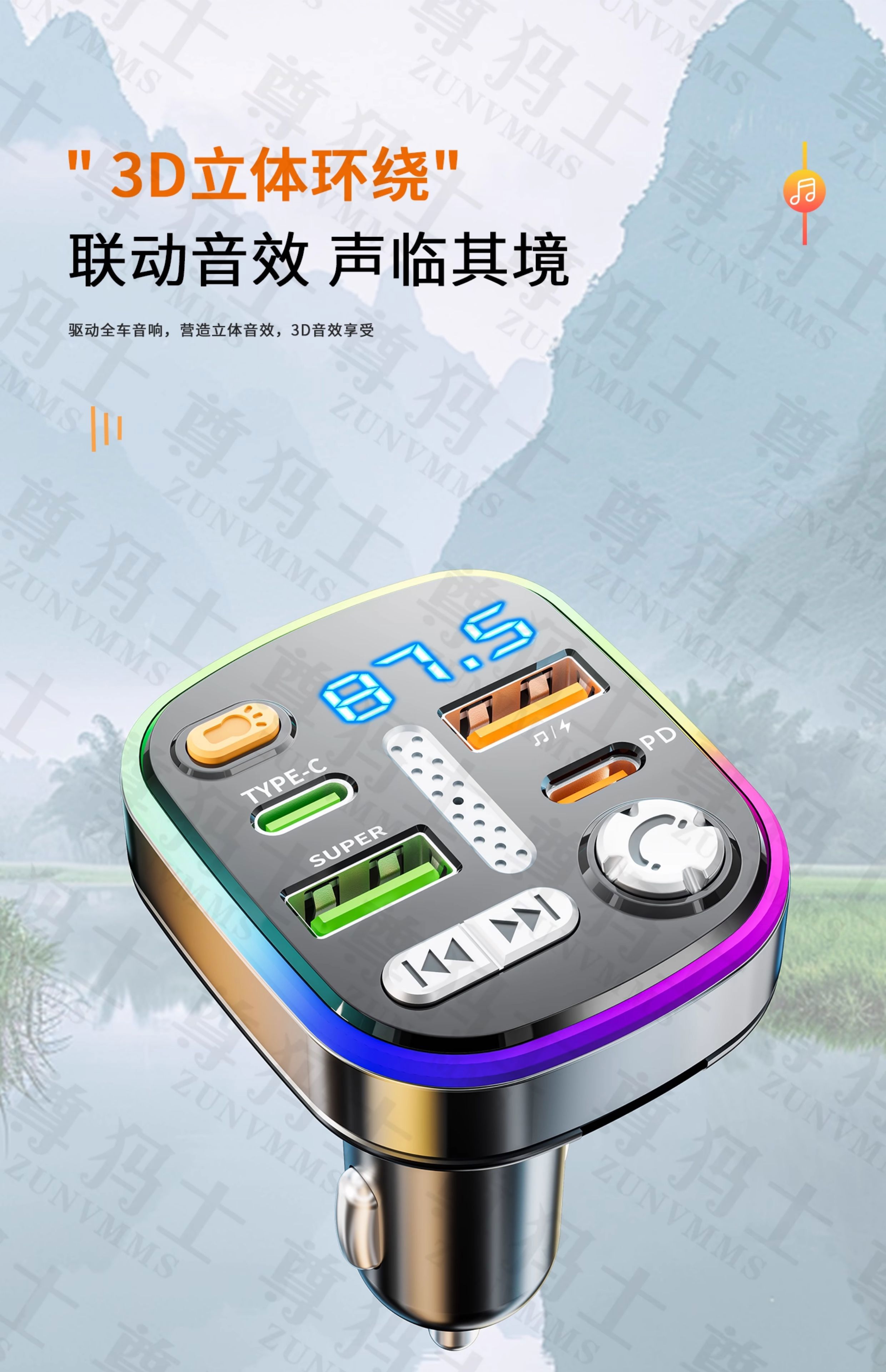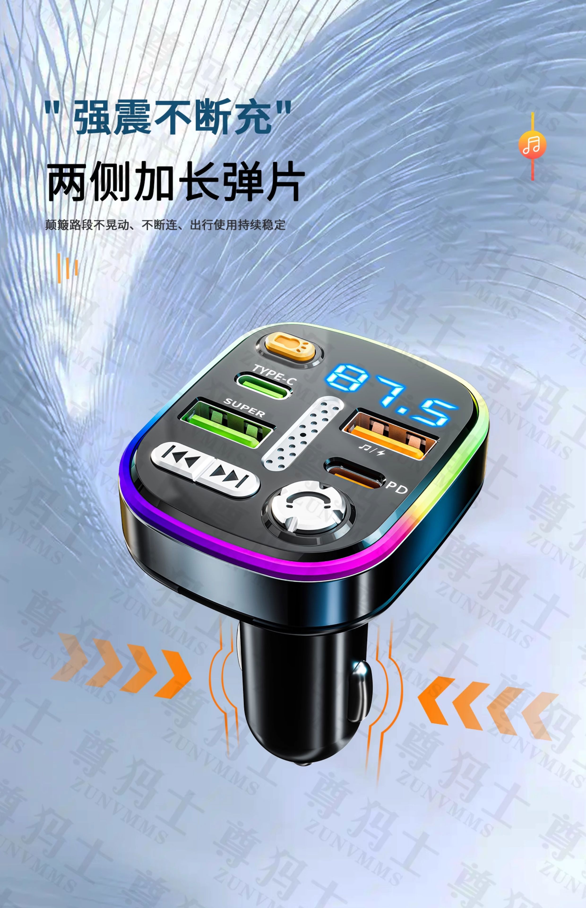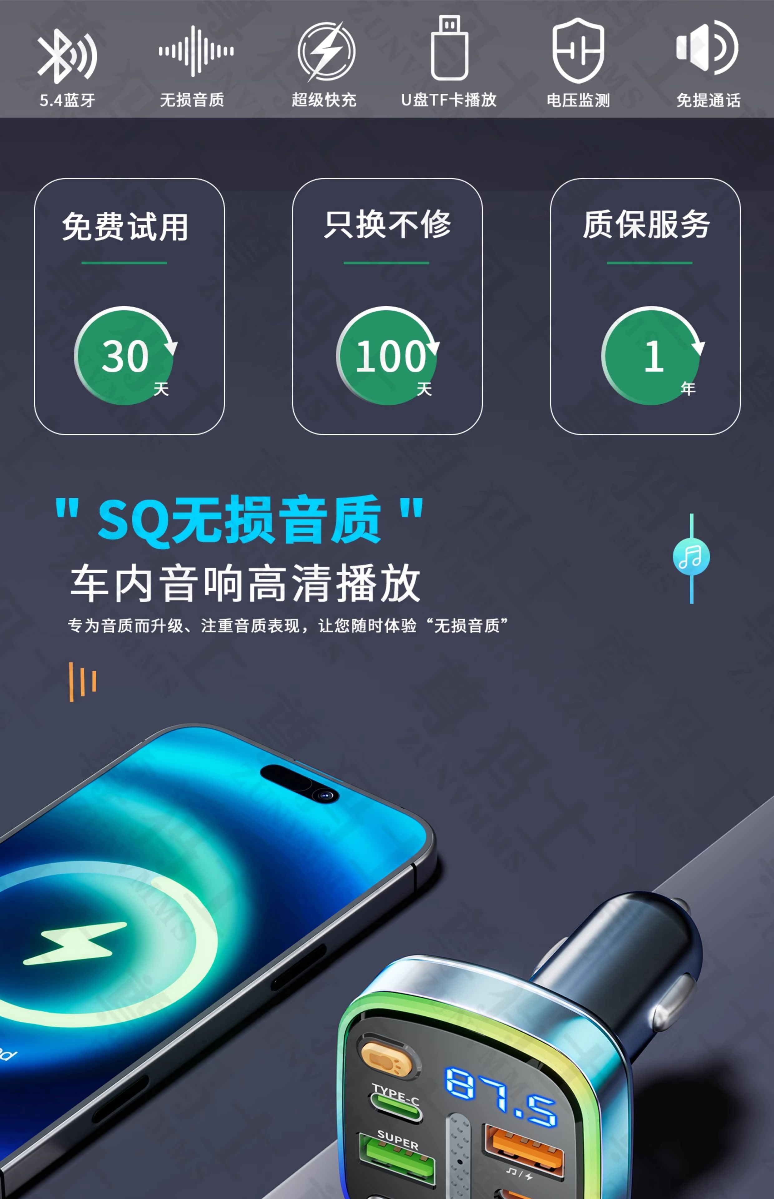 Car Bluetooth receiver lossless sound quality mp3 player conversion cigarette lighter car charger fast charging 120W fast charging version comes with Type-c fast charging cable