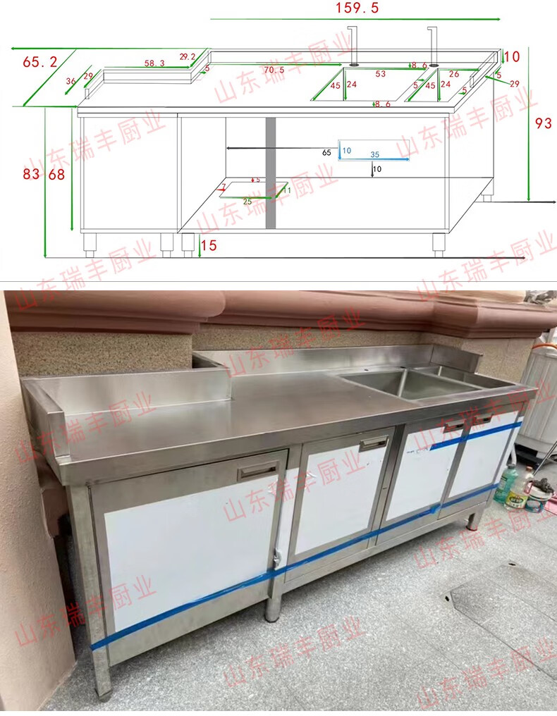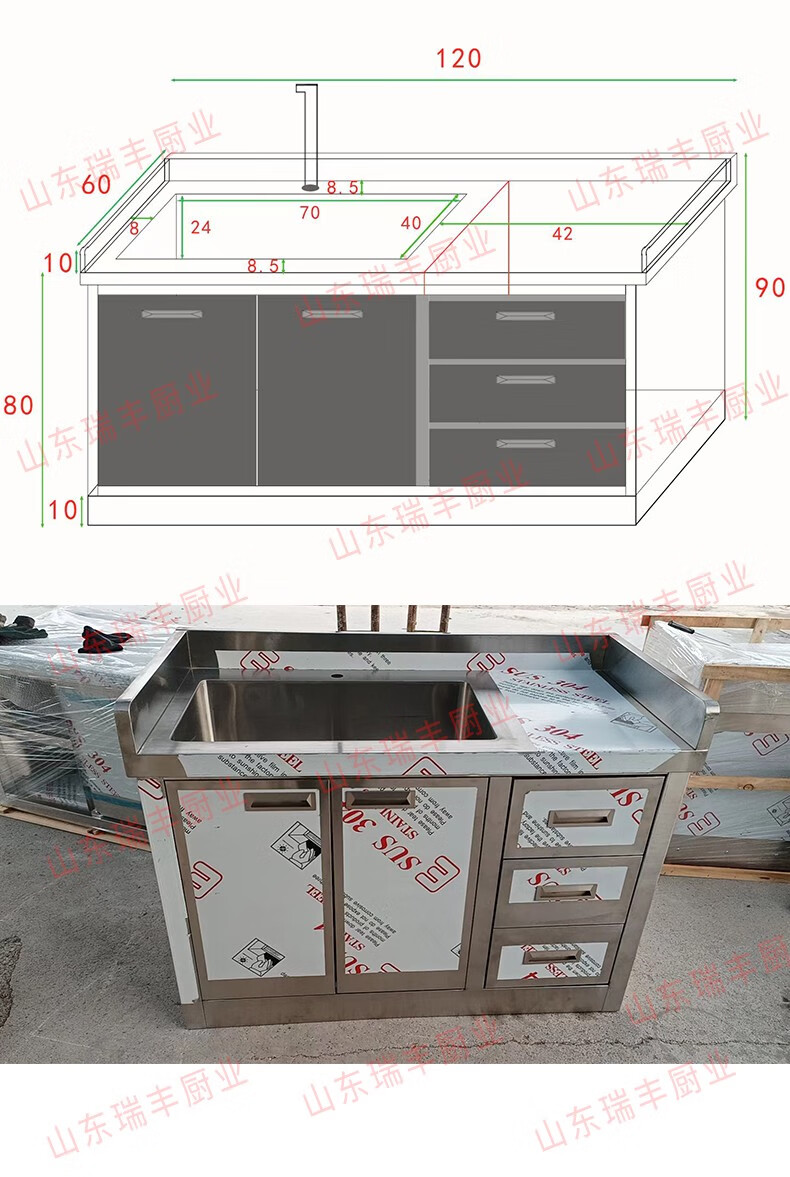 304 stainless steel workbench with pool platform sink integrated stove cabinet hotel commercial home kitchen cabinet 120-60-80 single pool 1 point 2mm thick