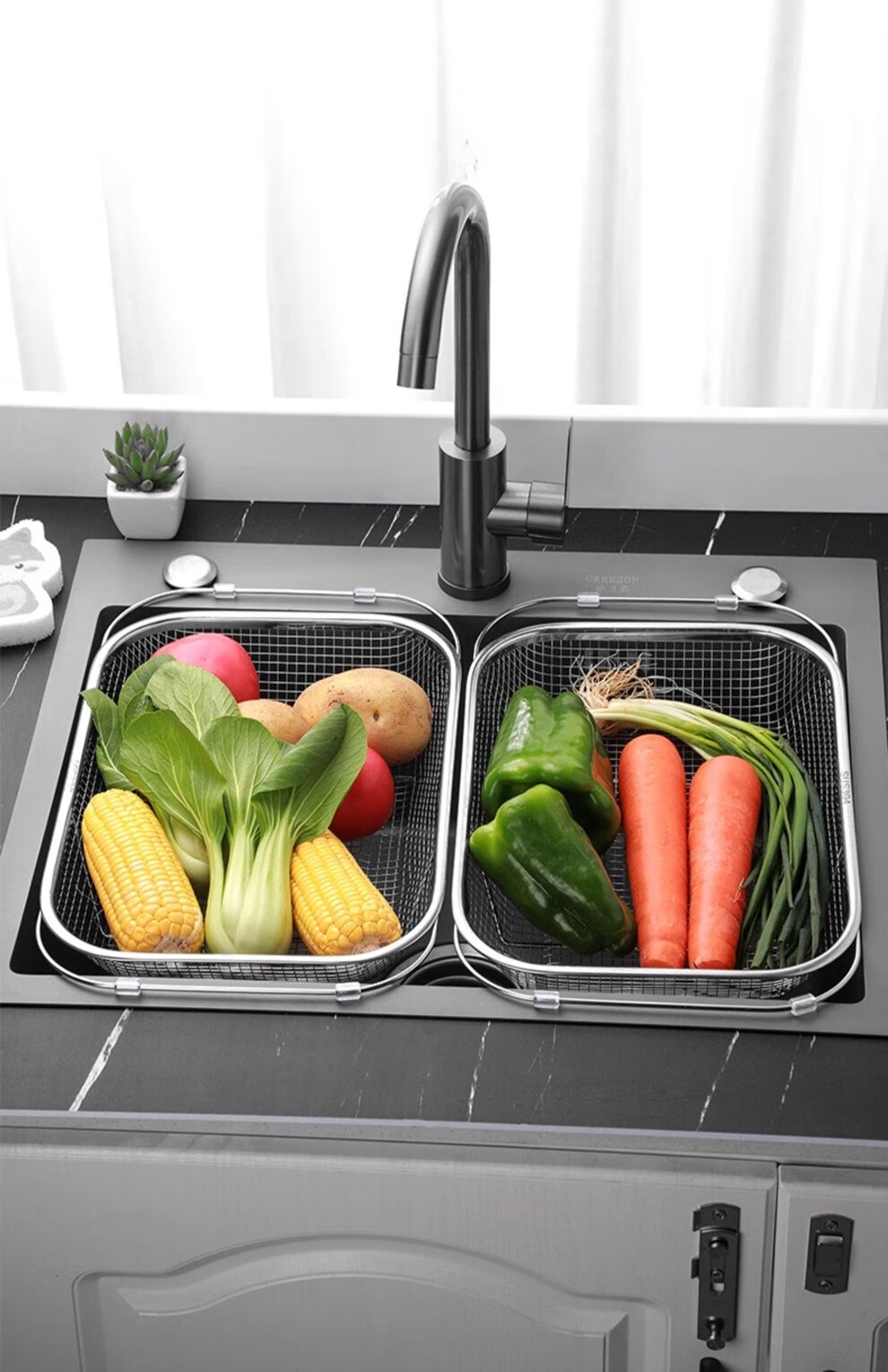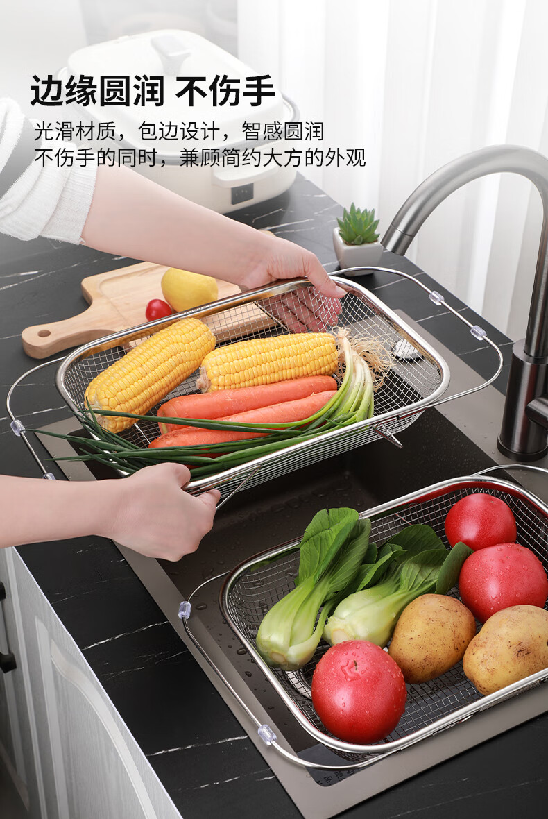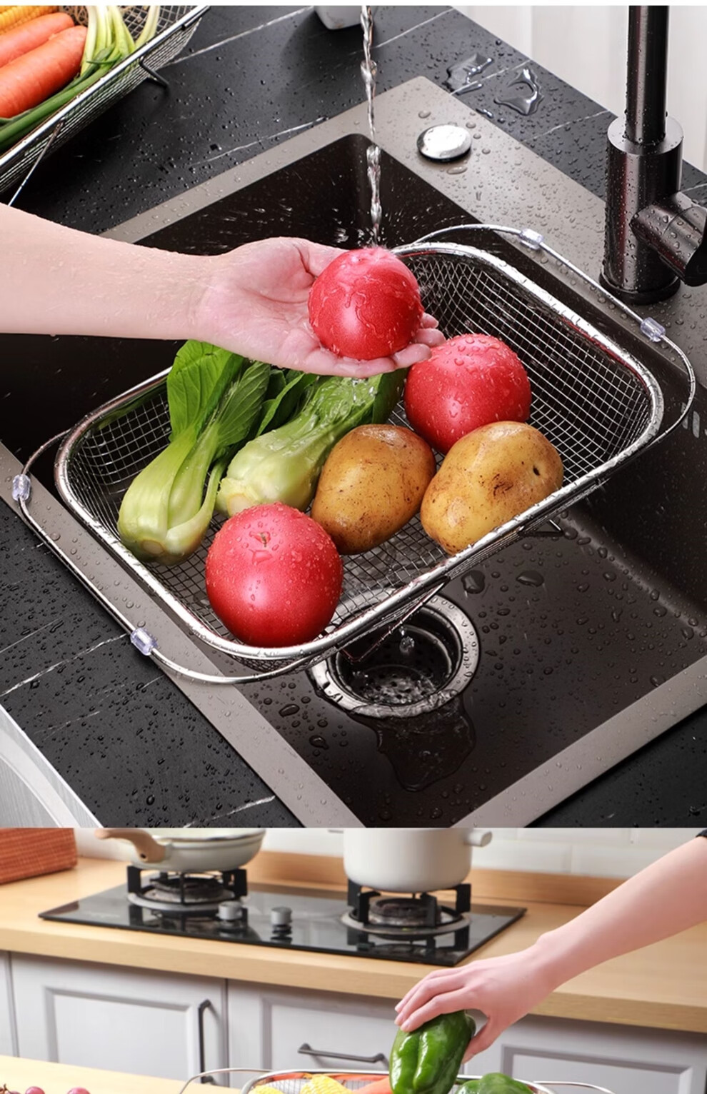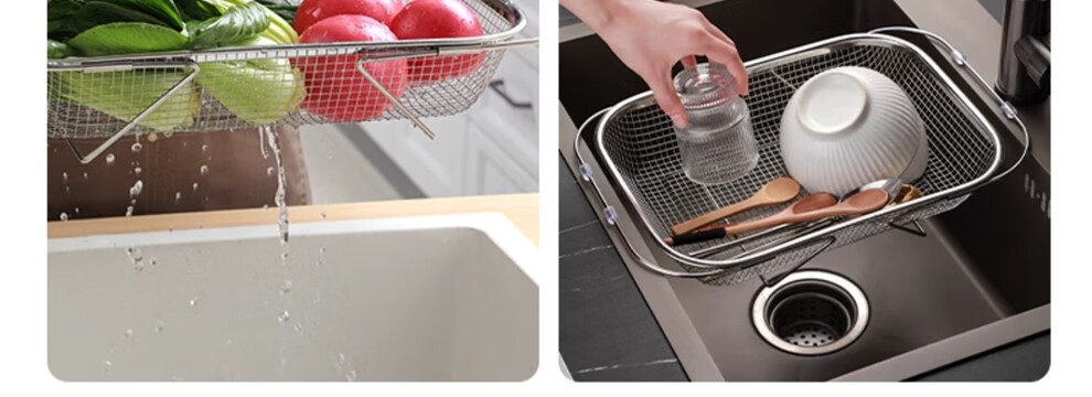 Riheshengtang stainless steel sink drain basket kitchen sink retractable washbasin drain rack multi-functional tableware and chopsticks drain rack large size 304 retractable drain basket