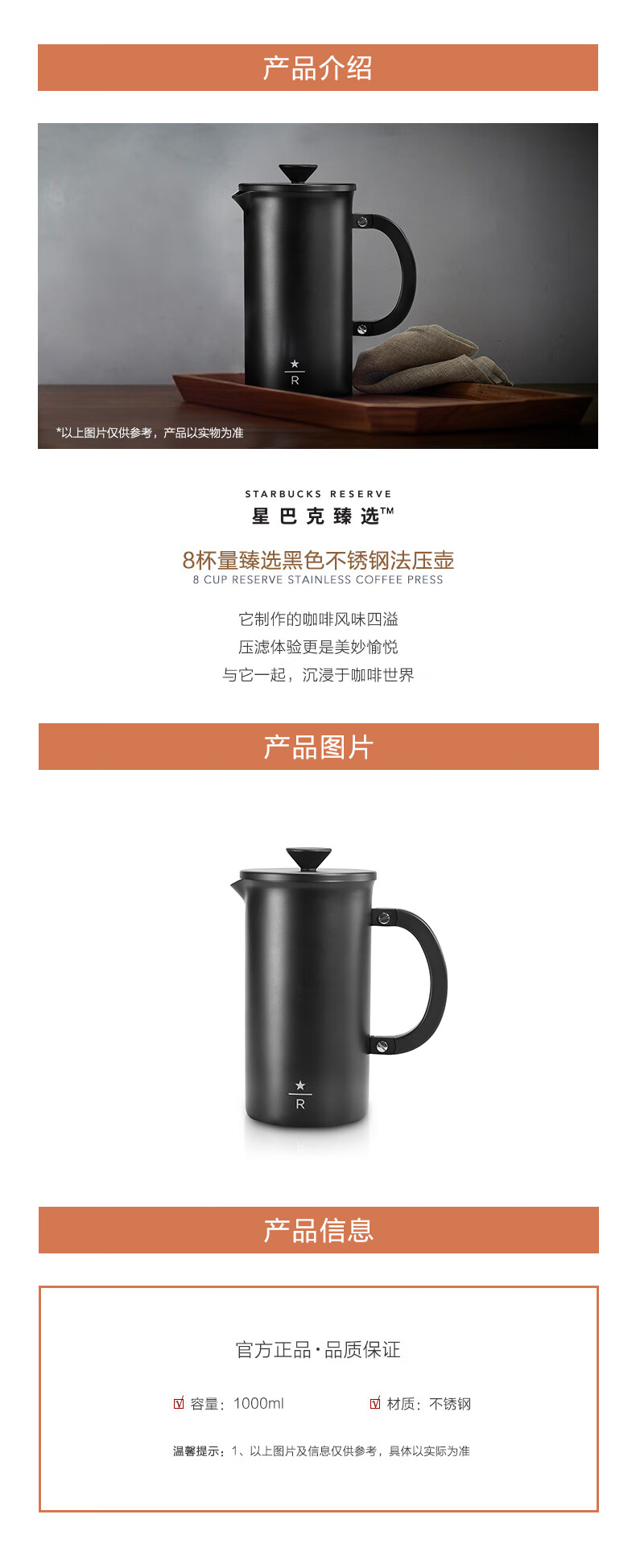 Starbucks Reserve 8-Cup Black Stainless Steel French Press Coffee Press, Classic Appearance Black