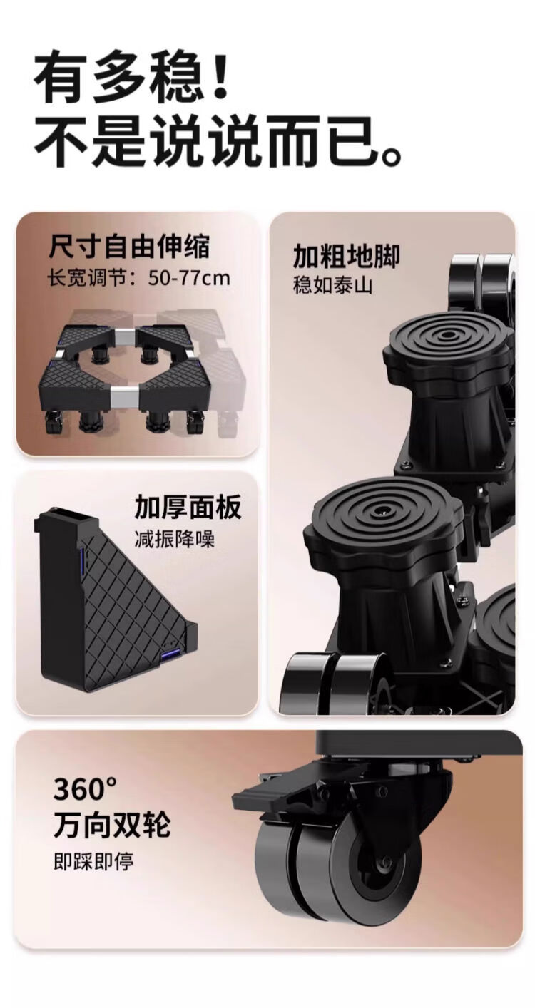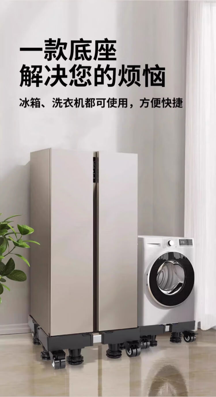 Beishi heightened washing machine base frame mobile universal wheel bracket storage bracket universal drum refrigerator foot pad shelf solid model + base suction cup upgrade four universal wheels + four king pillars after-sales highly recommended unstable