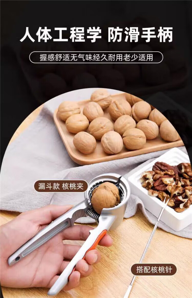 Skingcond Germany's new walnut clip artifact household labor-saving stainless steel multi-functional thickened hazelnut peeling pliers alloy reinforced upgraded funnel-shaped (free walnut needle)