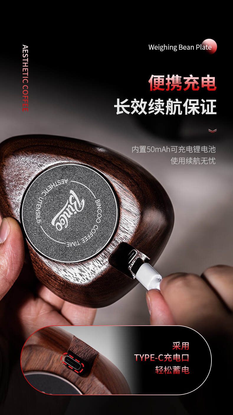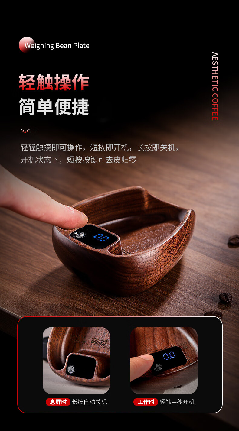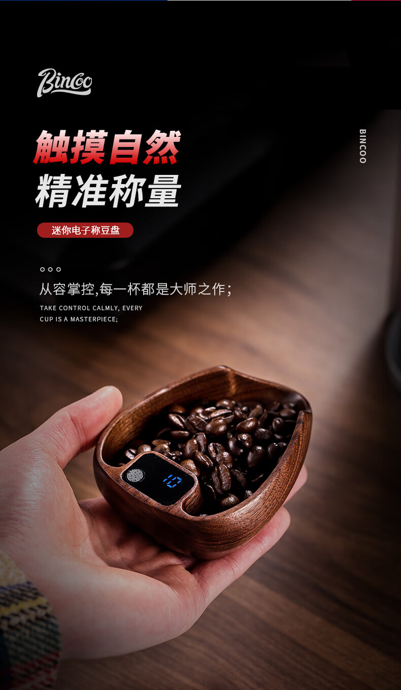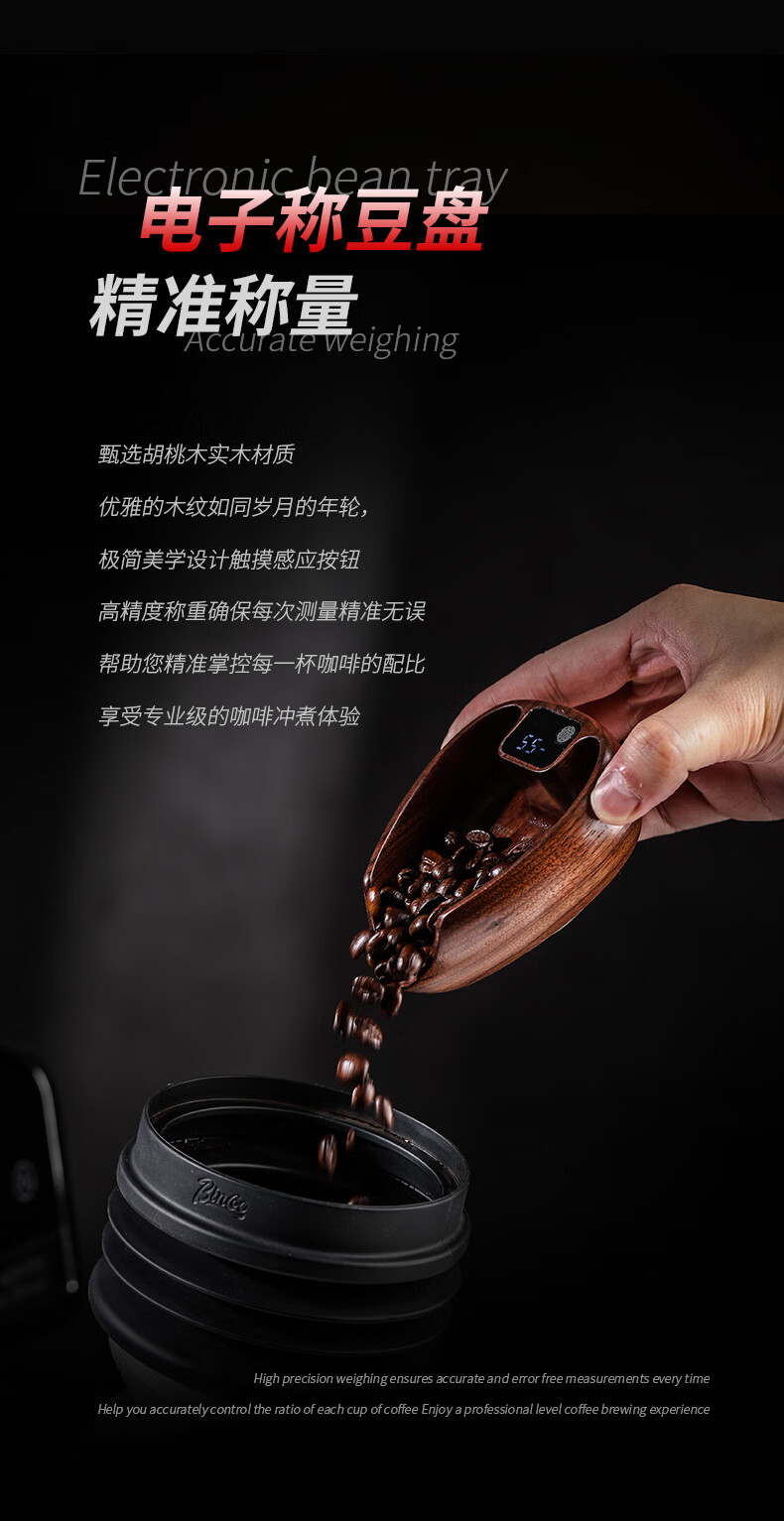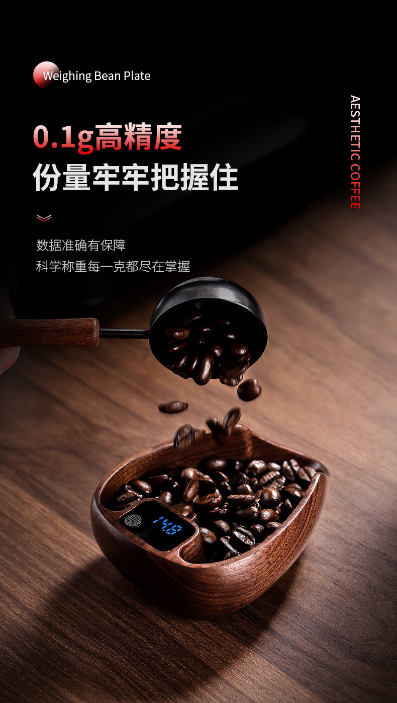 Bincoo walnut coffee bean electronic scale hand brewed coffee bean weighing machine coffee bean weighing tray coffee bean dish weighing walnut bean dish electronic scale + sealed jar