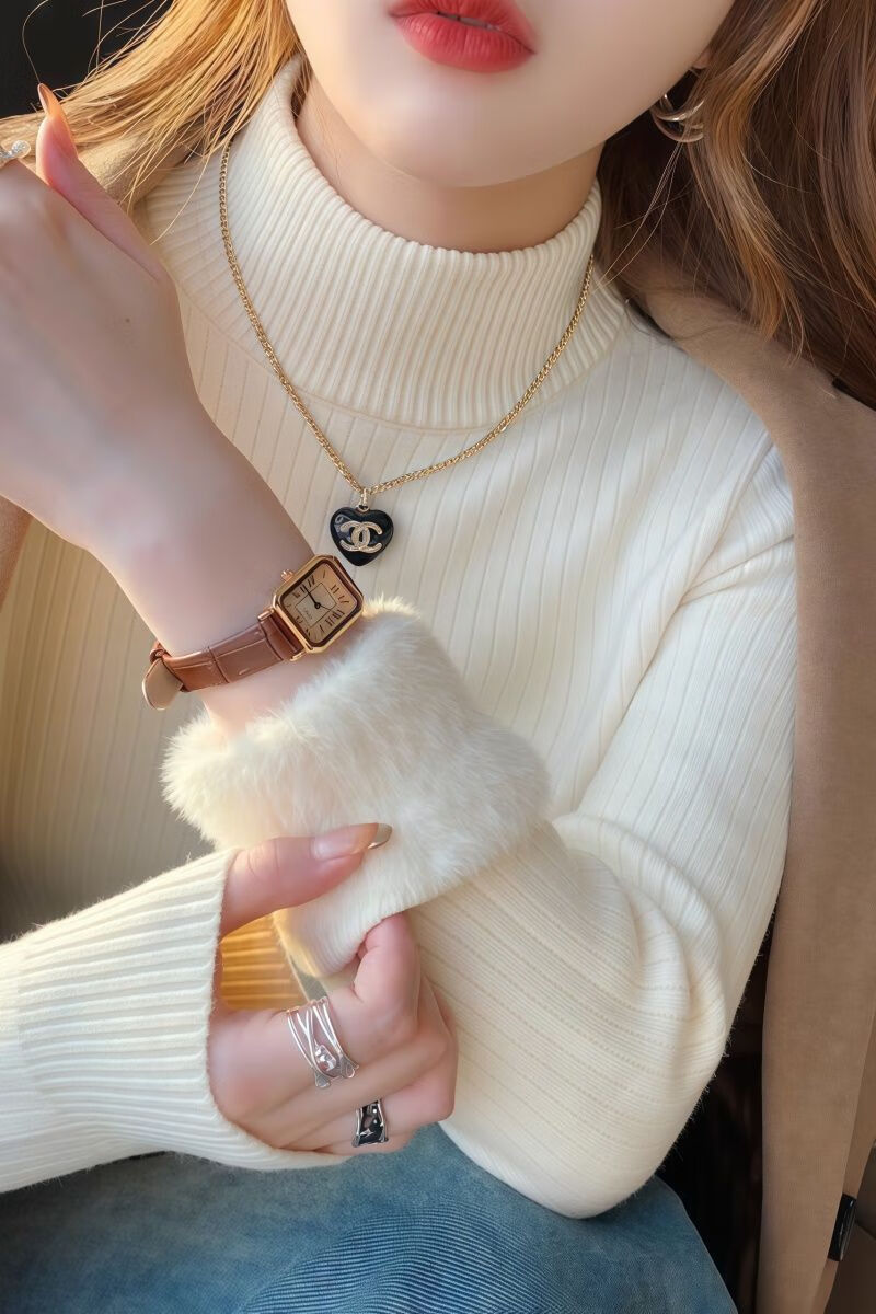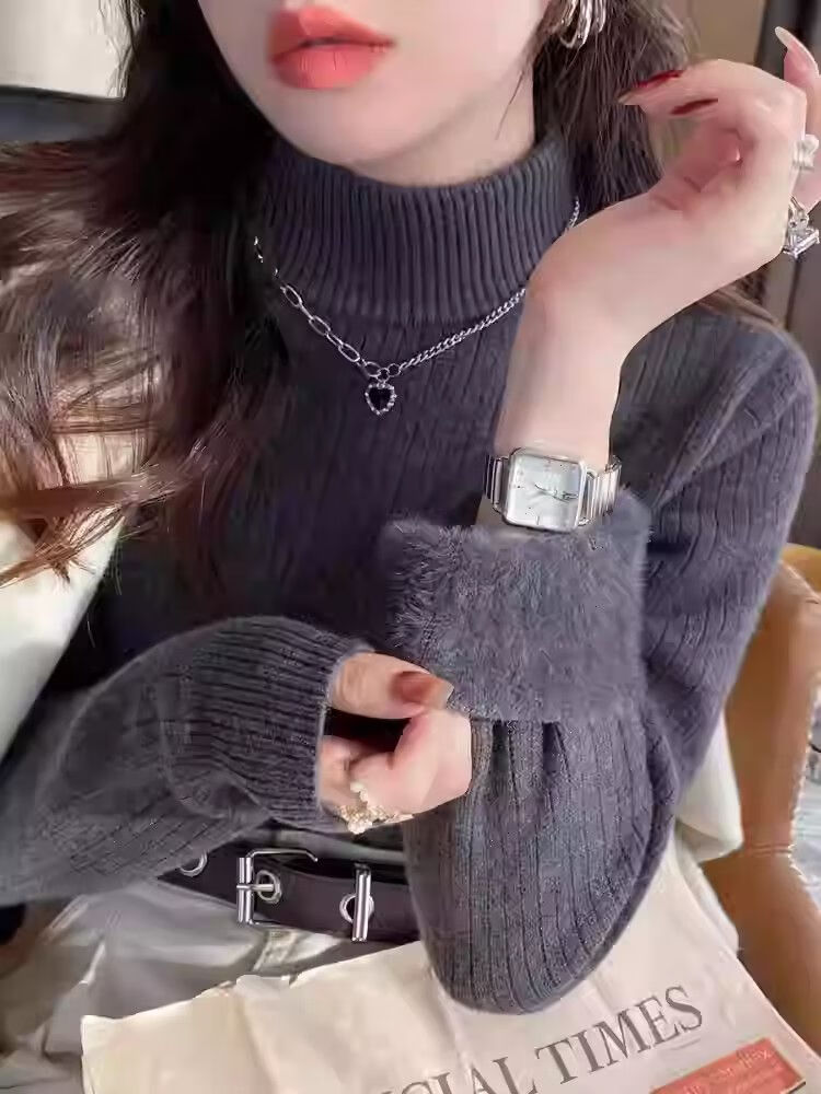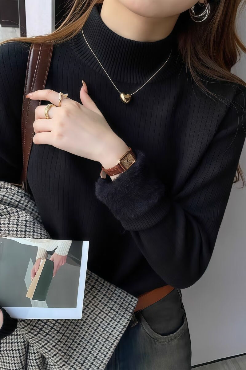 Woodpecker (TUCANO) bottoming shirt for women, which can be worn inside and outside, western style 2025 new thickened velvet half turtleneck sweater bottoming shirt for women, apricot, autumn and winter, thickened XL 120-135