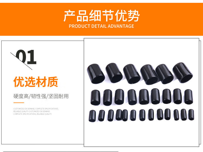 Wenzhi customized rubber sheath, rubber sleeve, thread protective sleeve, plastic sleeve, silicone cap, waterproof cap, silicone plug rubber, inner diameter 16mm, black, 50 pieces