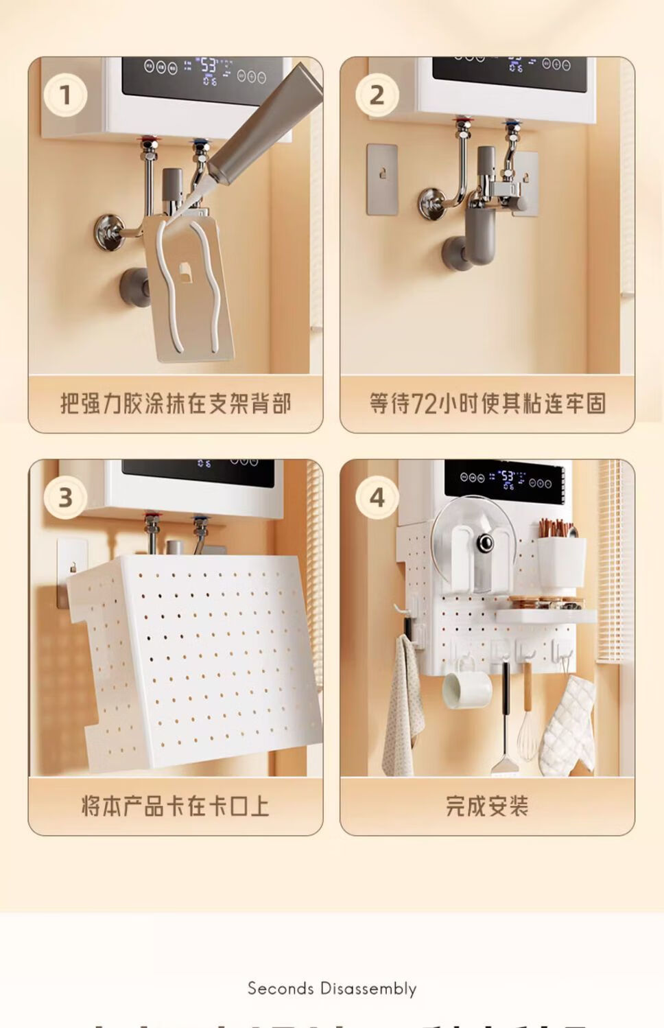 Dianhuai gas water heater cover, wall-mounted furnace hole plate, kitchen shelf, pipe decorative plate, eight-piece storage set, basic model with 4 hooks, supports customization