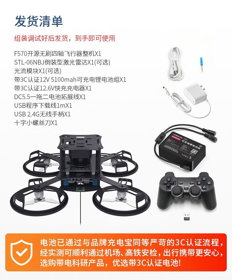 WHEELTEC Quadcopter F570 Open Source UAV stm32 Flight Control Optical Flow Hover Long Endurance Development Kit Aerial Photography Small Remote Control Aircraft Brushless Motor F570 Quadcopter + Optical Flow + STL Flip Radar Finished Product Release