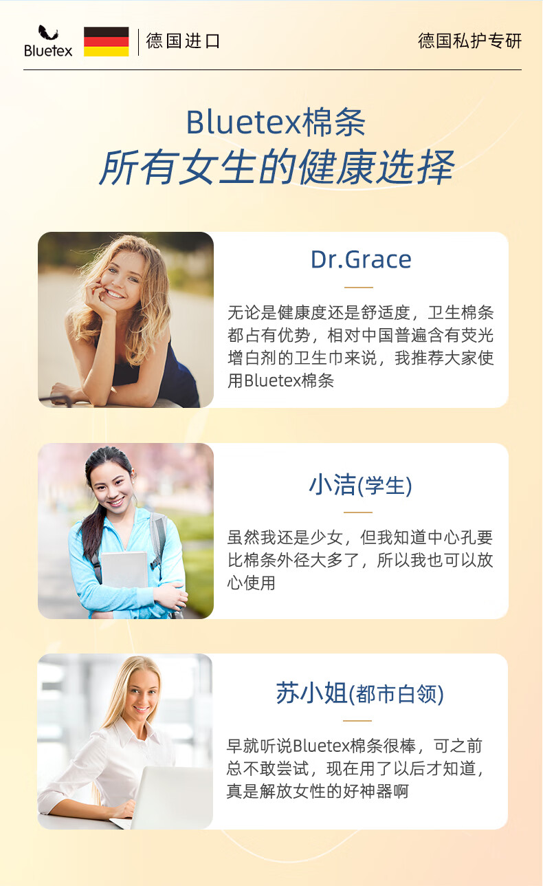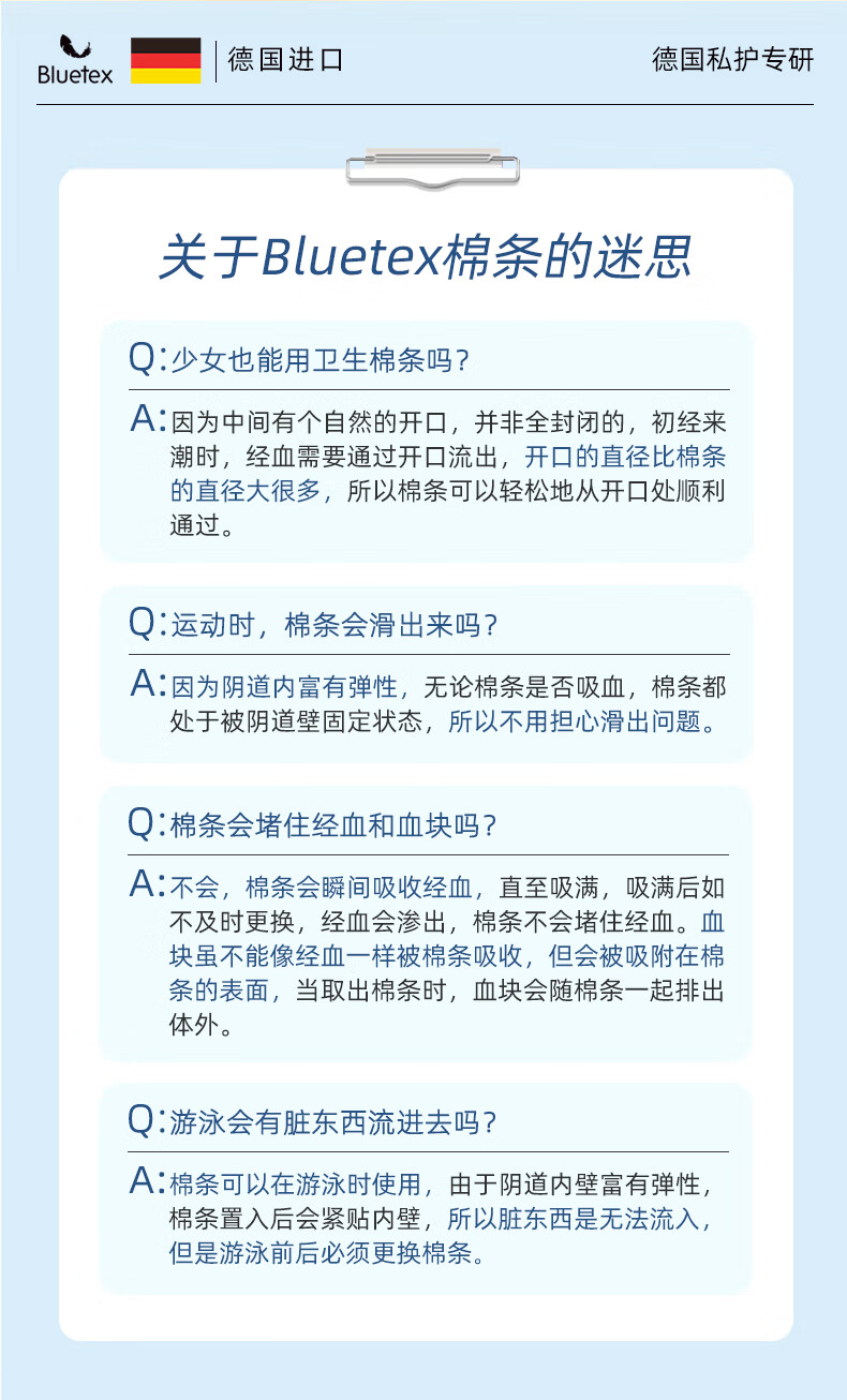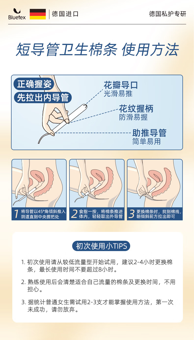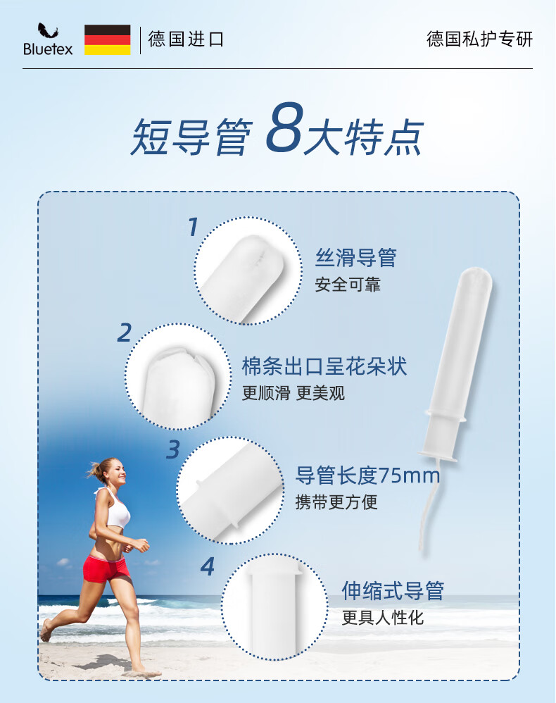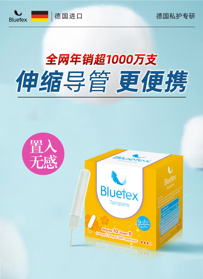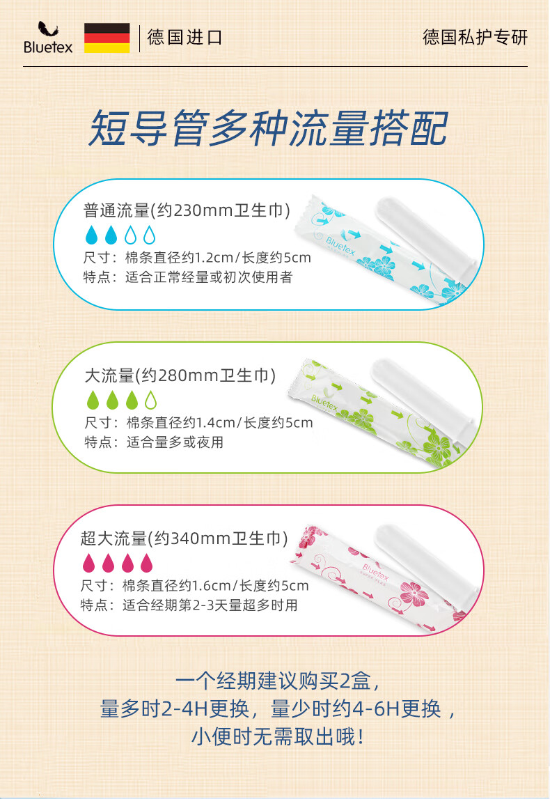 Bluetex tampons 64 pieces short tube type built-in sanitary napkin menstrual swimming special waterproof menstrual cycle roller cylindrical cotton core series normal flow 16 pieces 4 boxes