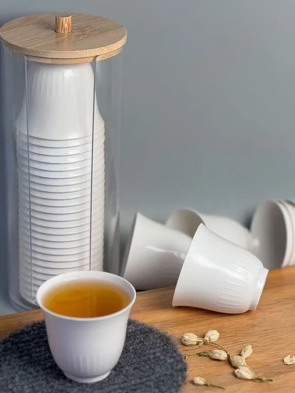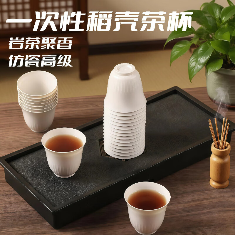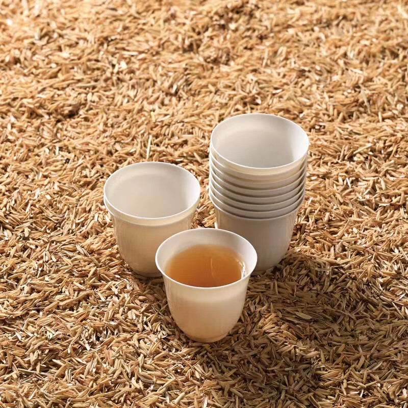 Disposable rice husk tea cup, environmentally friendly and thickened, high-end camping, heat-resistant and high-end dining rock tea green tea cup, rice husk white 55ml*50 pieces