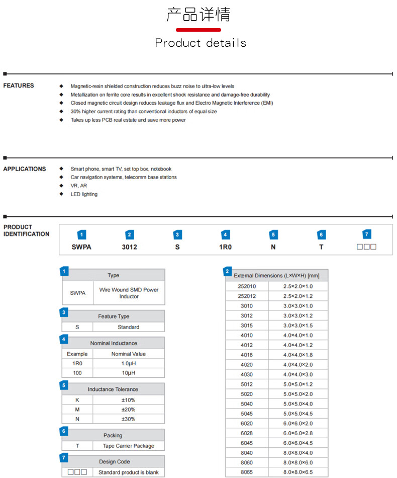 YourCee8040 Chip Wirewound SMD Power Inductor 2.2/3.3/4.7/6.8/10/15/22/100/330uH 2.2uH_ 30% No specifications