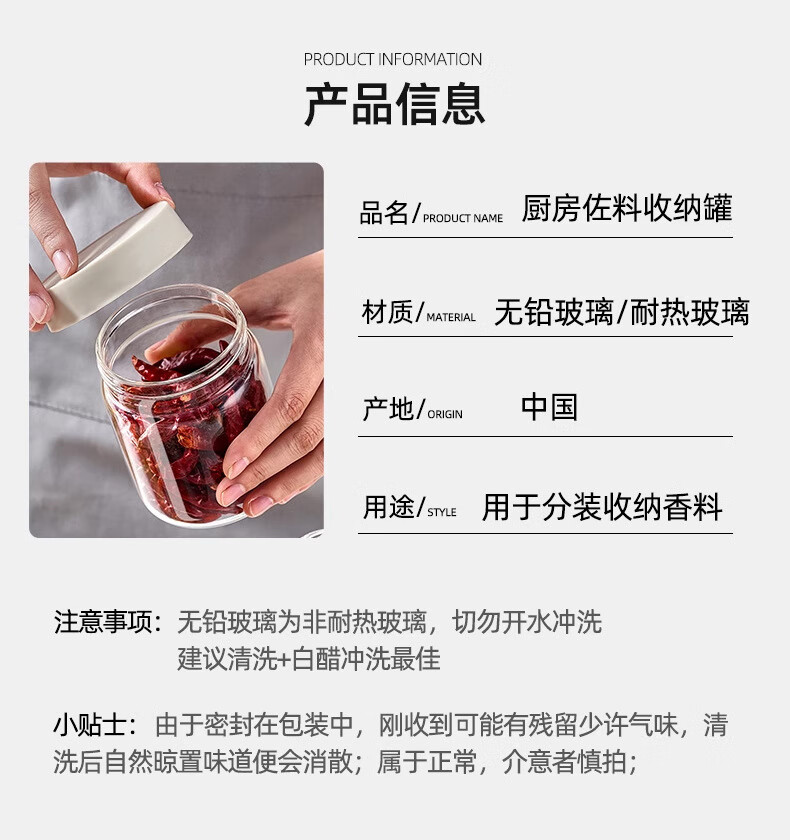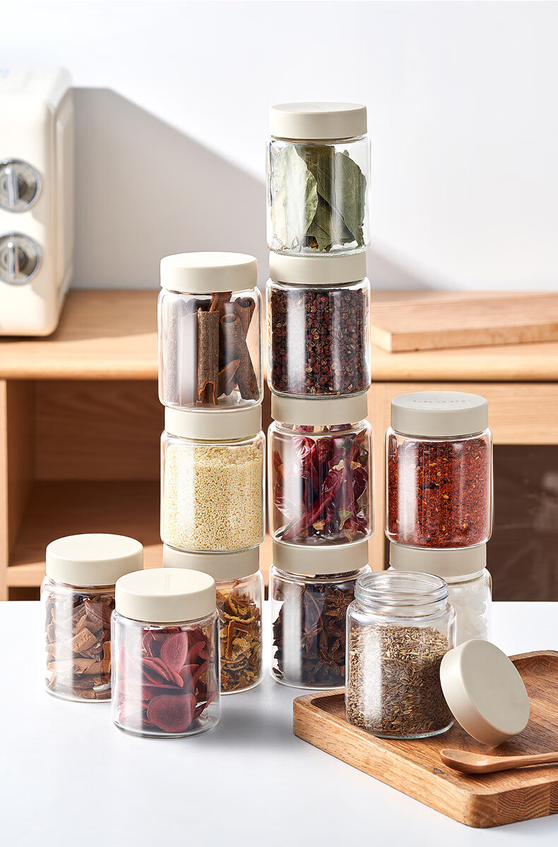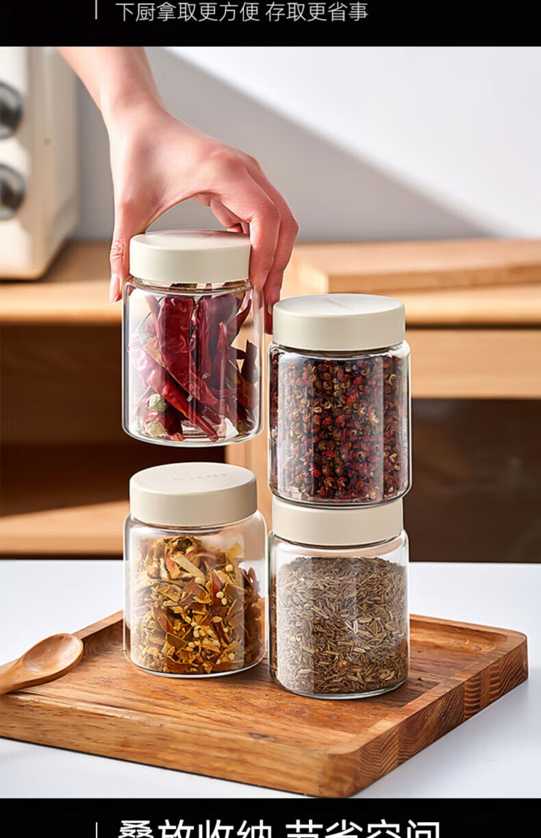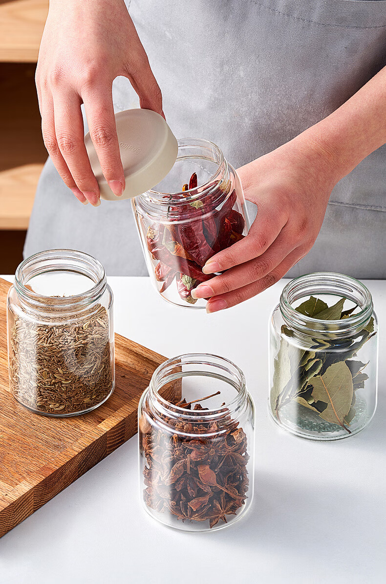 JCZS food dispensing bottle high borosilicate glass sealed jar household storage storage jar multi-functional storage bottle seasoning jar heat-resistant glass 750ml*3 (sealed lid)
