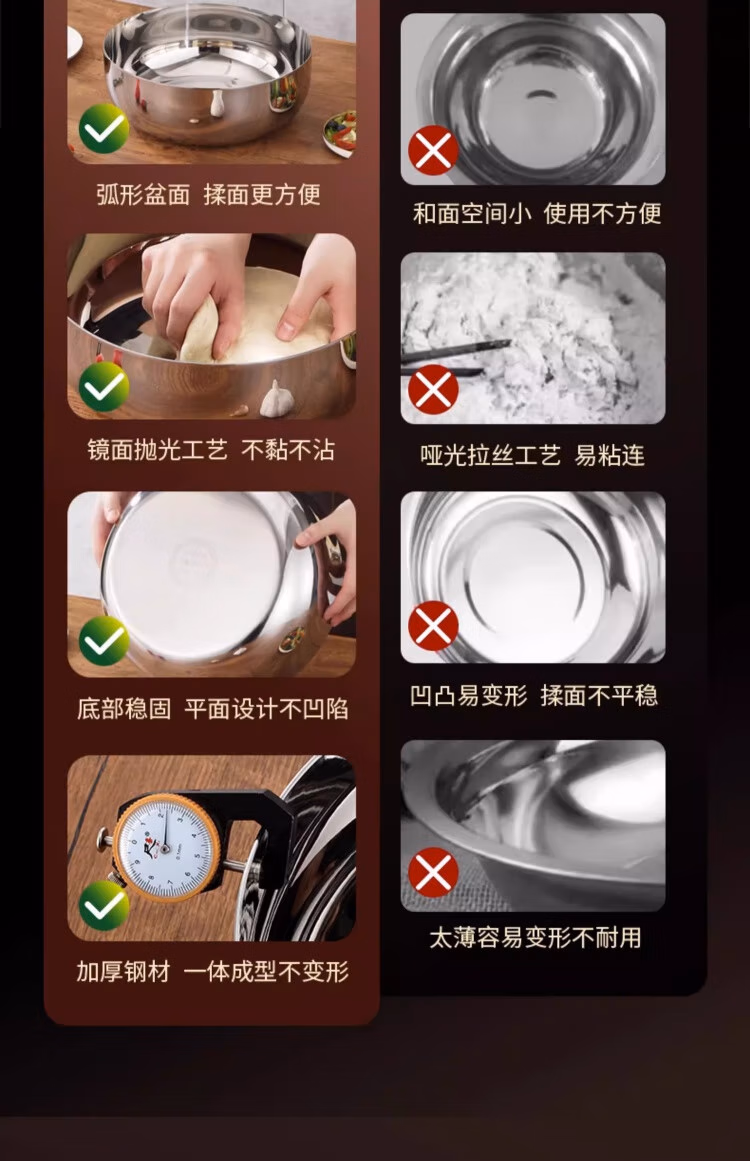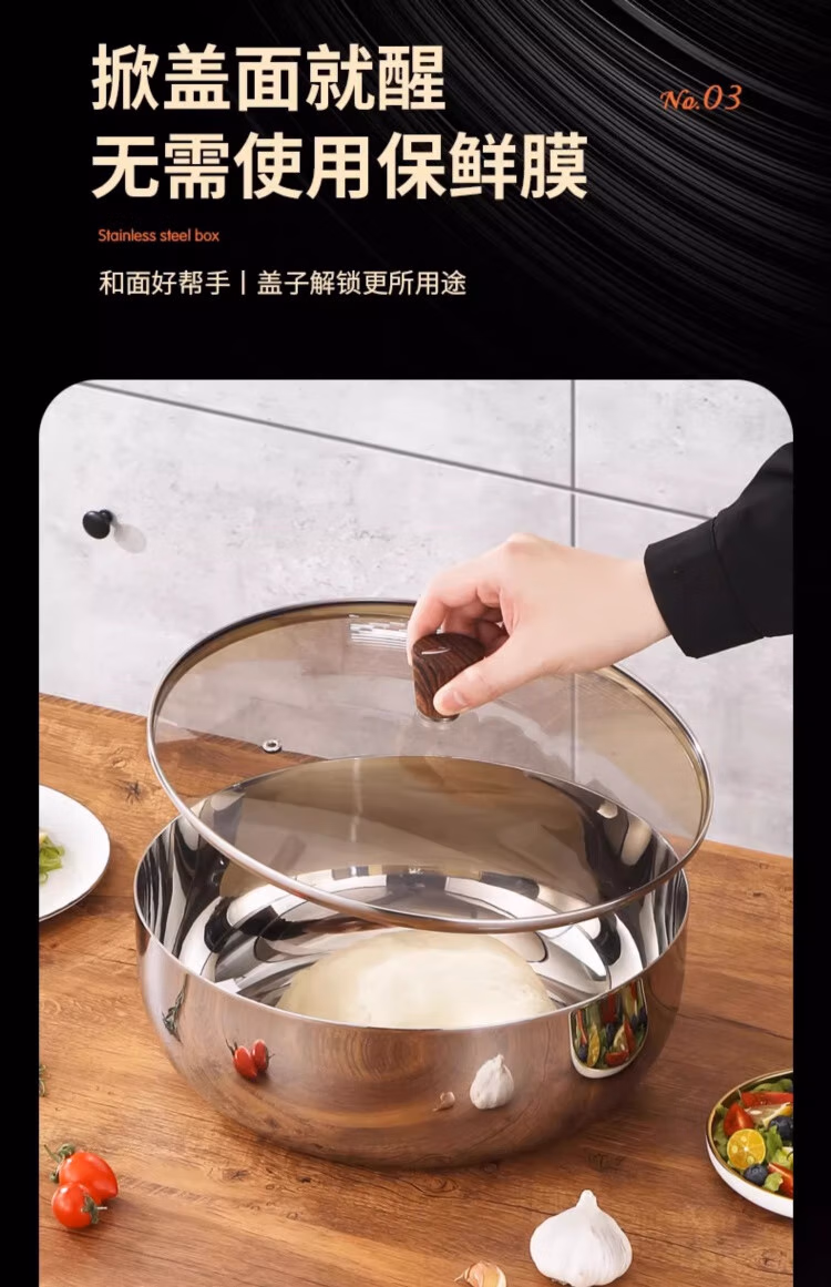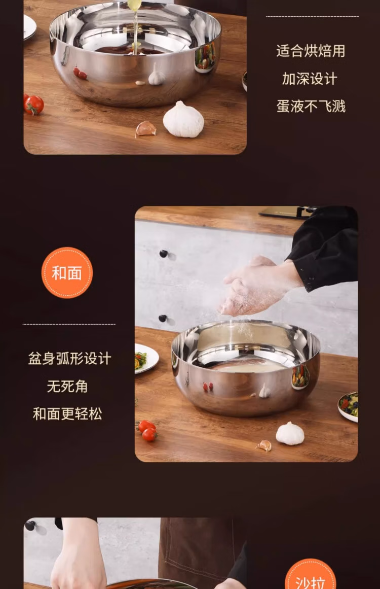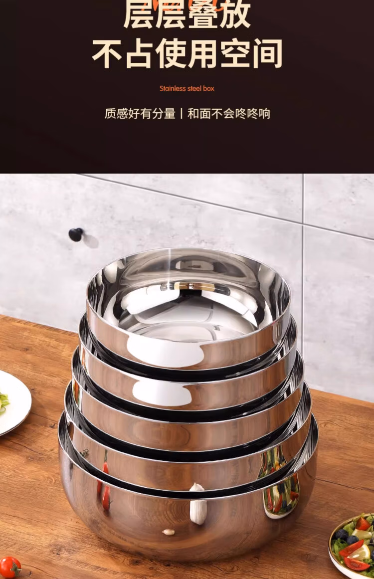 Hongzhijing selects German quality 316 stainless steel and deep kneading basin for home kitchen to beat eggs, wash vegetables and make noodles, 24cm deep and thickened medical grade 316 kneading basin