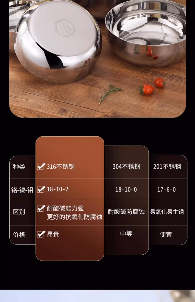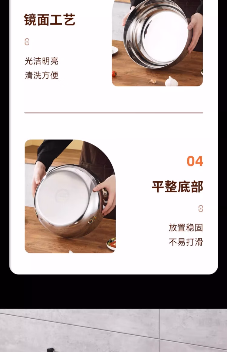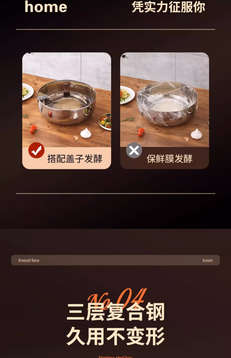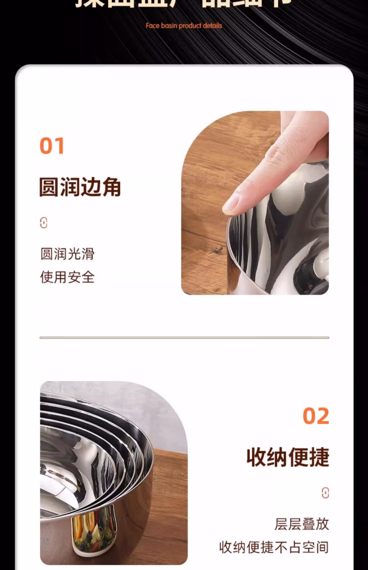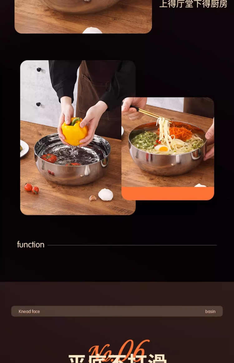 Hongzhijing selects German quality 316 stainless steel and deep kneading basin for home kitchen to beat eggs, wash vegetables and make noodles, 24cm deep and thickened medical grade 316 kneading basin