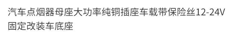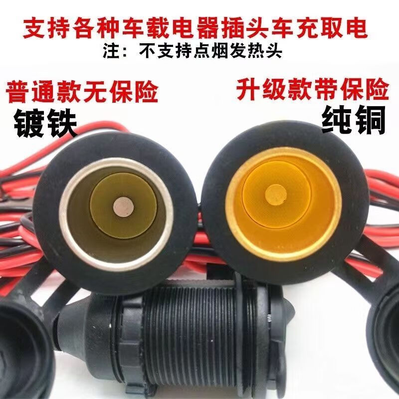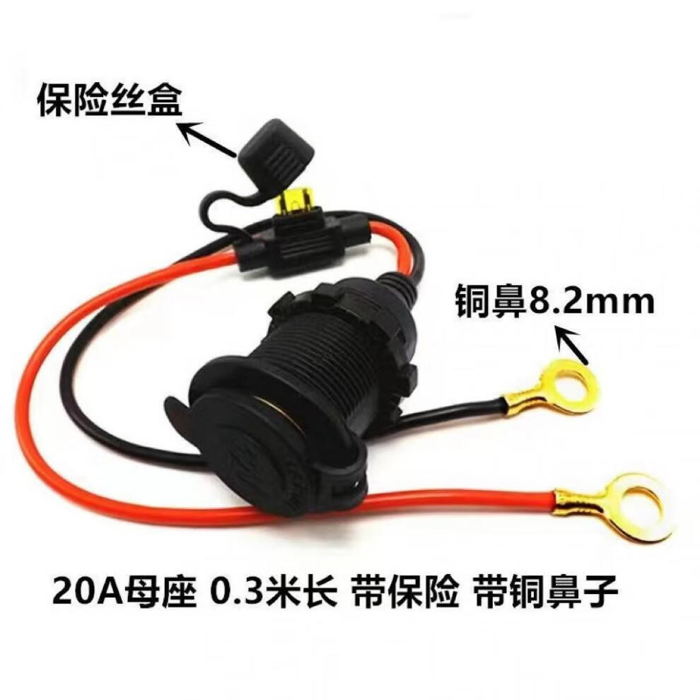 Car cigarette lighter female base high-power pure copper plug-in car with connector 12-24V fixed base car cigarette lighter threaded fixed female base (without insurance) wire length 35 cm