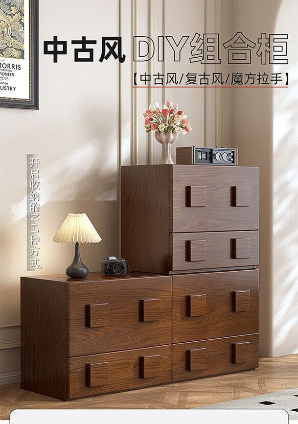 Jin Luyuan medieval style solid wood modular air pressure rod double-layer free combination luxury living room TV cabinet home collection wine cabinet 45*40*50 multi-function cabinet*1