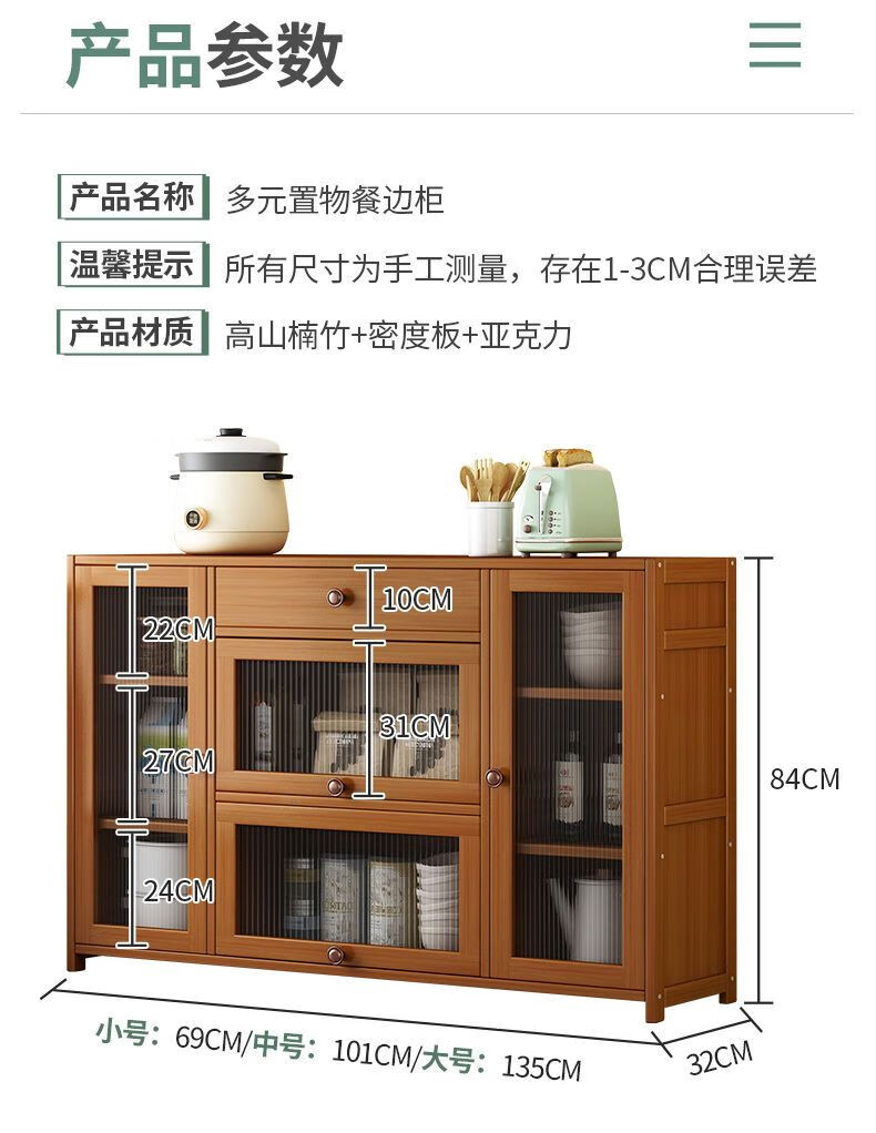 Xianqingyashe Nordic sideboard kitchen cupboard storage rack simple wine cabinet multi-functional home storage storage living room tea cabinet 70 double door sideboard with drawer