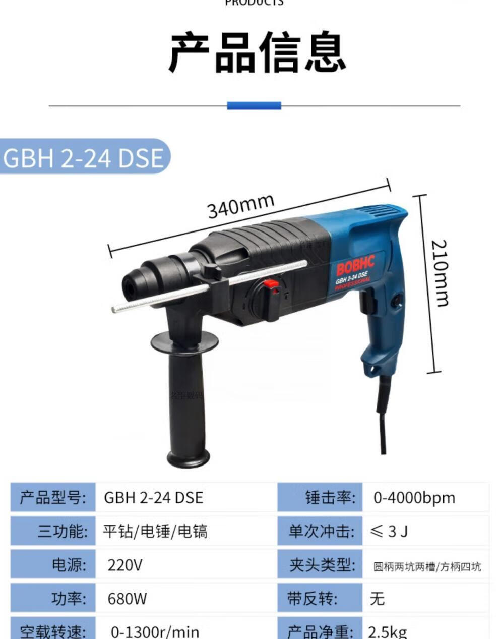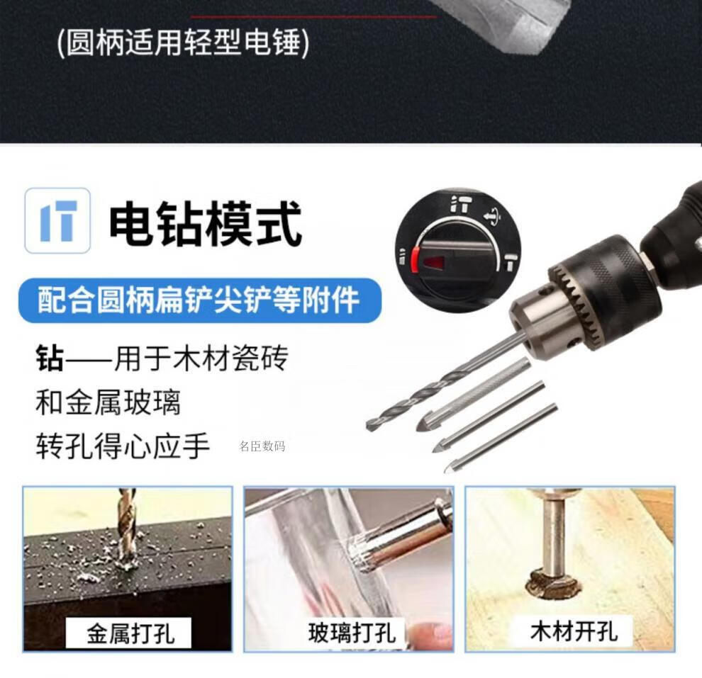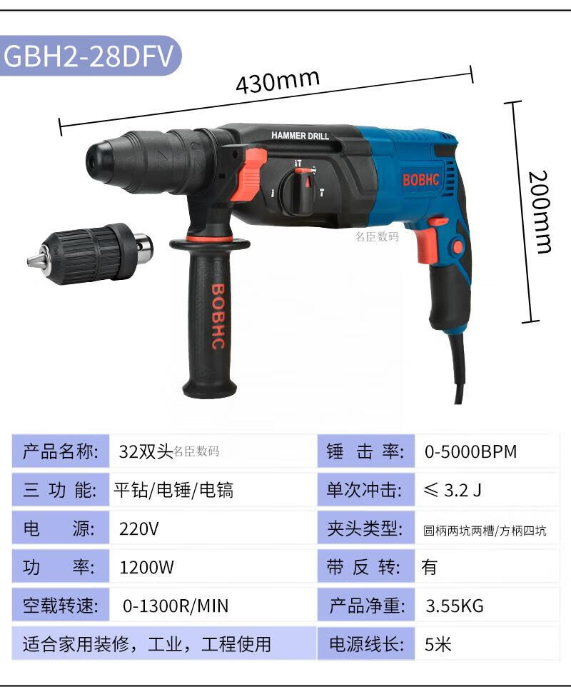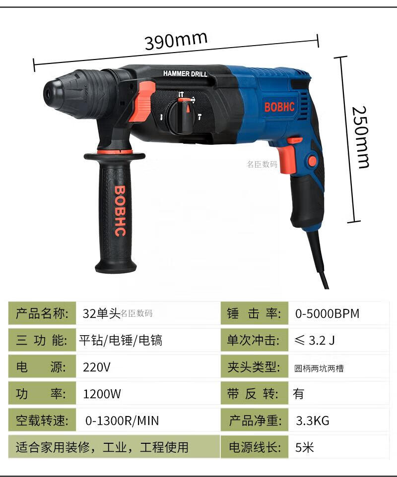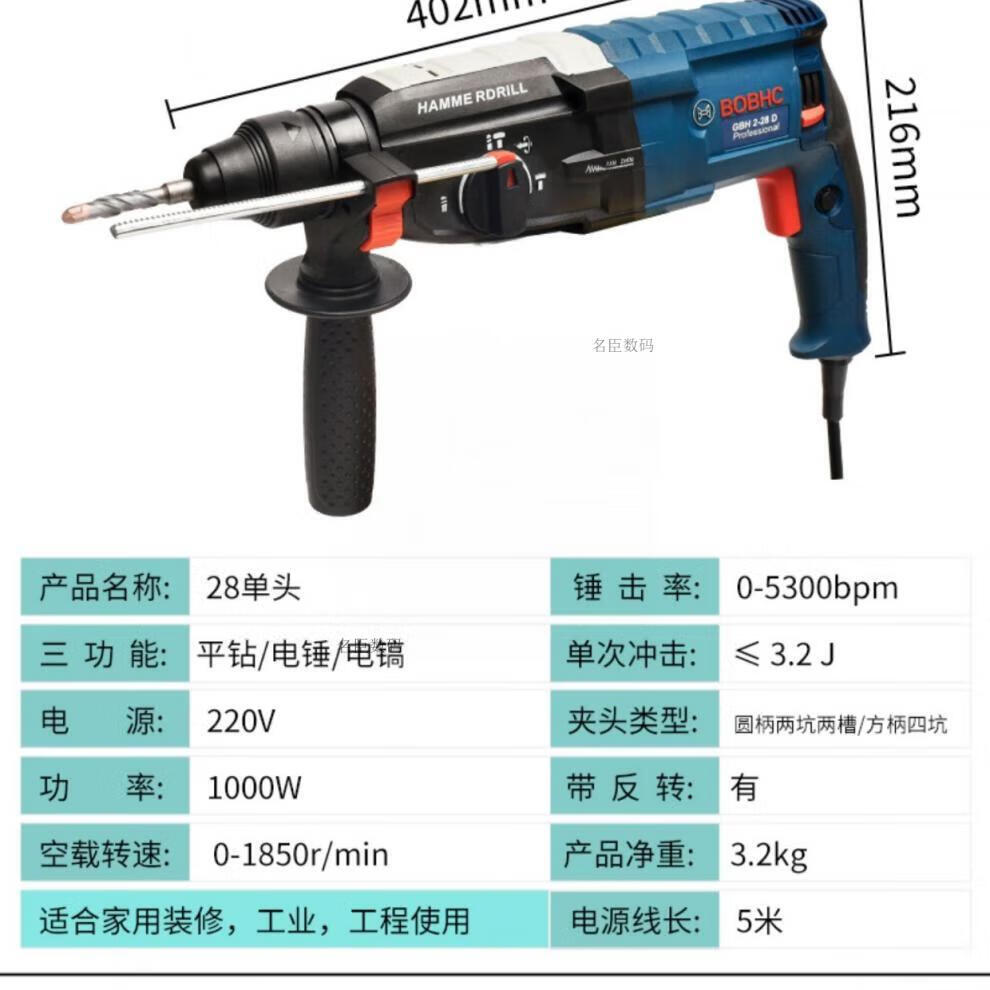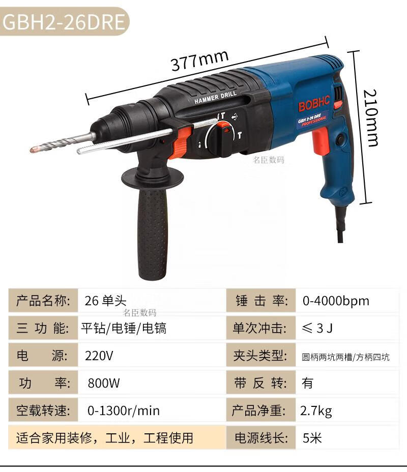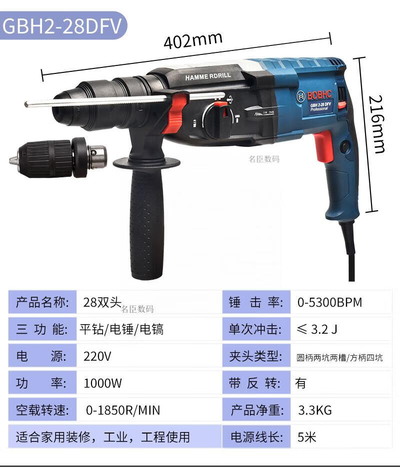 Bosch electric hammer impact drill electric drill household multi-functional concrete wall hole light high-power industrial electric pick white milky white 24 bare metal round handle