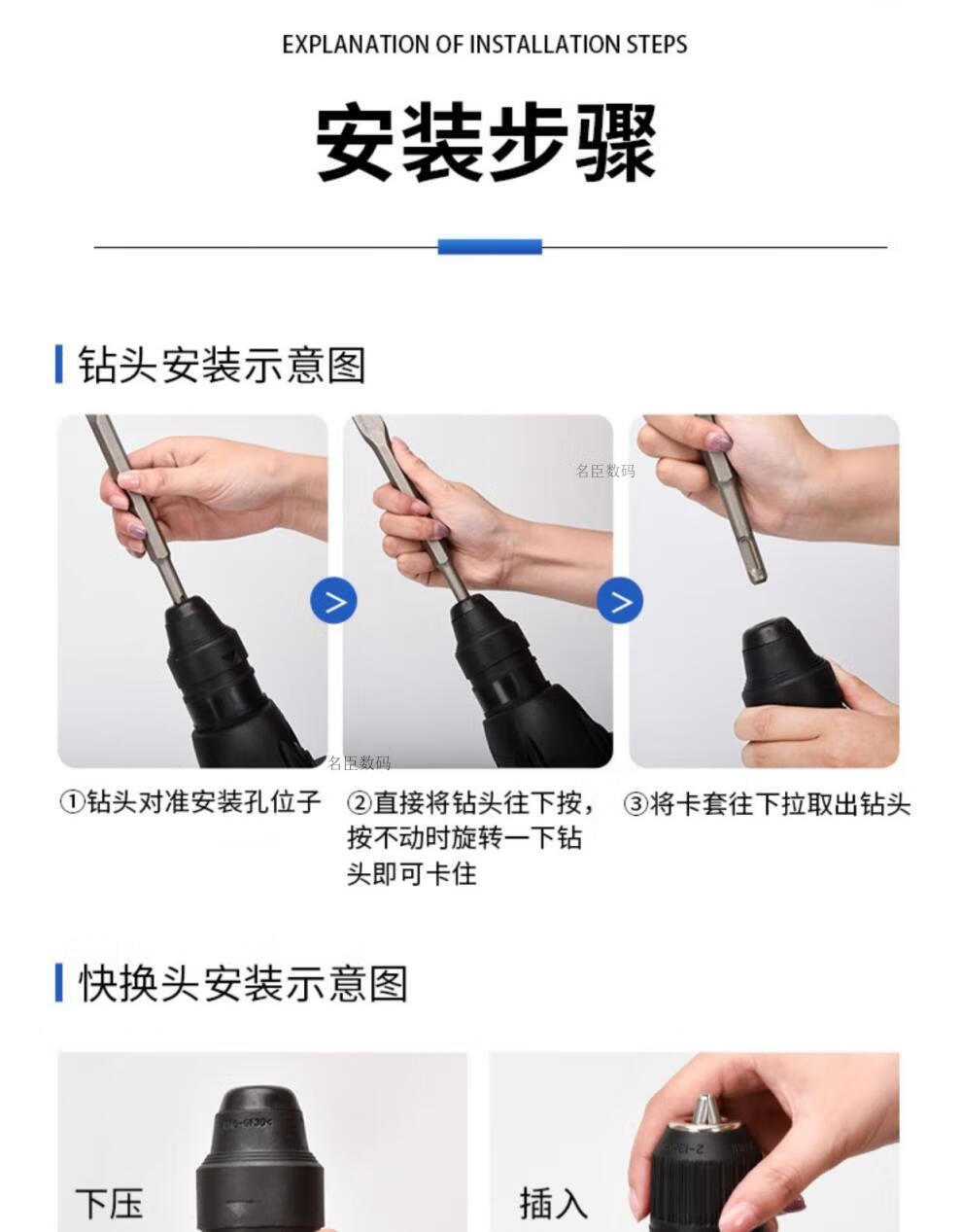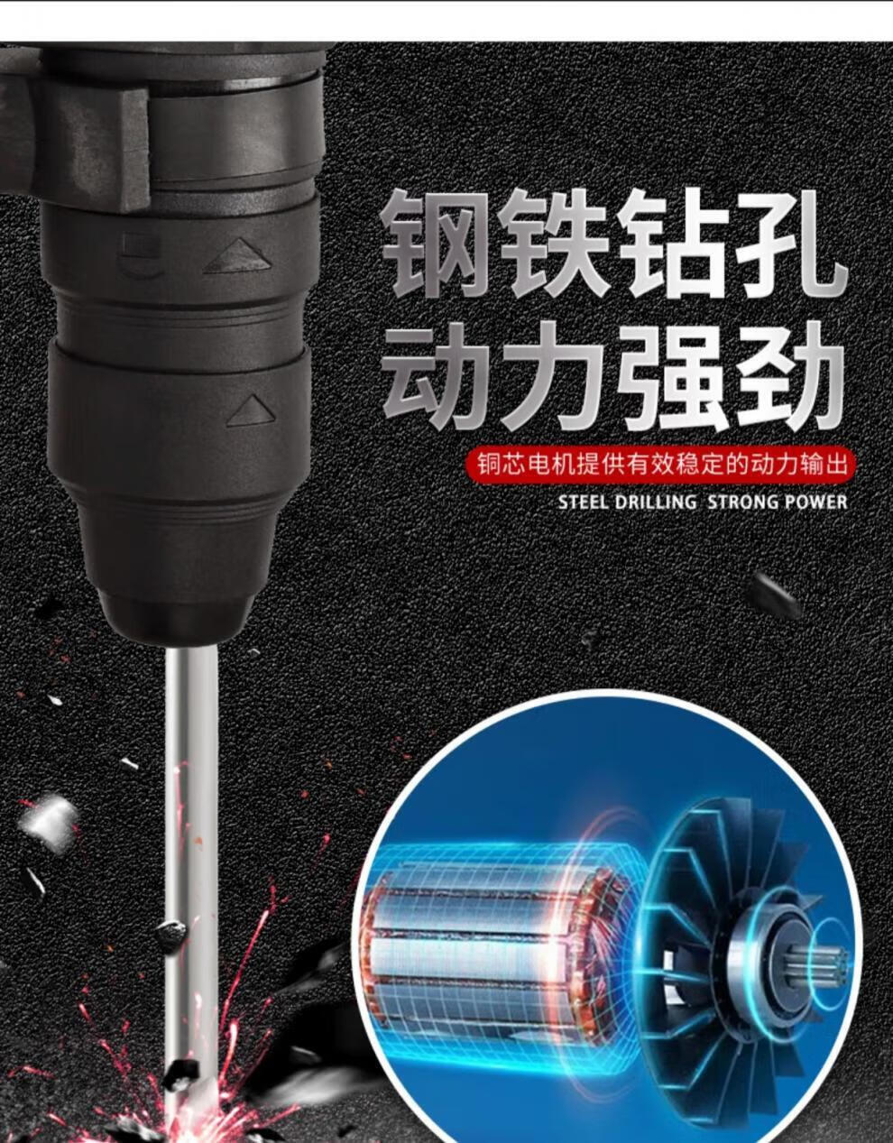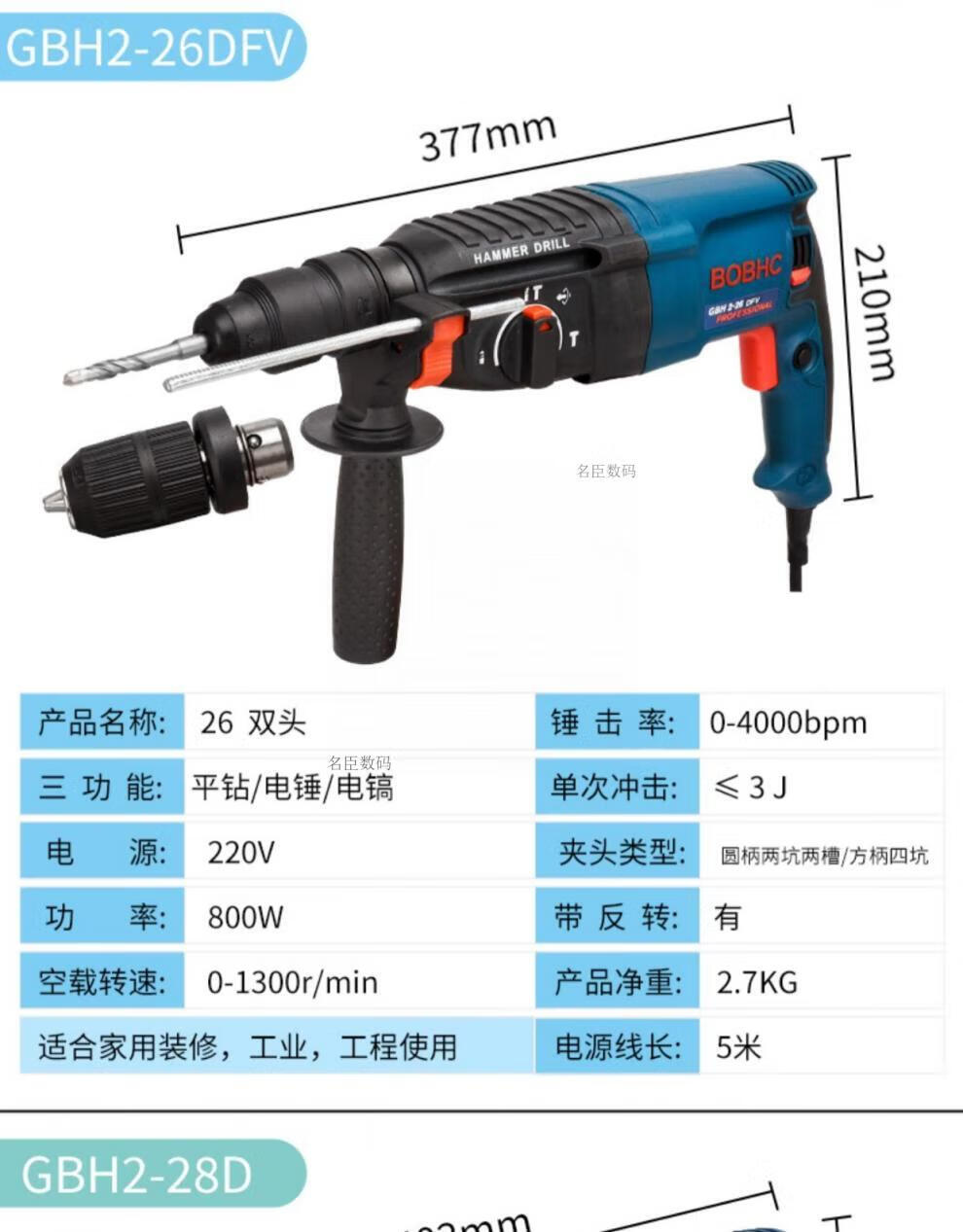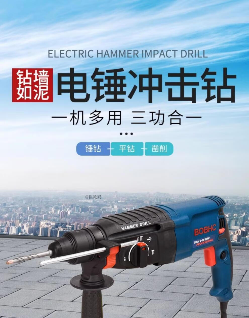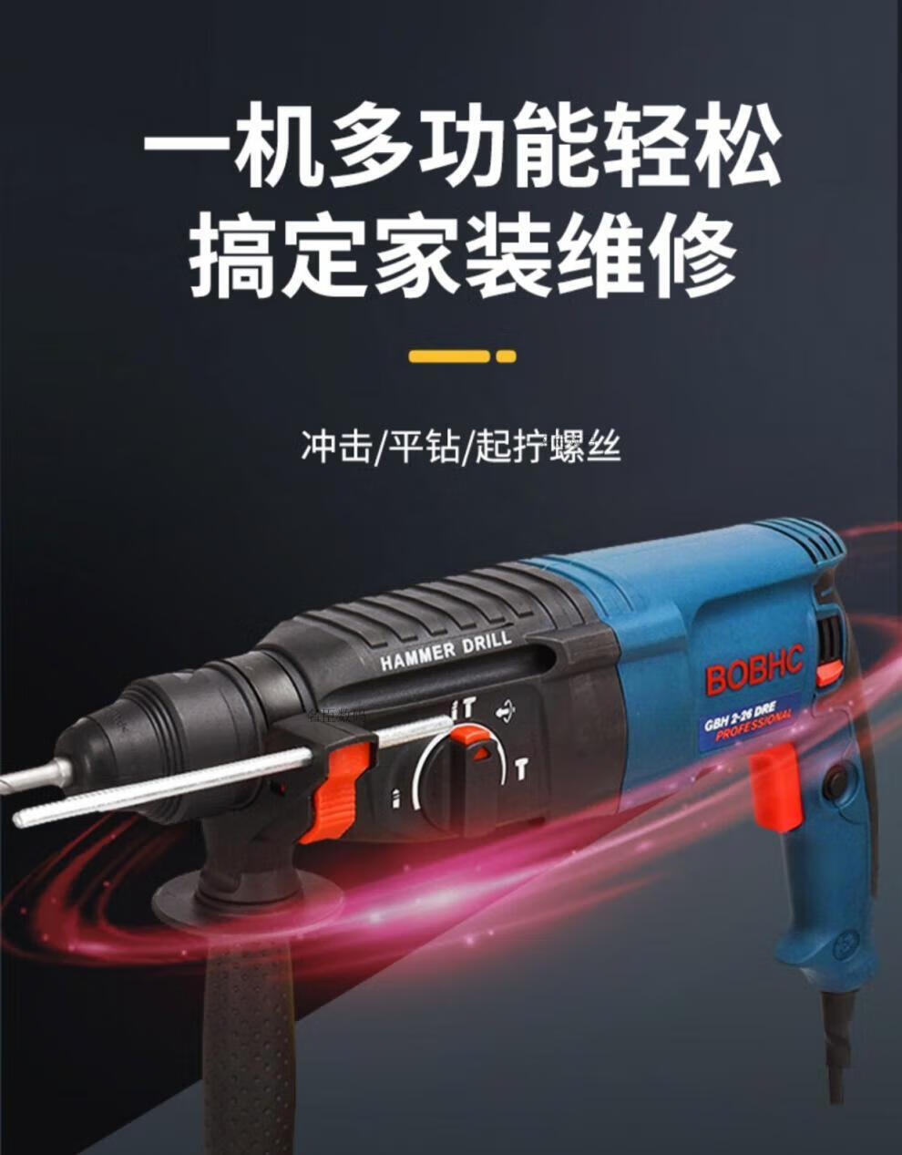Bosch electric hammer impact drill electric drill household multi-functional concrete wall hole light high-power industrial electric pick white milky white 24 bare metal round handle