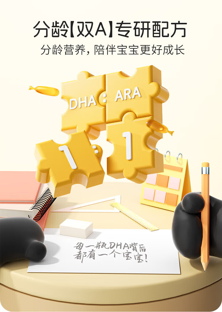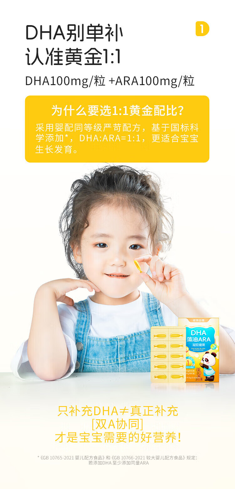Notland DHA algae oil ARA children 1-3 years old supplement for teenagers and students seaweed oil eye and brain nutrition can be used with infants and young children dha trial pack 10 capsules * 1 box