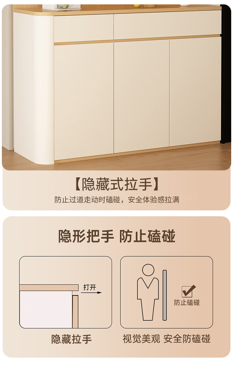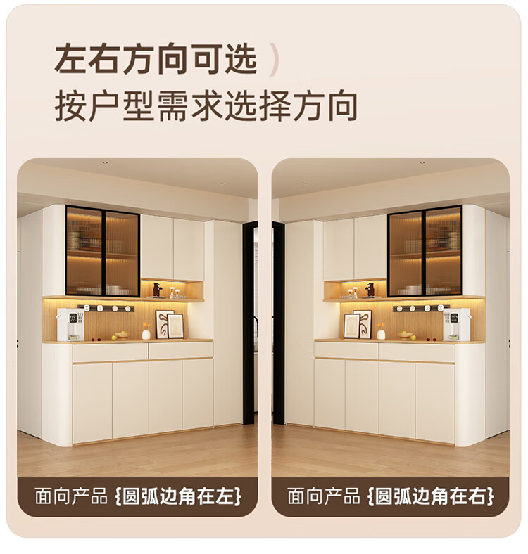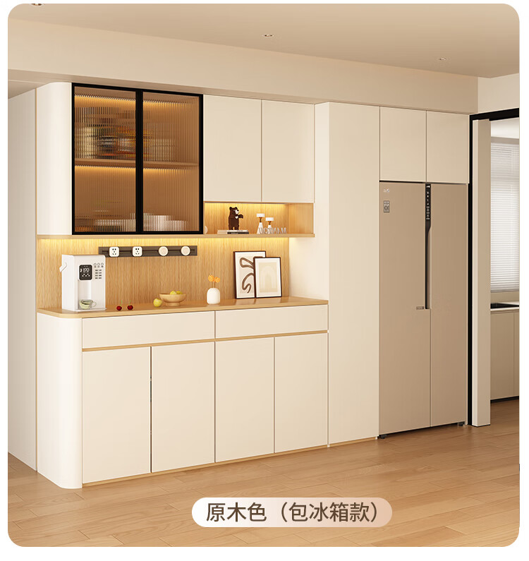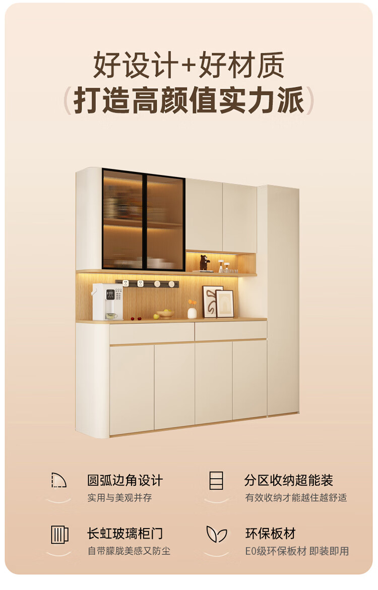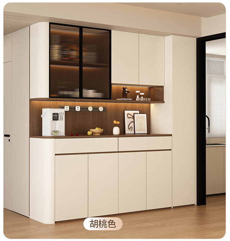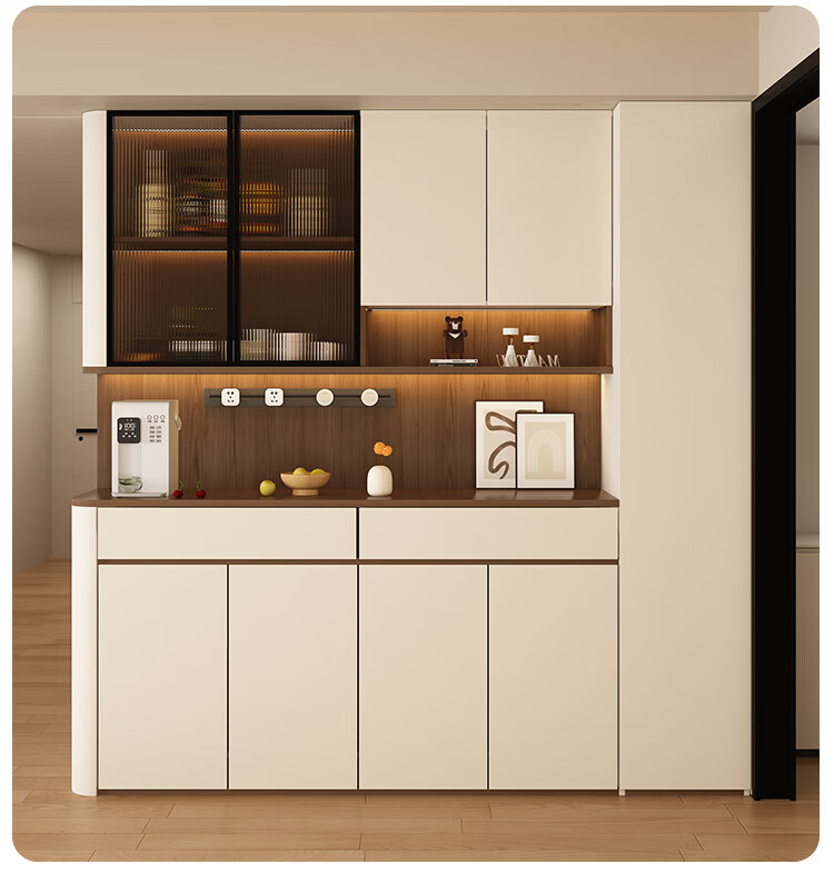Jin Guilai solid wood sideboard against the wall integrated storage cabinet multi-functional living room home cream style arc wine cabinet cabinet customization A type 80*42*200 milk white + wood color