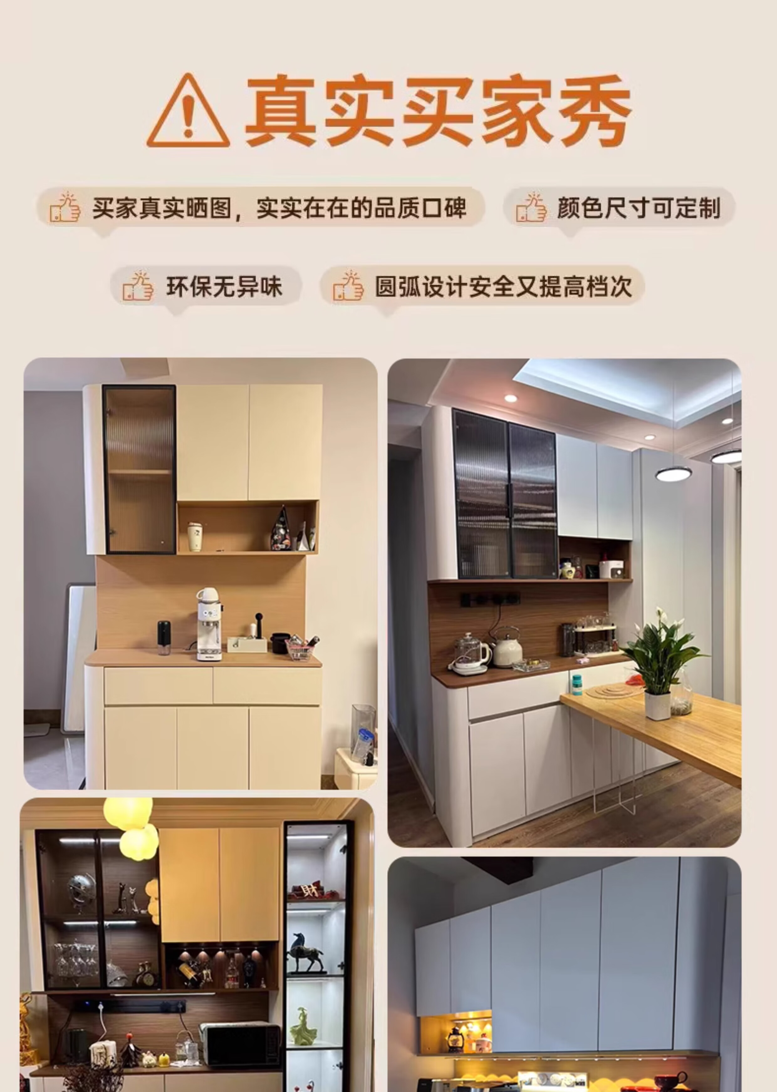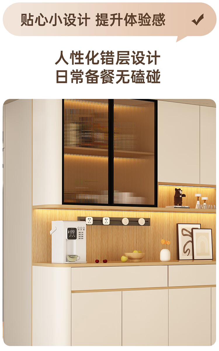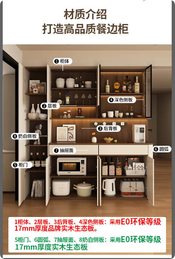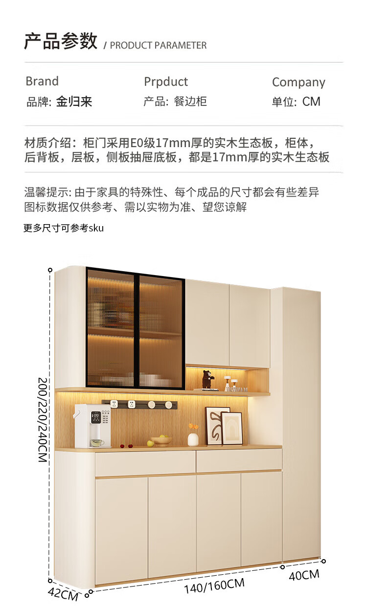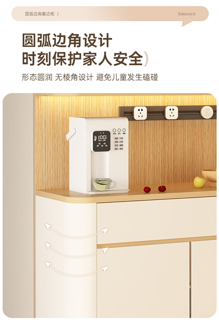 Jin Guilai solid wood sideboard against the wall integrated storage cabinet multi-functional living room home cream style arc wine cabinet cabinet customization A type 80*42*200 milk white + wood color